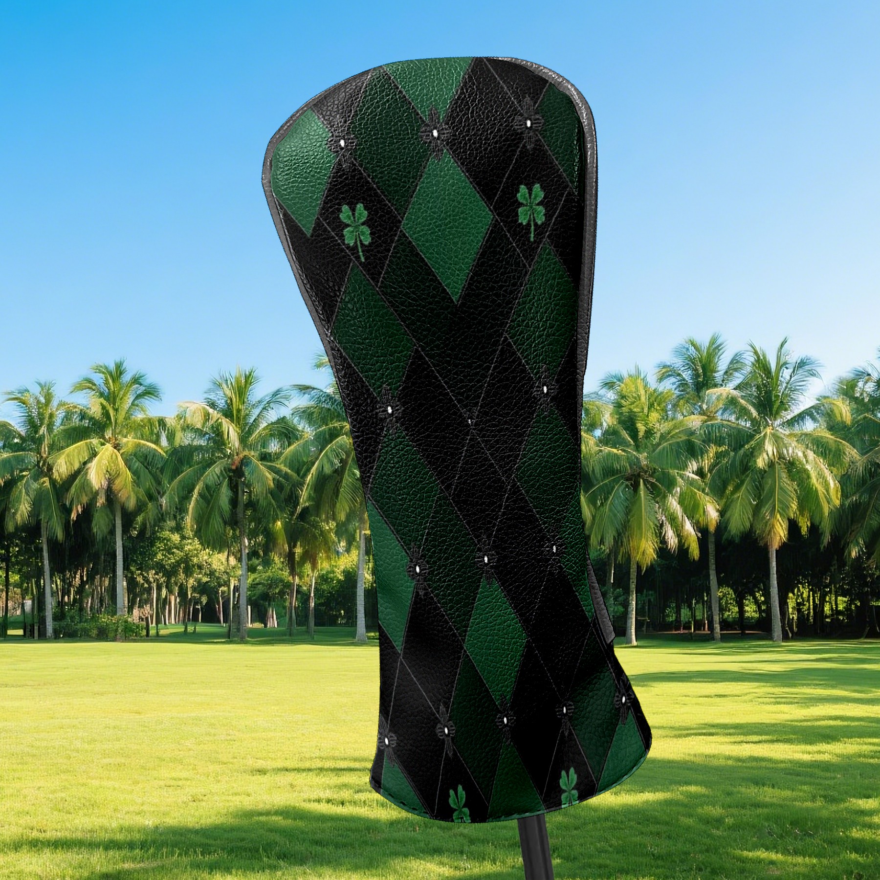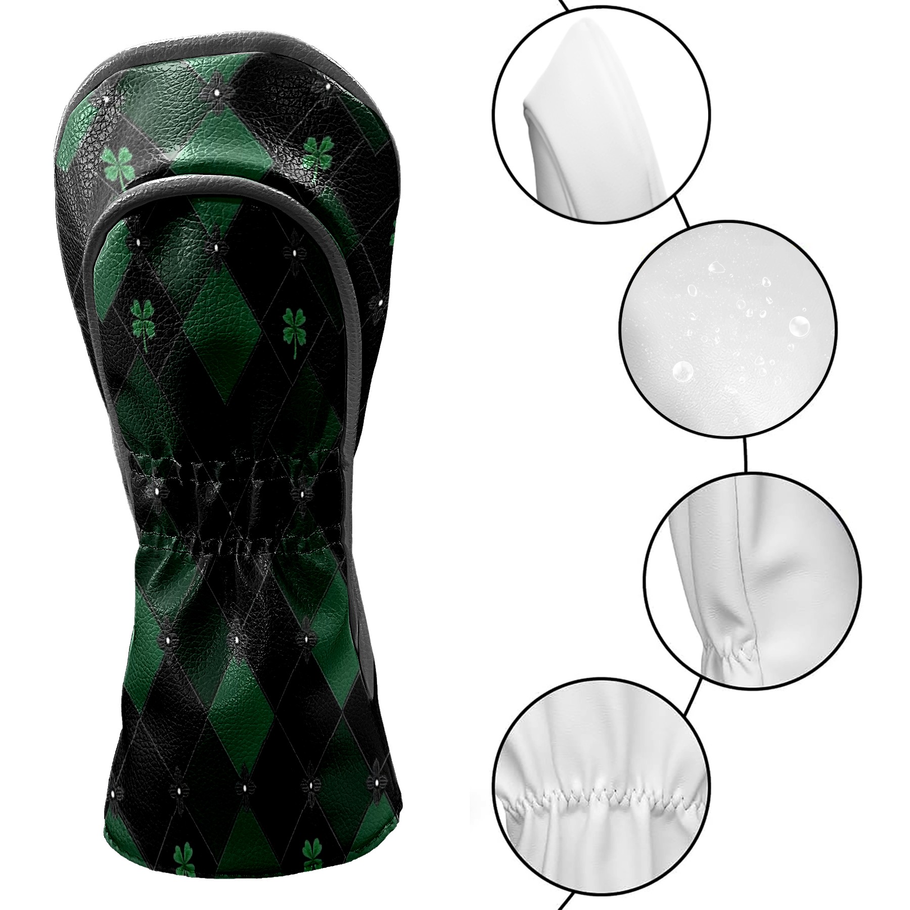Golf Headcovers Fits Driver Hybrid Fairway 3/5 Wood, Waterproof PU Leather Golf Club Protector, Ideal Sports Accessories & Golfer Gift Green Clover Pattern5