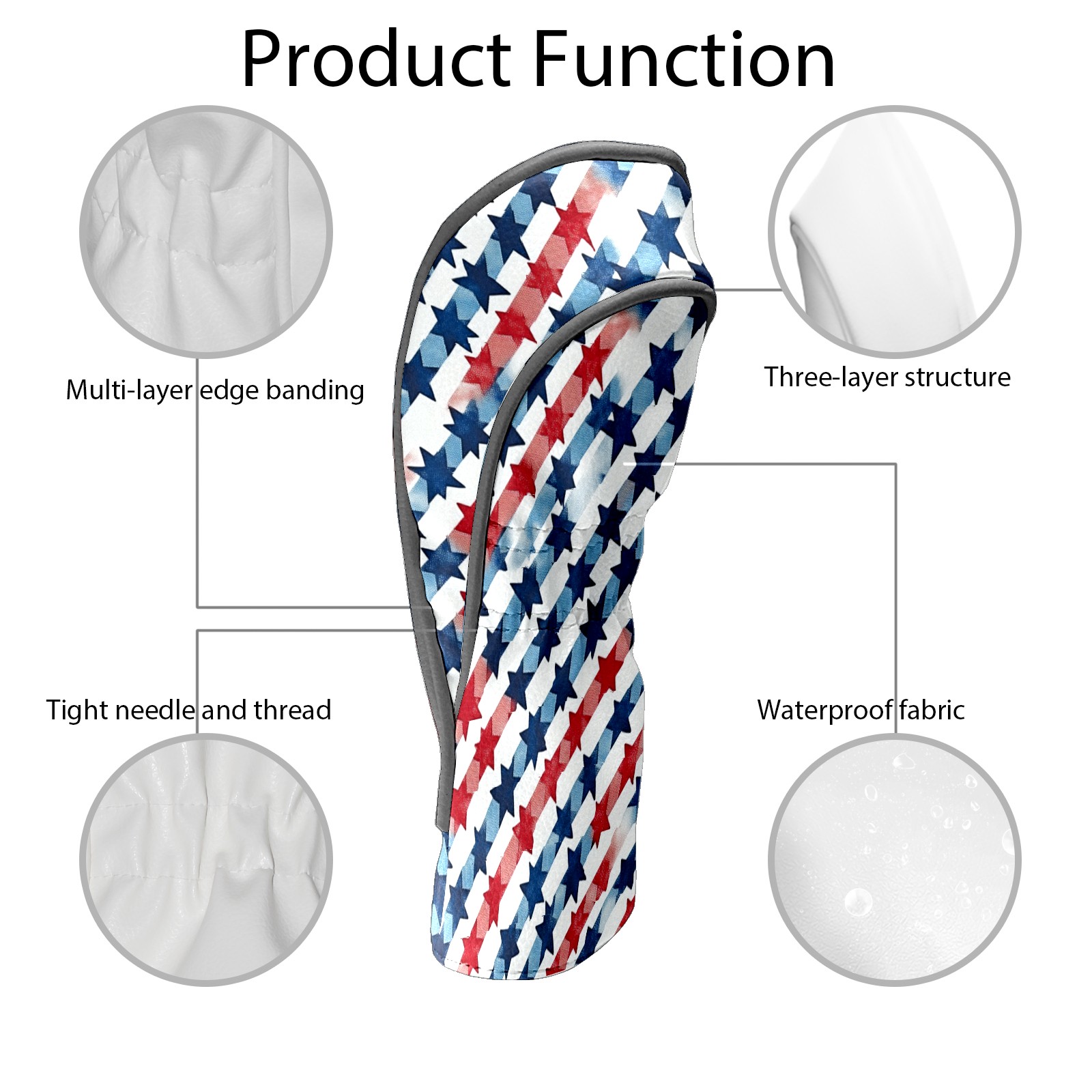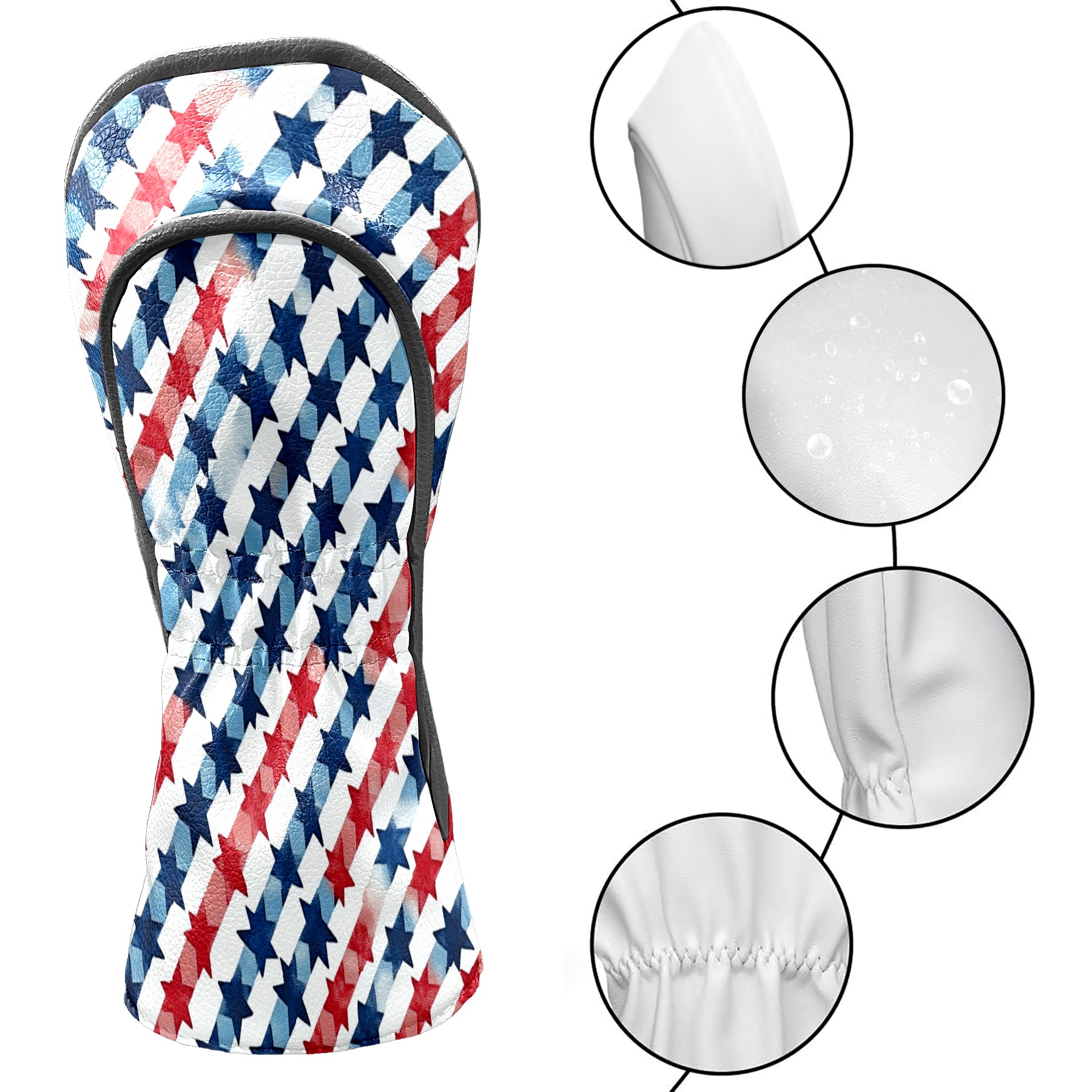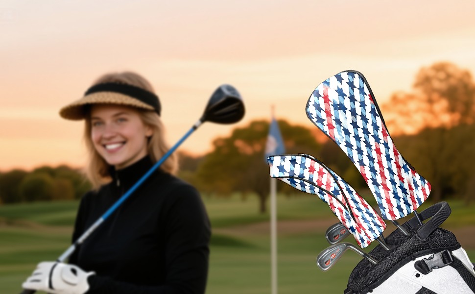 Golf Headcovers Fits Driver Hybrid Fairway 3/5 Wood, Waterproof PU Leather Golf Club Protector, Ideal Sports Accessories & Golfer Gift Red Blue Star Pattern