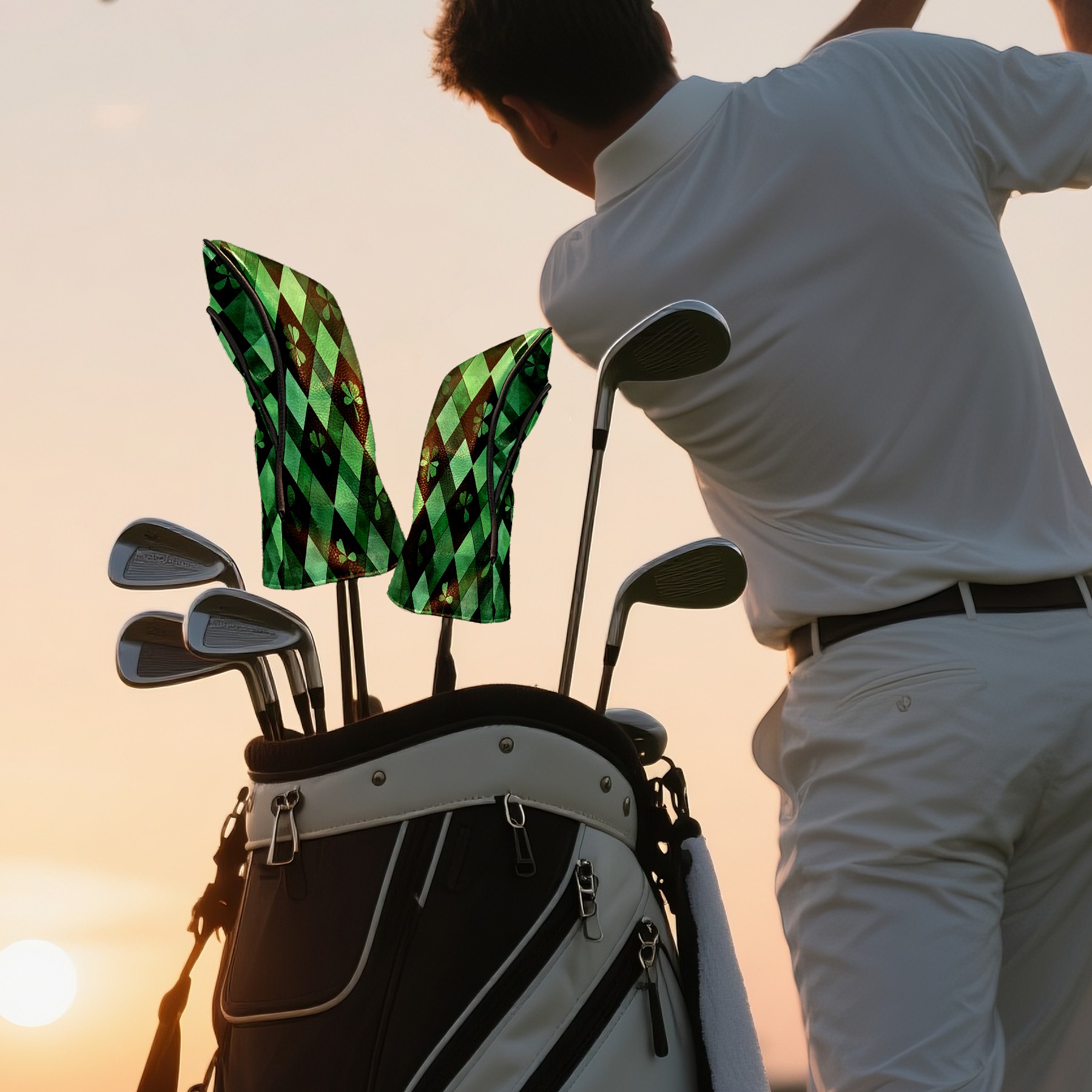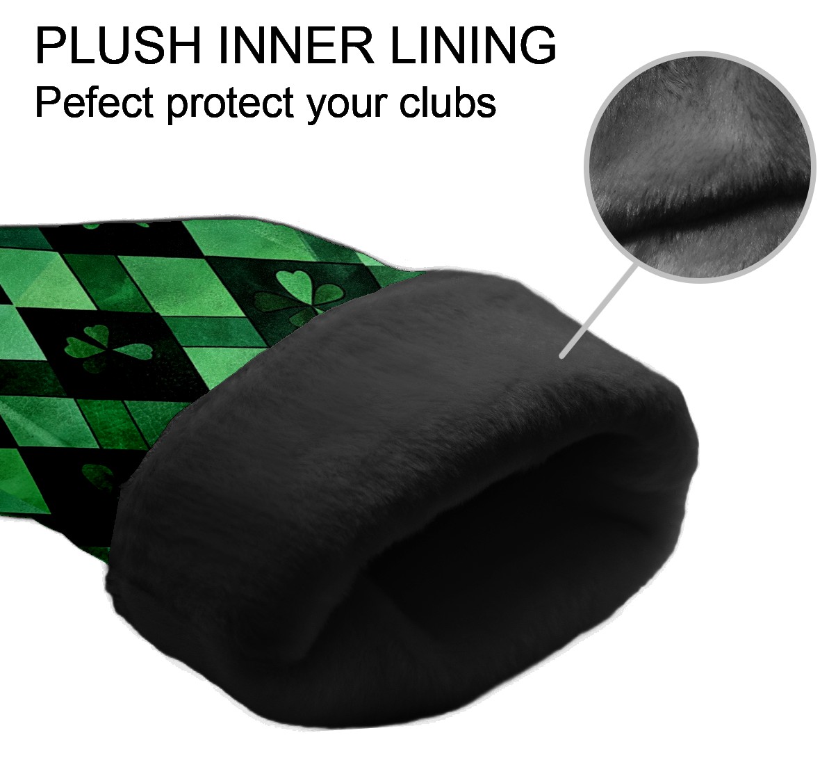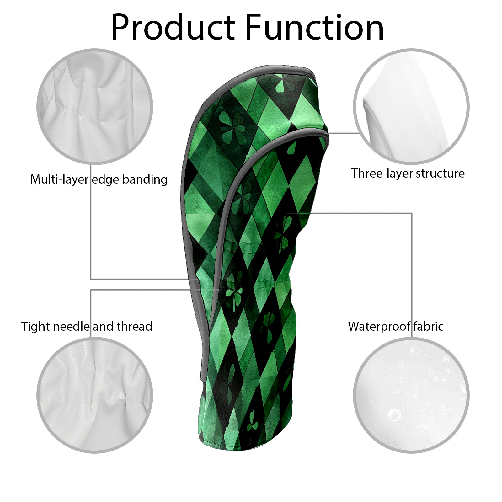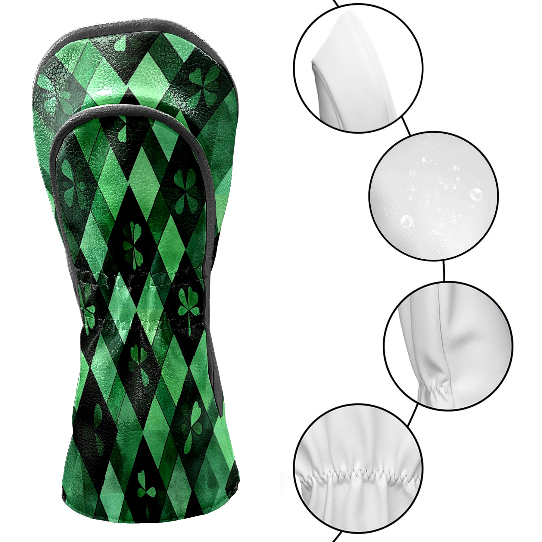 Golf Headcovers Fits Driver Hybrid Fairway 3/5 Wood, Waterproof PU Leather Golf Club Protector, Ideal Sports Accessories & Golfer Gift Green Clover Pattern4