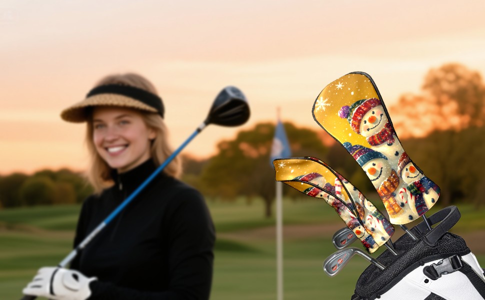 Golf Headcovers Fits Driver Hybrid Fairway 3/5 Wood, Waterproof PU Leather Golf Club Protector, Ideal Sports Accessories & Golfer Gift Cute Snowman Pattern2