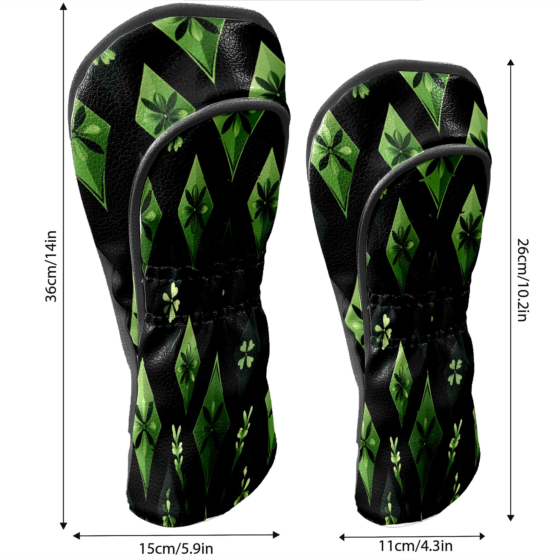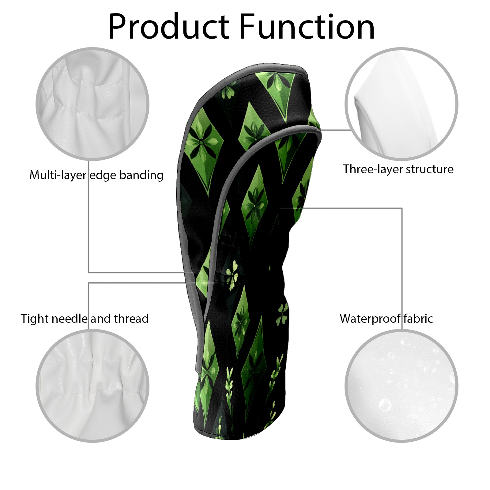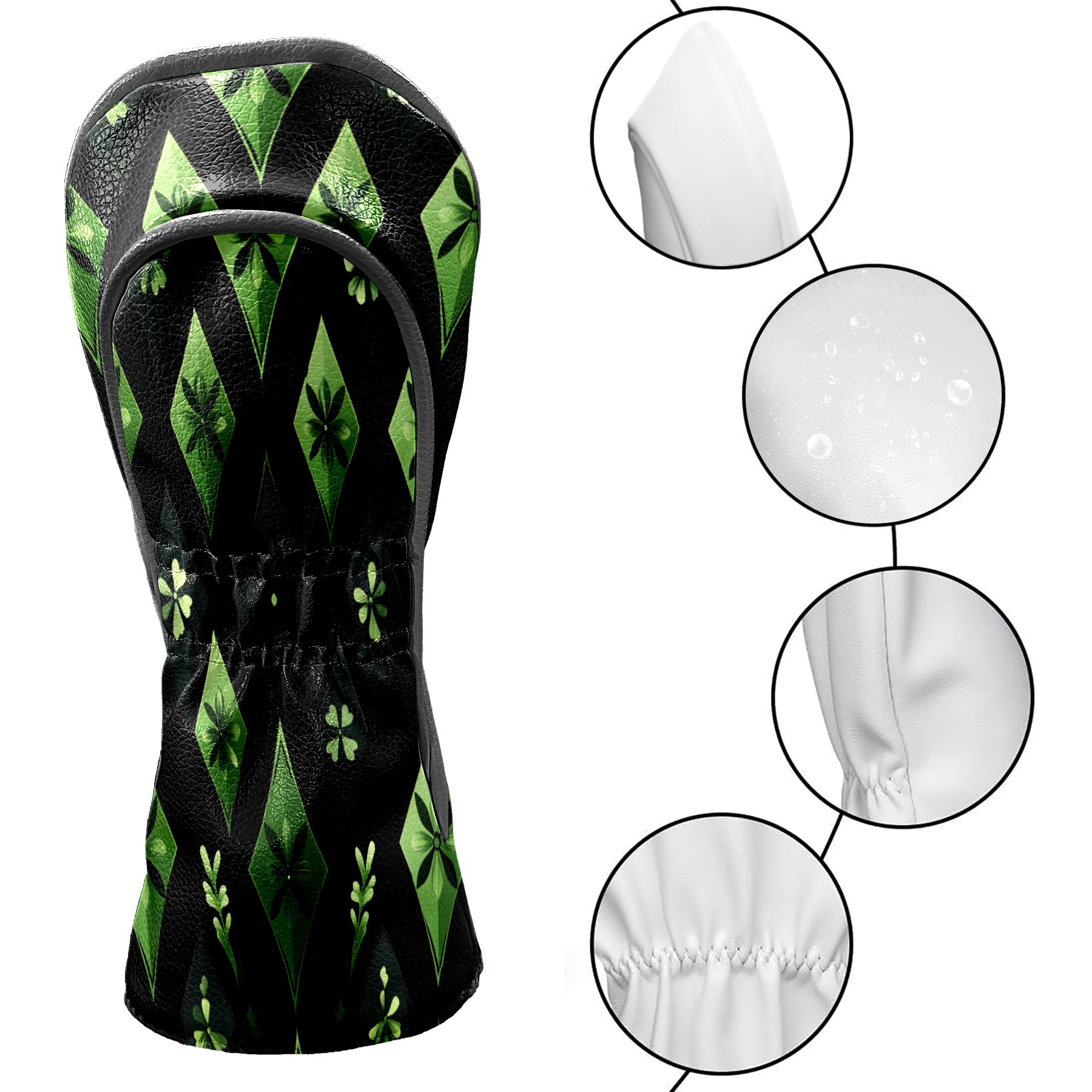 Golf Headcovers Fits Driver Hybrid Fairway 3/5 Wood, Waterproof PU Leather Golf Club Protector, Ideal Sports Accessories & Golfer Gift Green Clover Pattern3