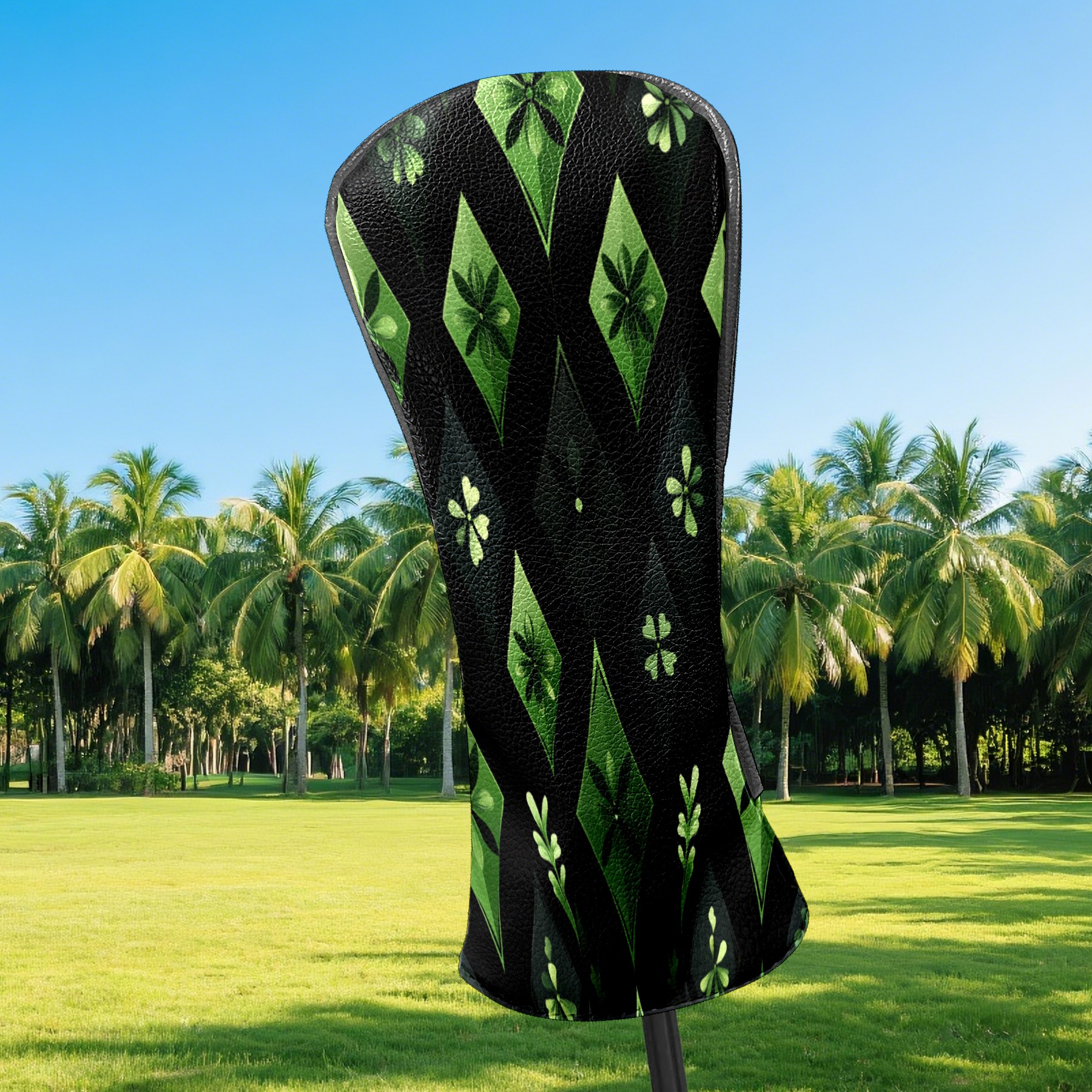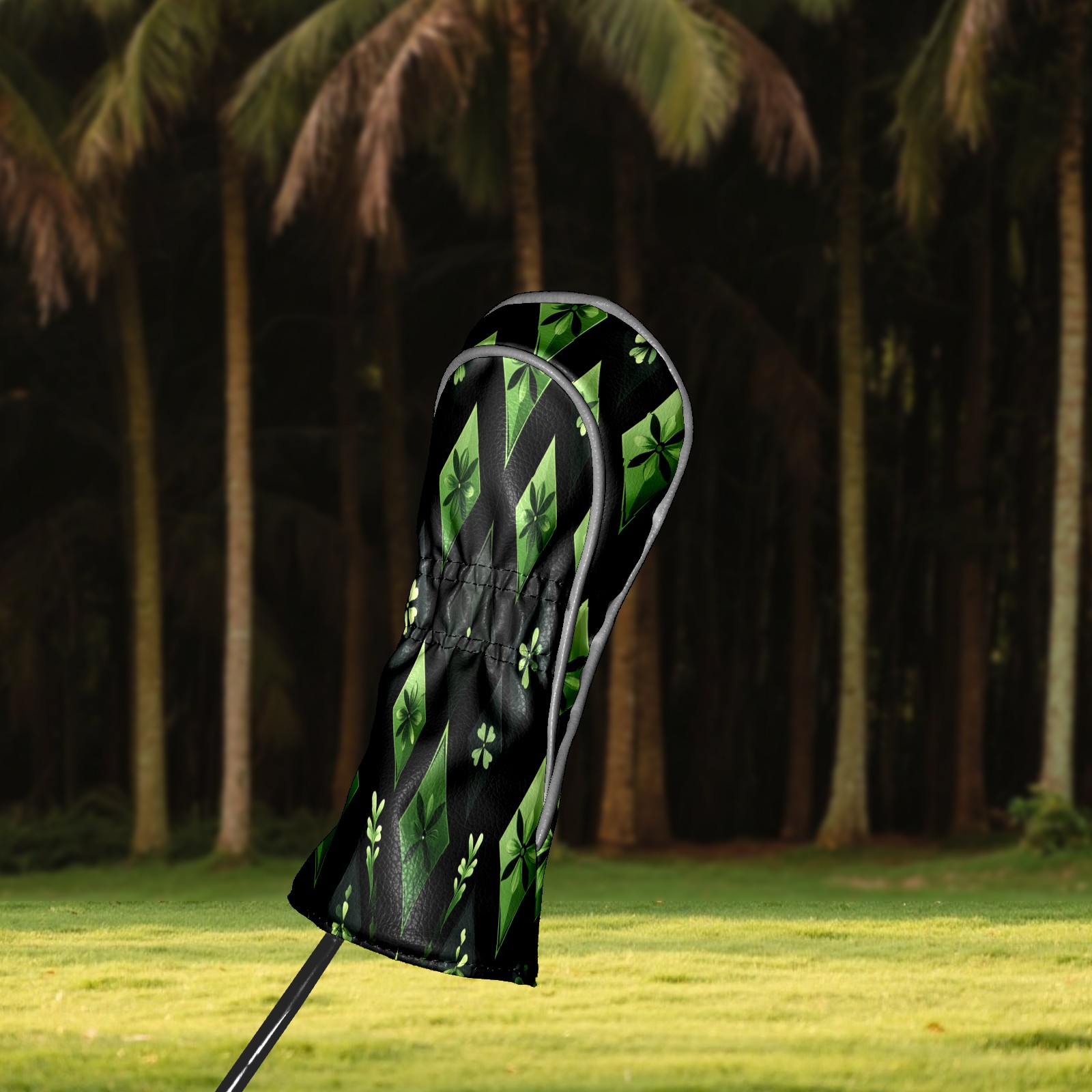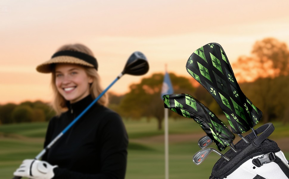 Golf Headcovers Fits Driver Hybrid Fairway 3/5 Wood, Waterproof PU Leather Golf Club Protector, Ideal Sports Accessories & Golfer Gift Green Clover Pattern3