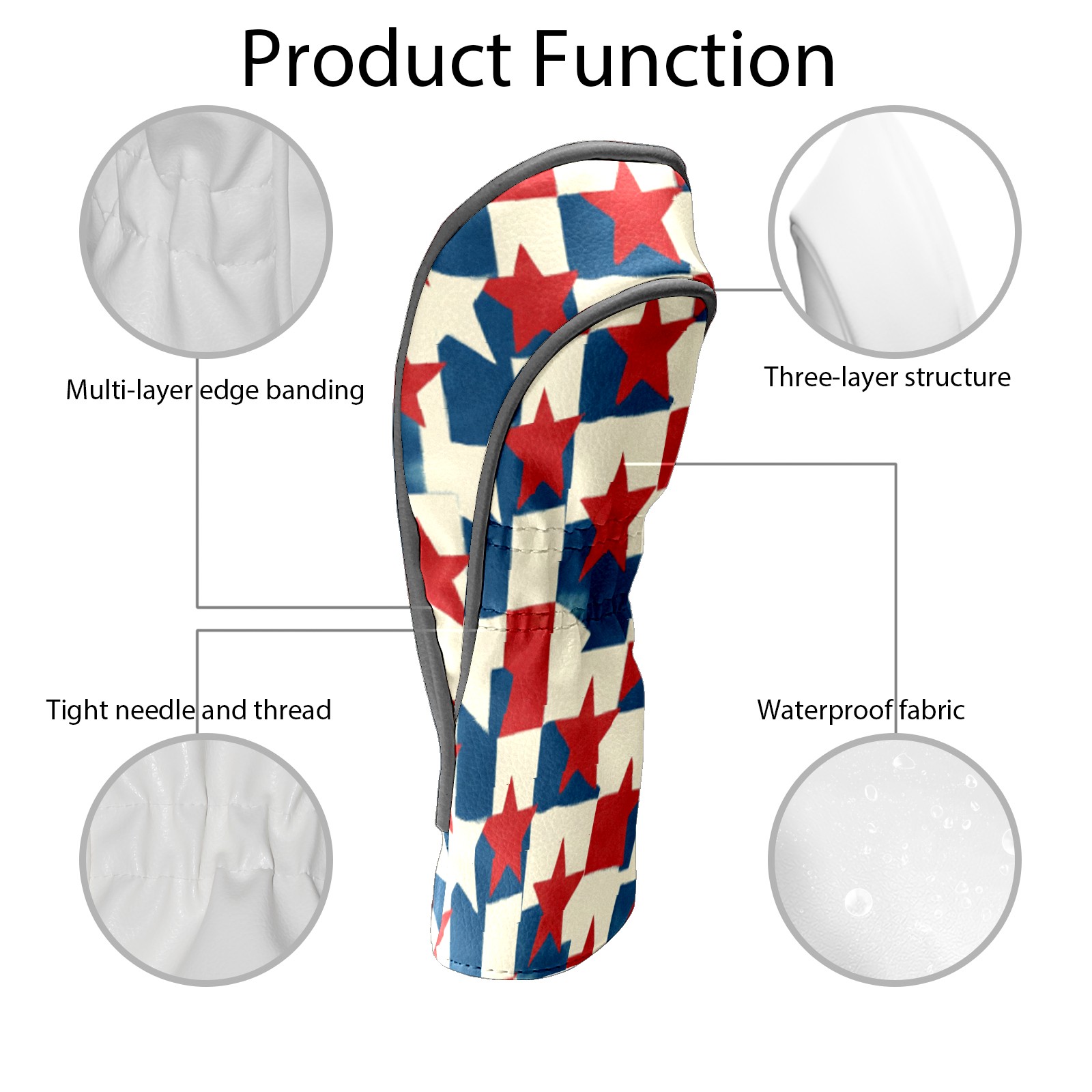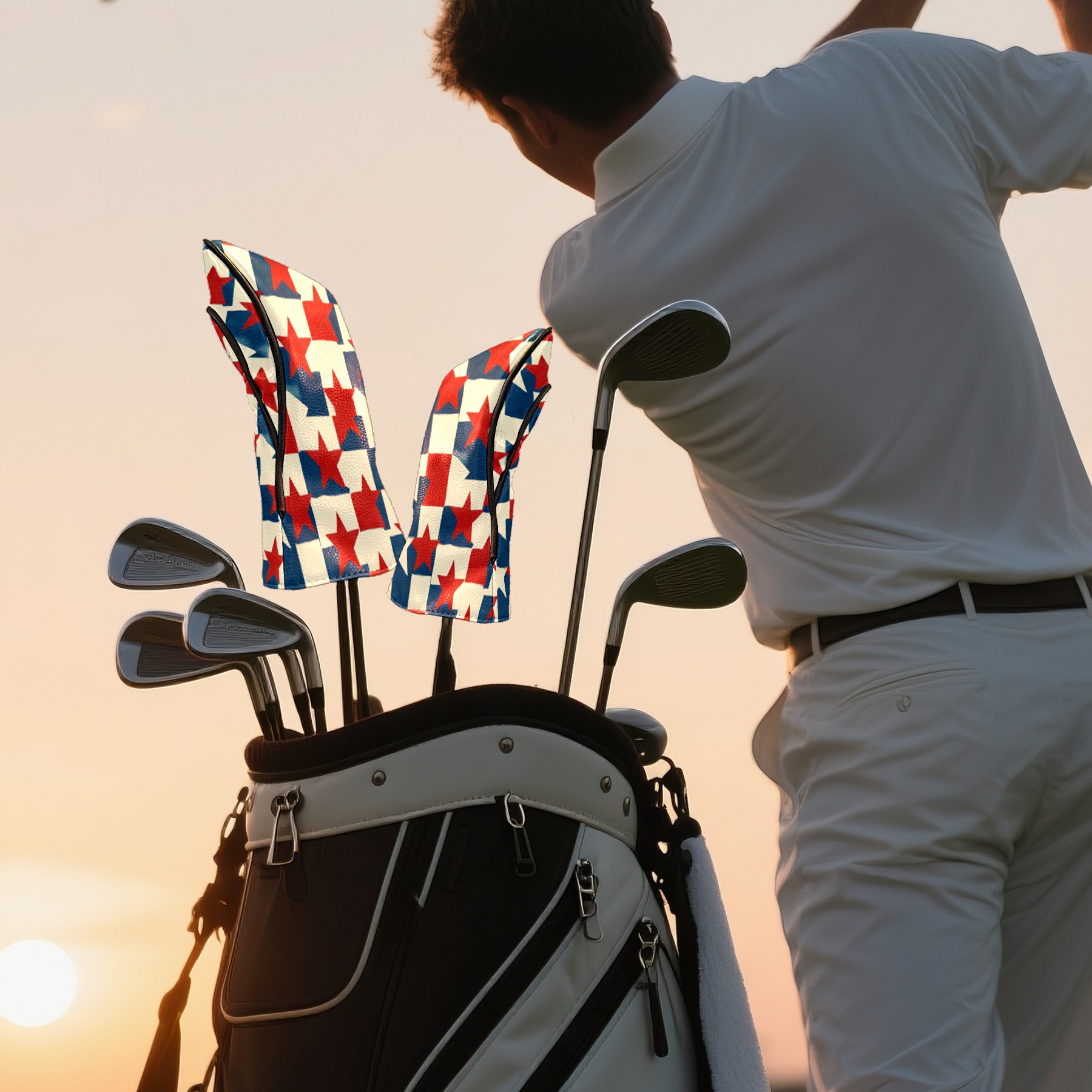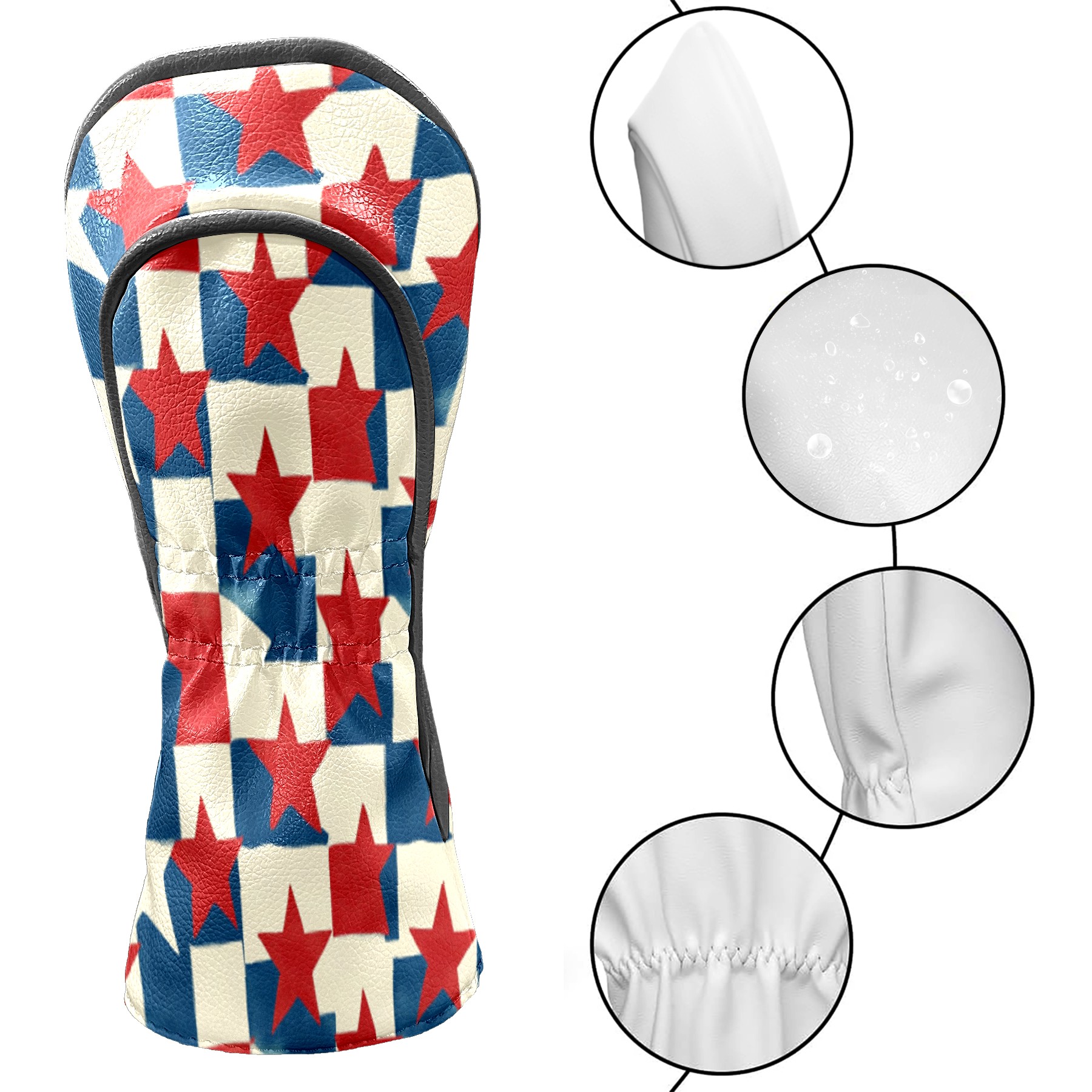 Golf Headcovers Fits Driver Hybrid Fairway 3/5 Wood, Waterproof PU Leather Golf Club Protector, Ideal Sports Accessories & Golfer Gift Red Blue Star Pattern4