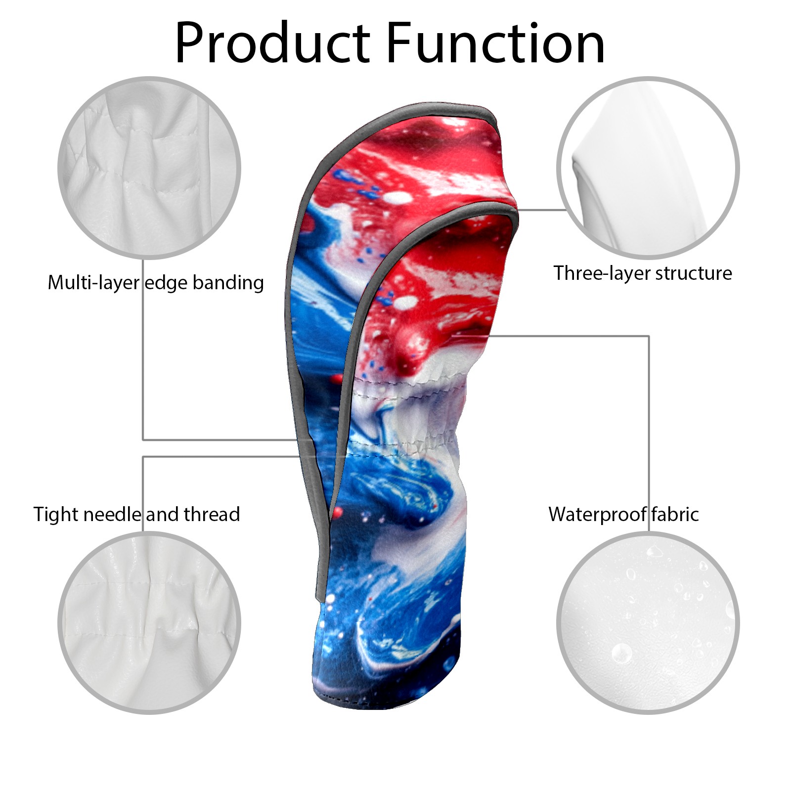 Golf Headcovers Fits Driver Hybrid Fairway 3/5 Wood, Waterproof PU Leather Golf Club Protector, Ideal Sports Accessories & Golfer Gift Ink Splash Pattern