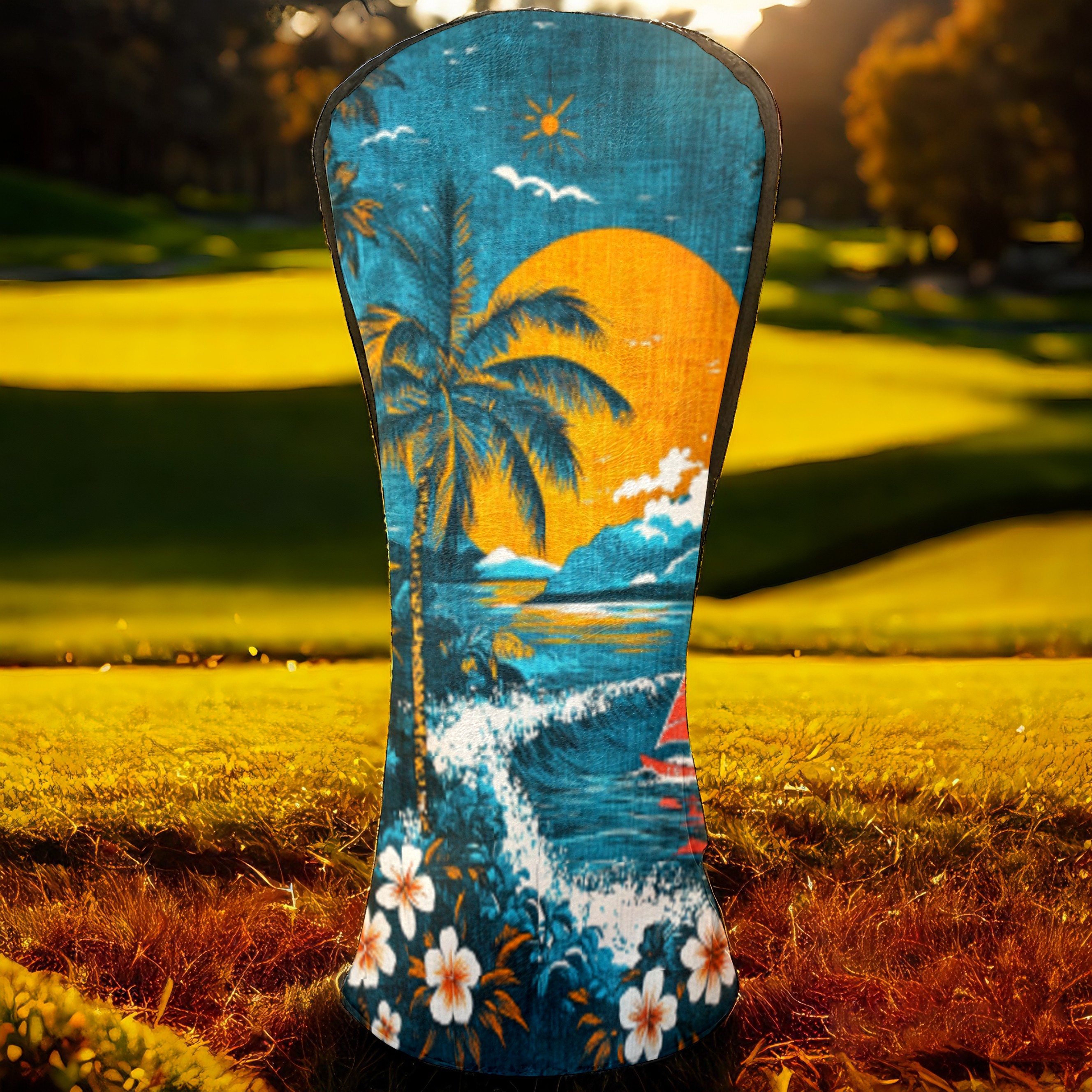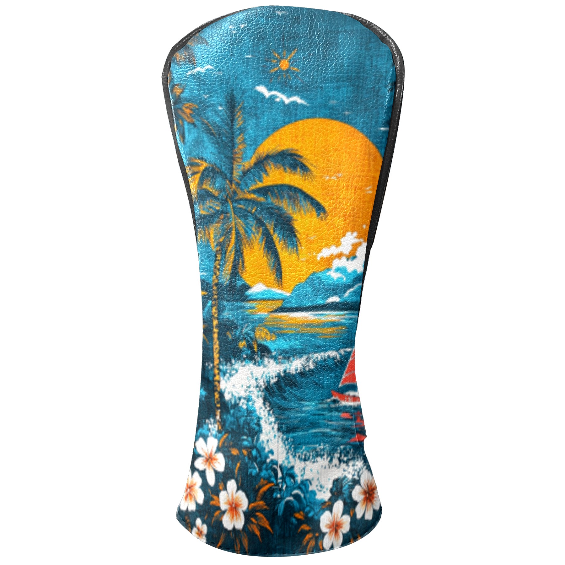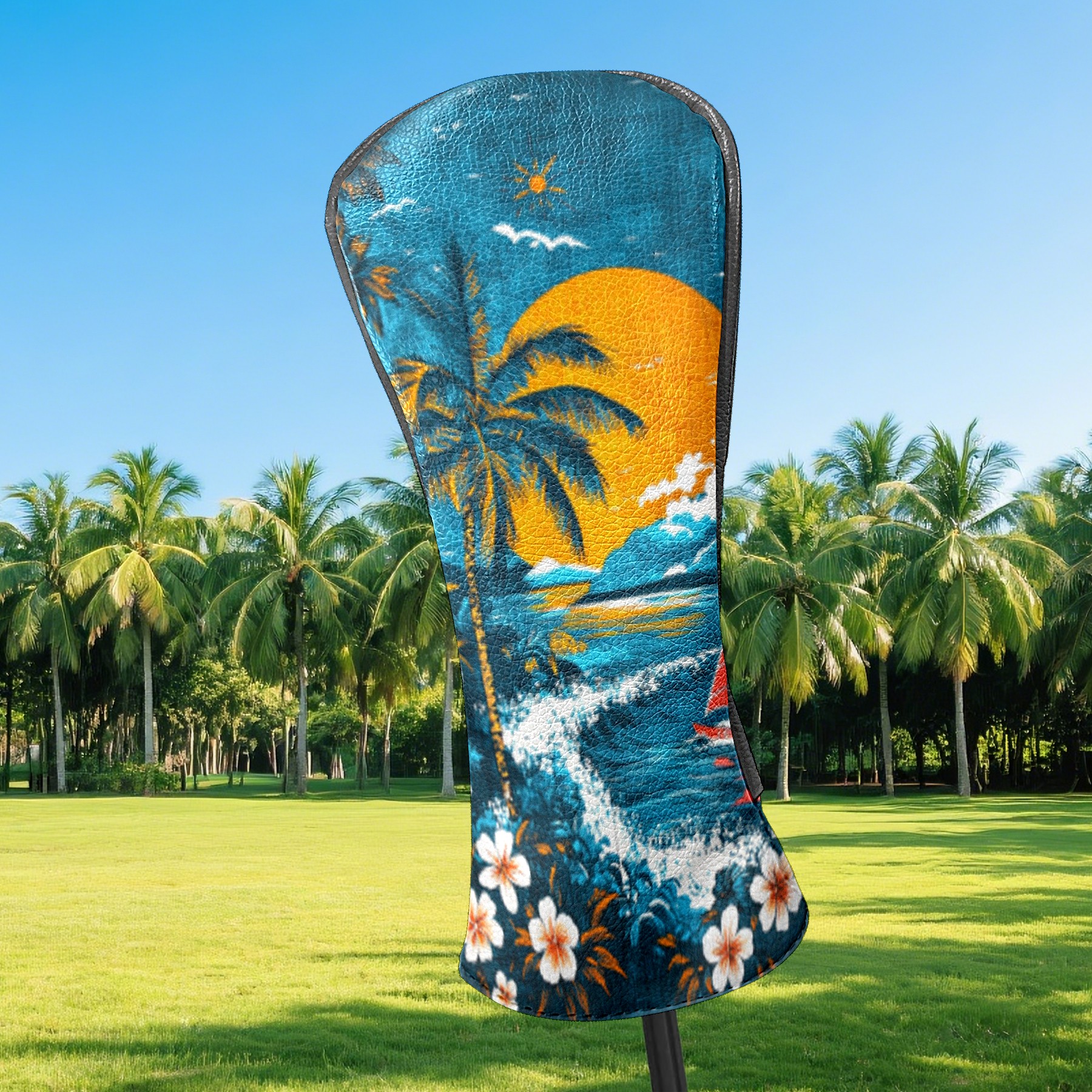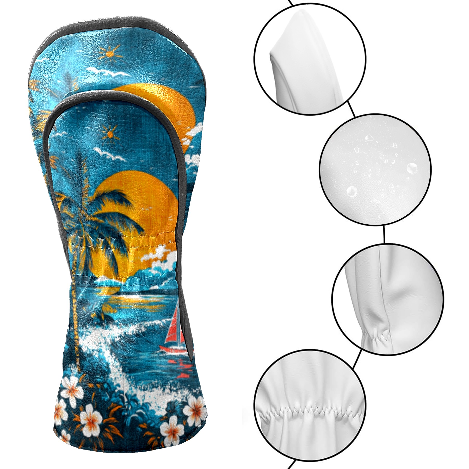 Golf Headcovers Fits Driver Hybrid Fairway 3/5 Wood, Waterproof PU Leather Golf Club Protector, Ideal Sports Accessories & Golfer Gift Hawaiian Beach Pattern2