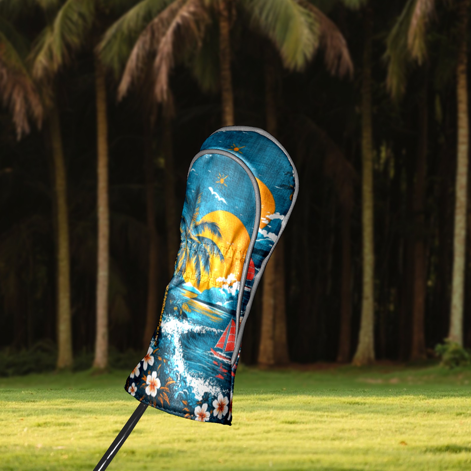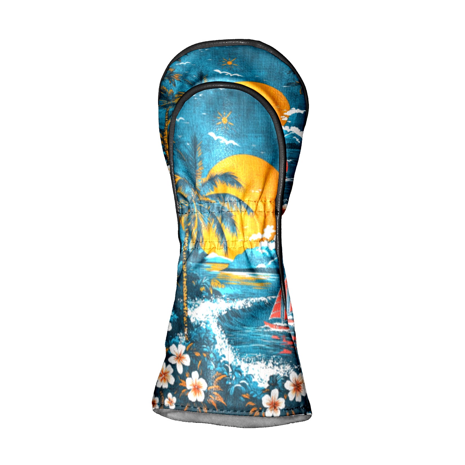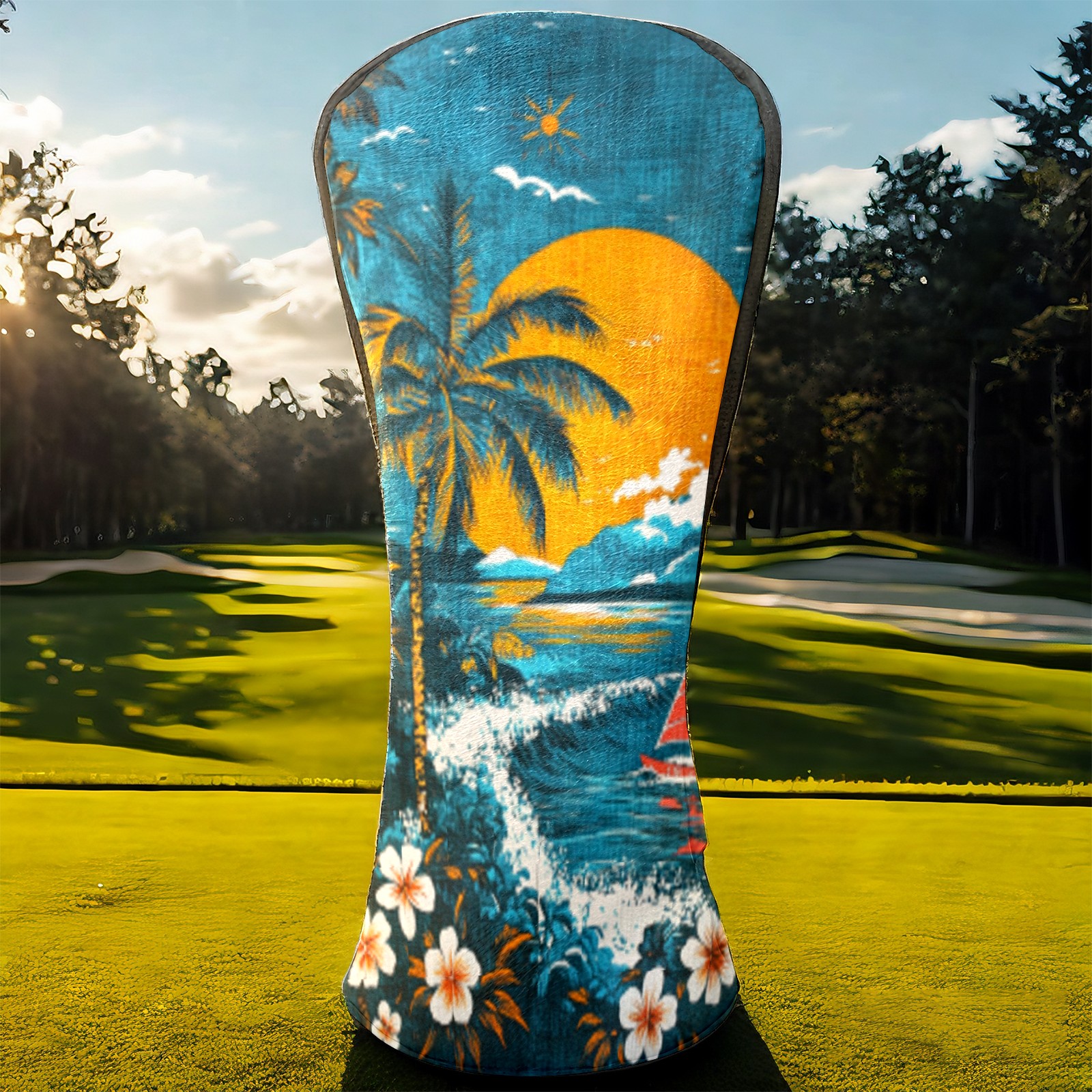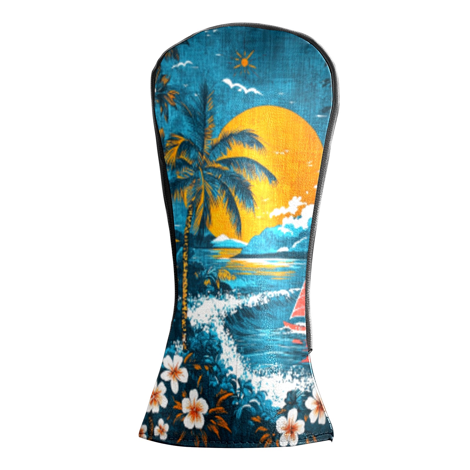 Golf Headcovers Fits Driver Hybrid Fairway 3/5 Wood, Waterproof PU Leather Golf Club Protector, Ideal Sports Accessories & Golfer Gift Hawaiian Beach Pattern2