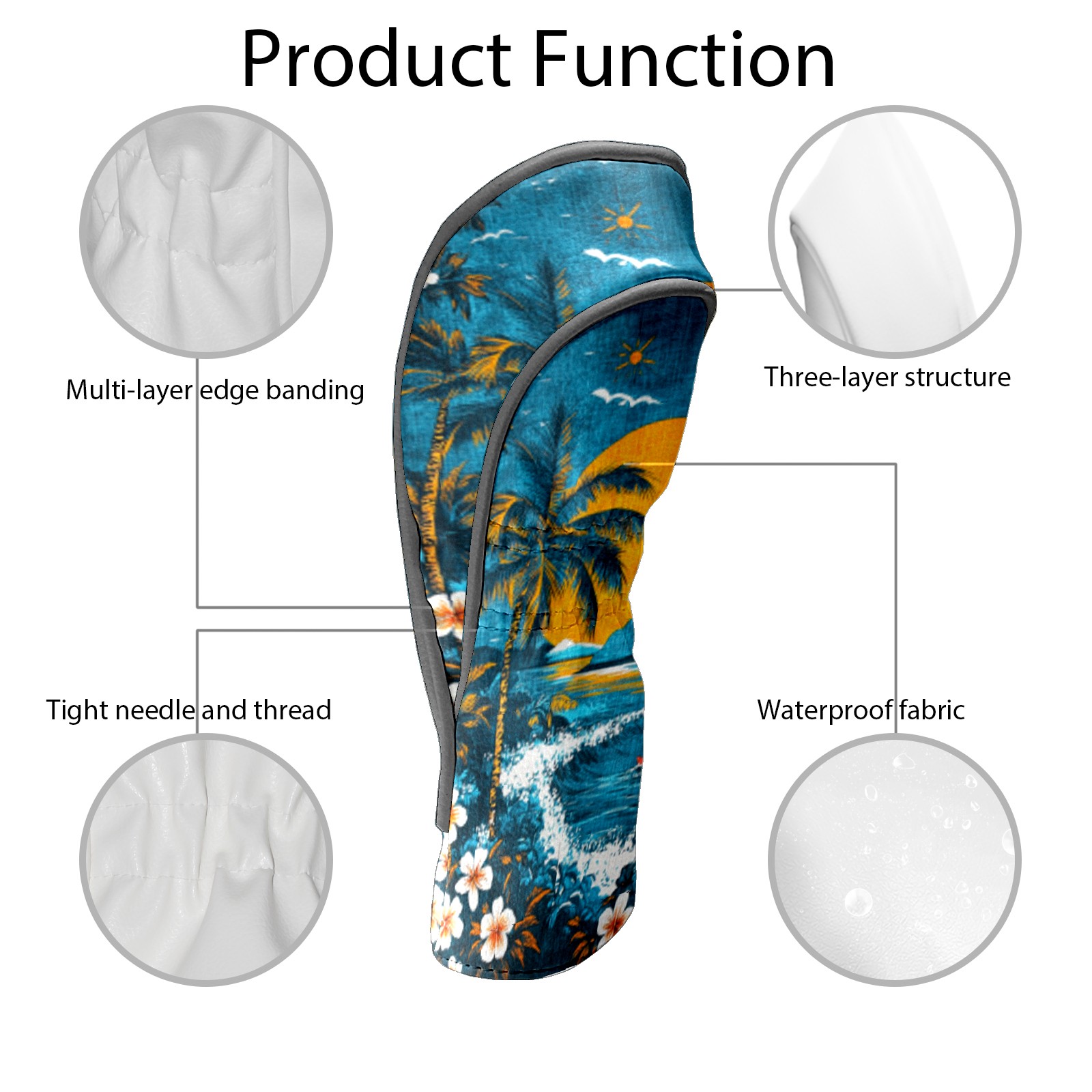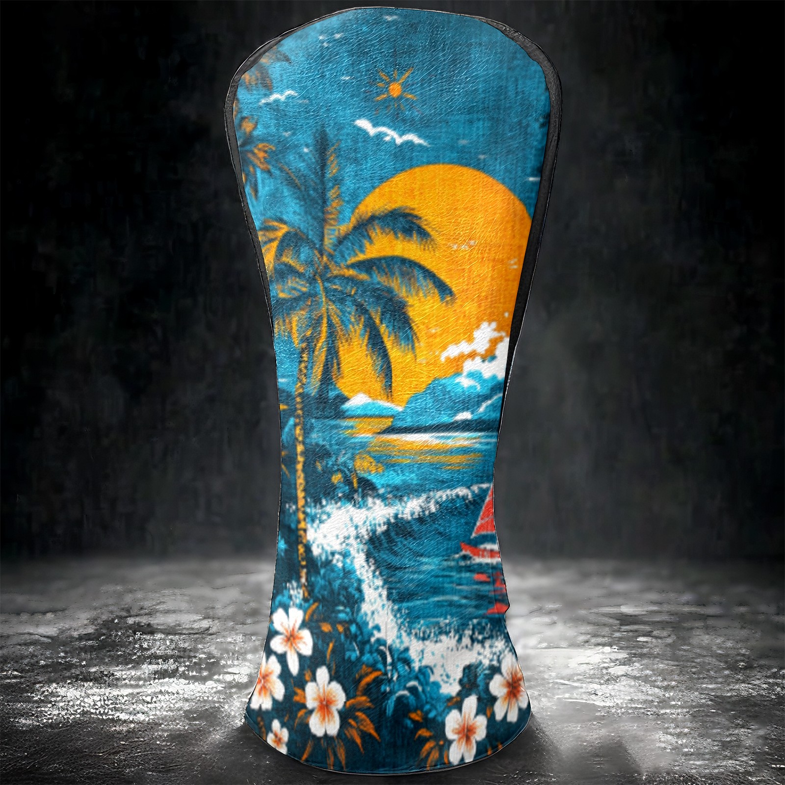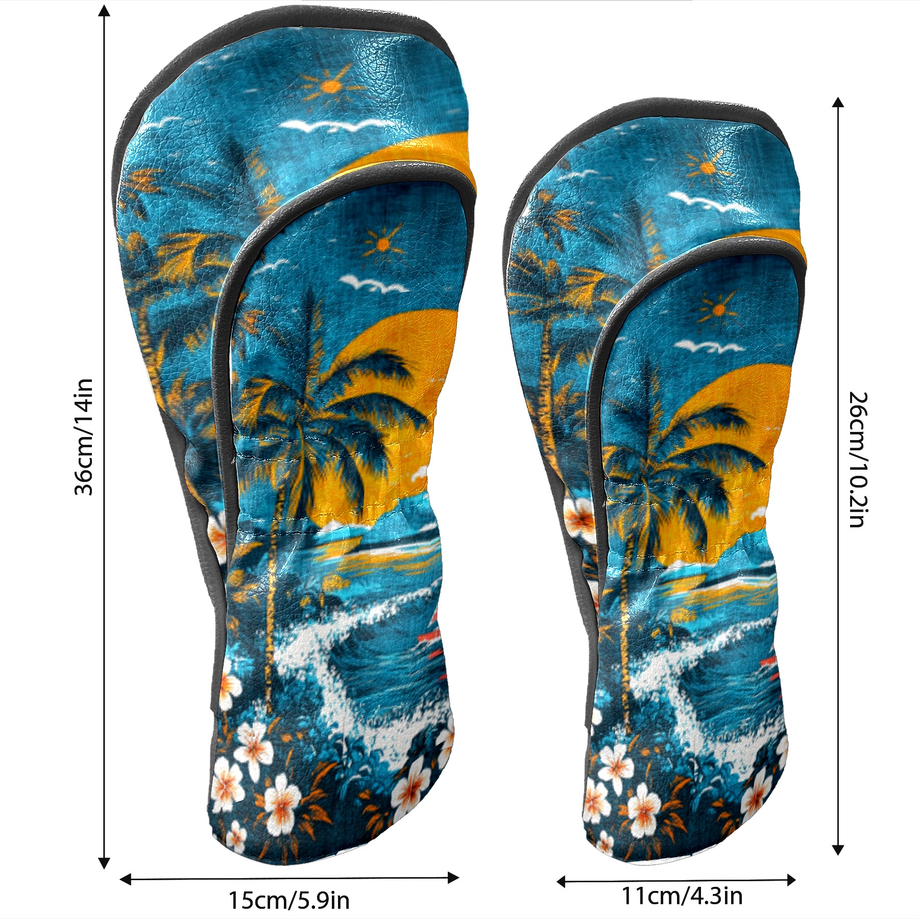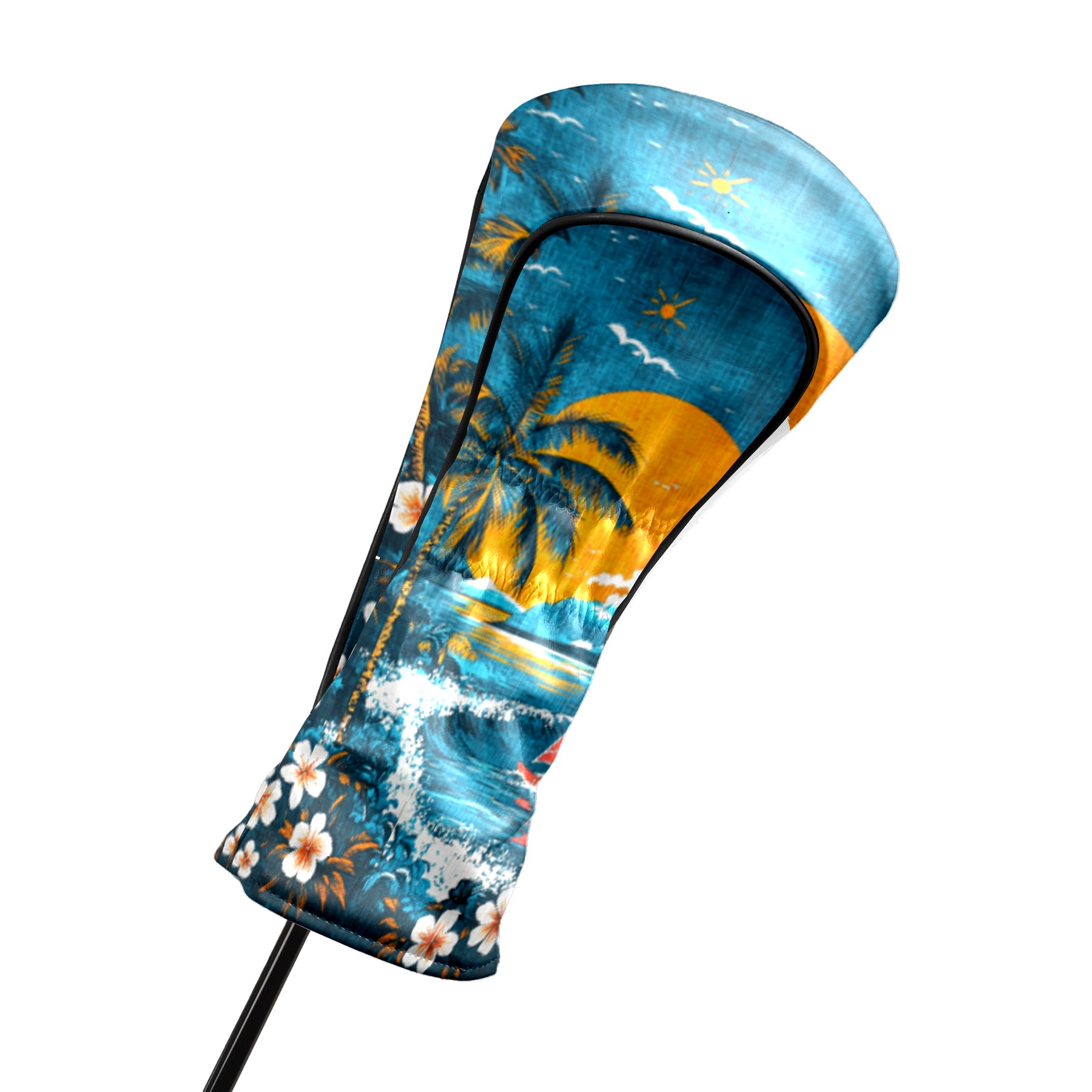Golf Headcovers Fits Driver Hybrid Fairway 3/5 Wood, Waterproof PU Leather Golf Club Protector, Ideal Sports Accessories & Golfer Gift Hawaiian Beach Pattern2