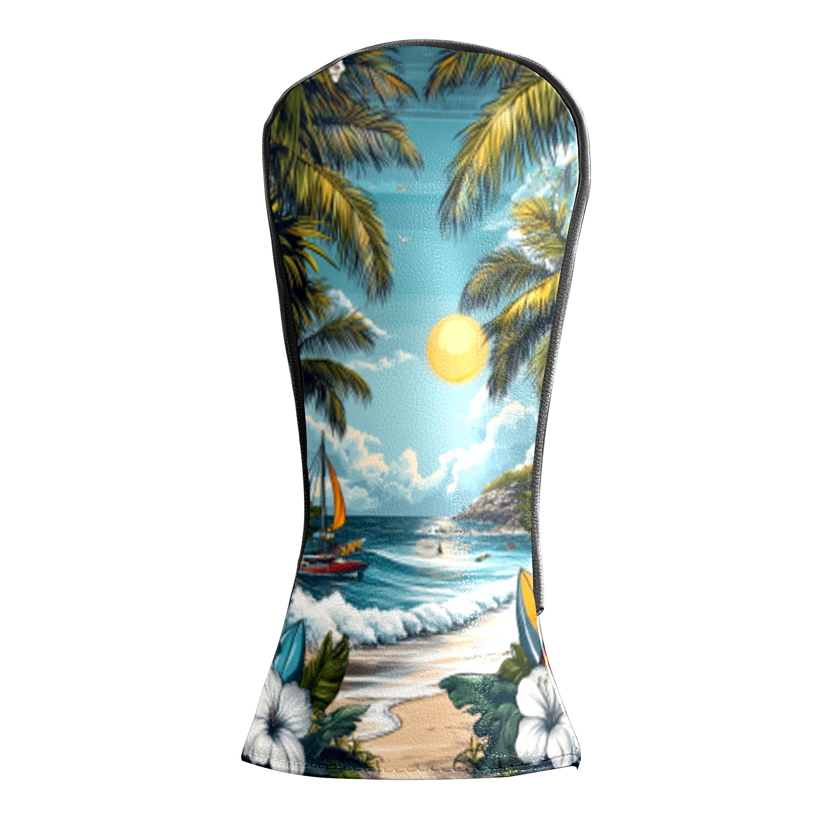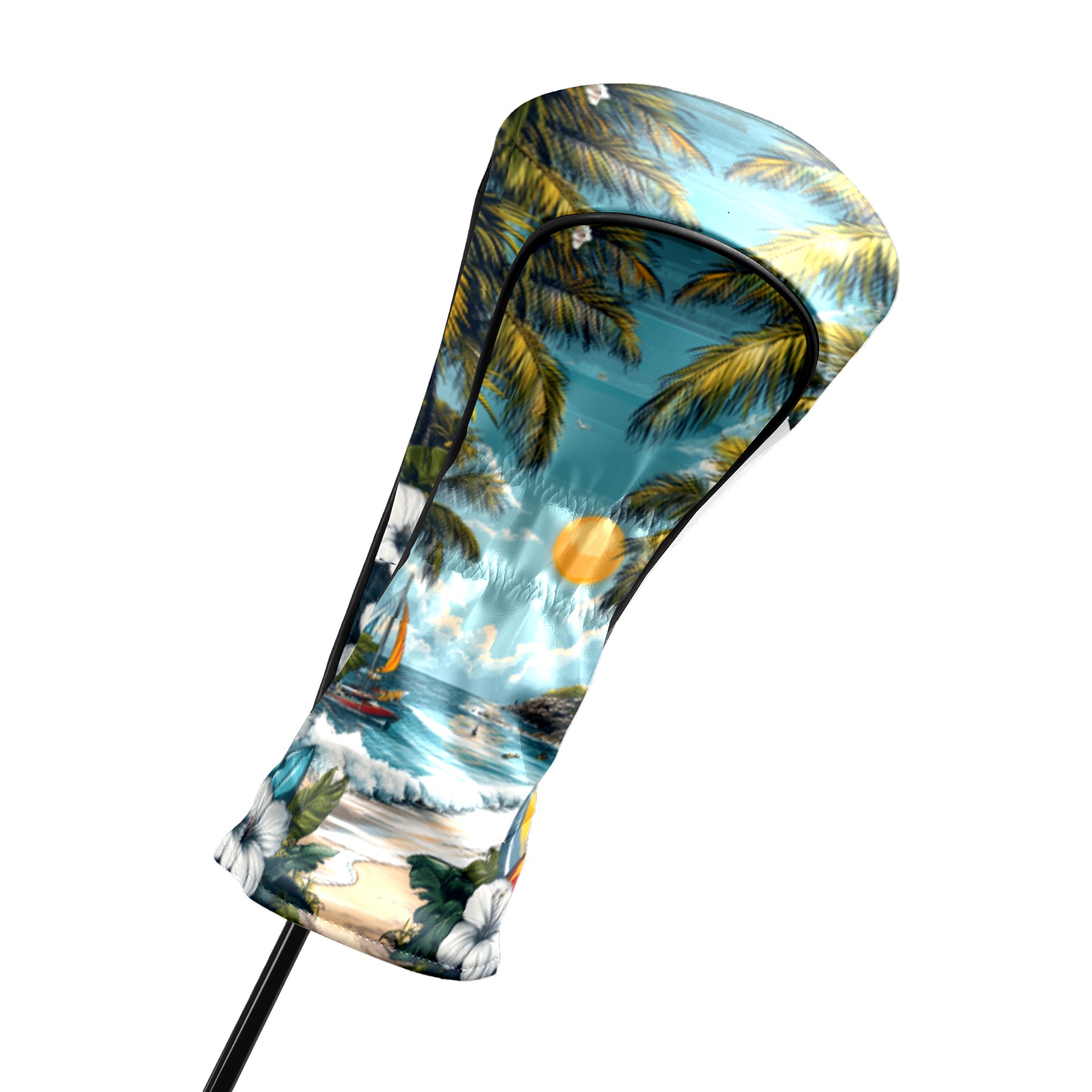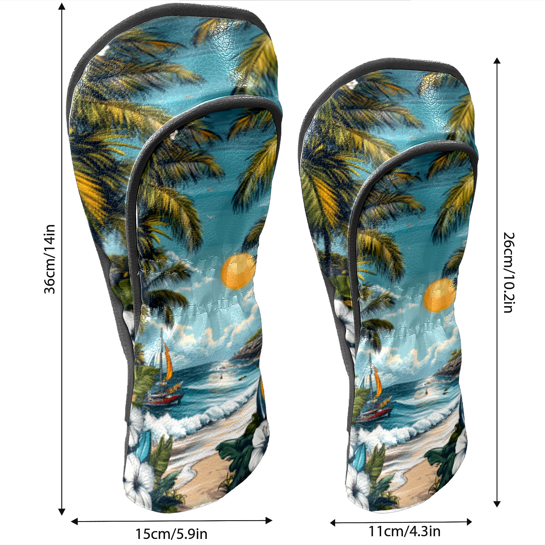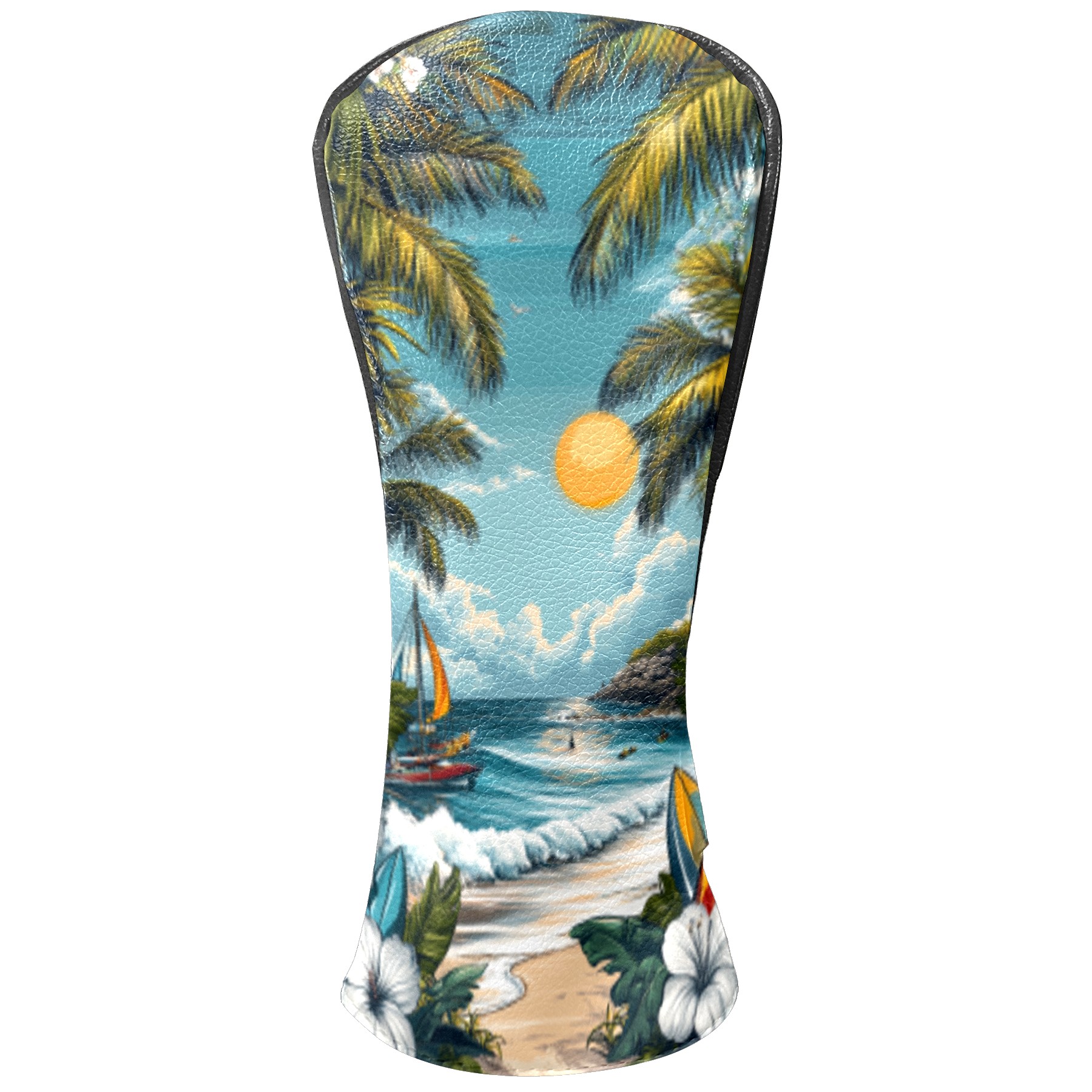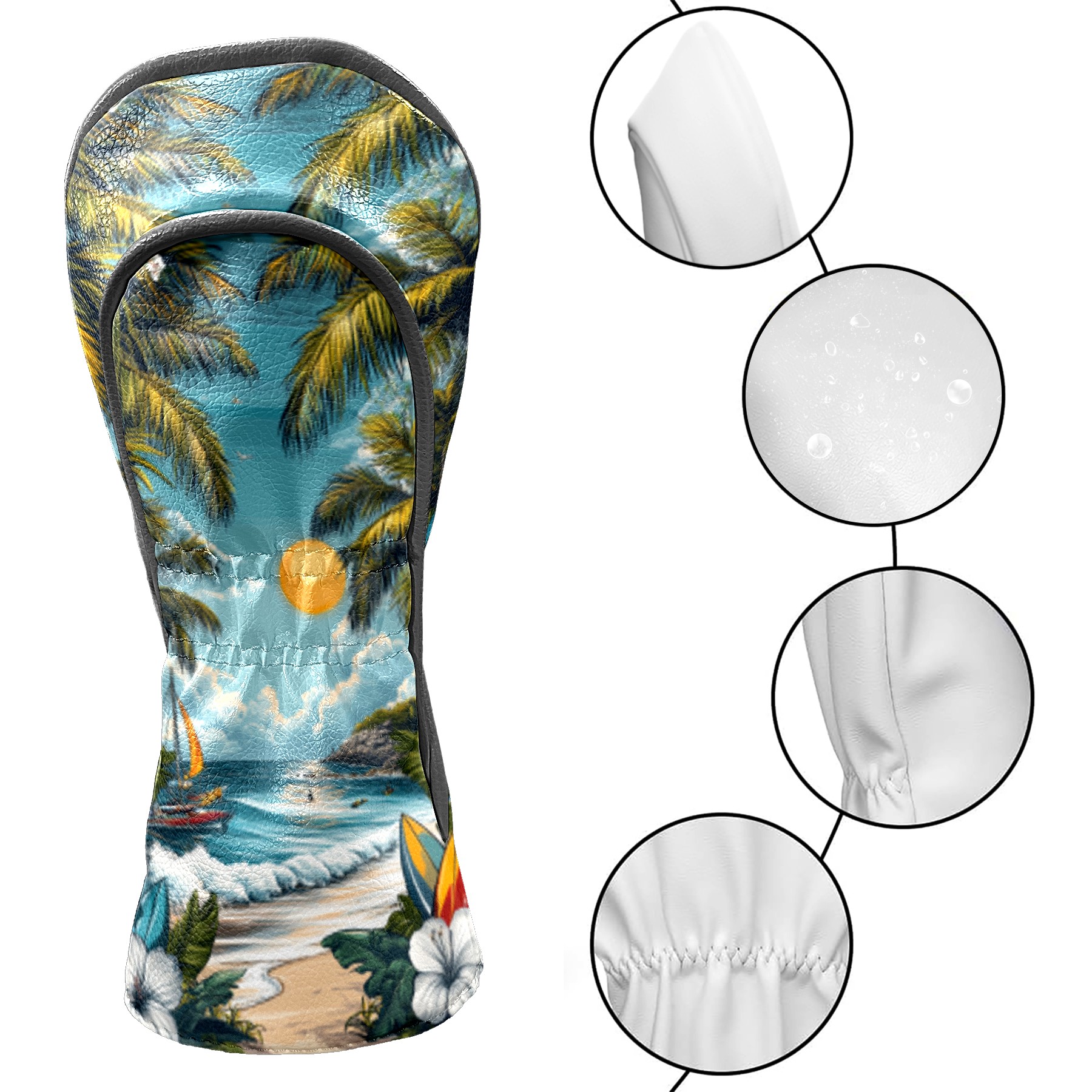 Golf Headcovers Fits Driver Hybrid Fairway 3/5 Wood, Waterproof PU Leather Golf Club Protector, Ideal Sports Accessories & Golfer Gift Hawaiian Beach Pattern
