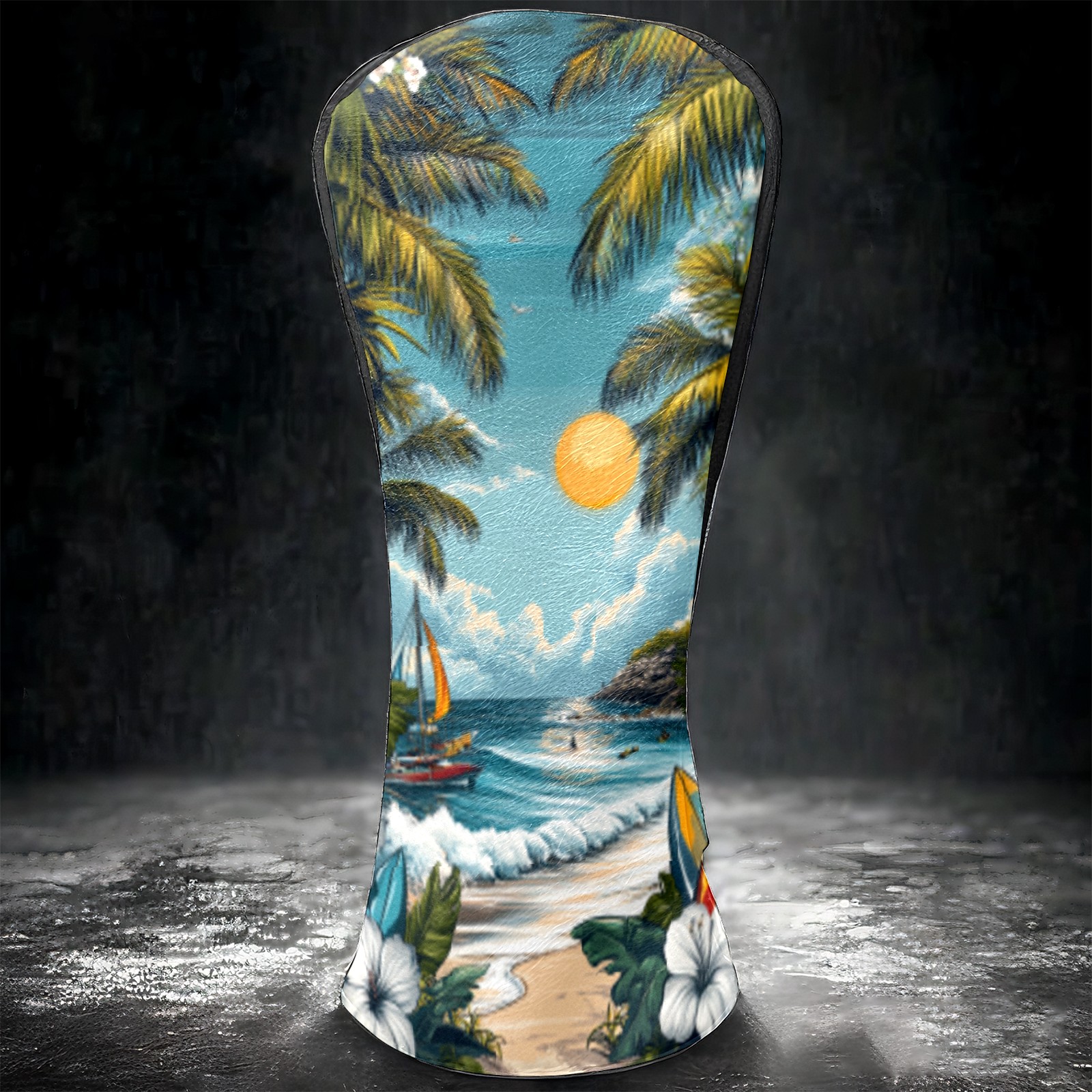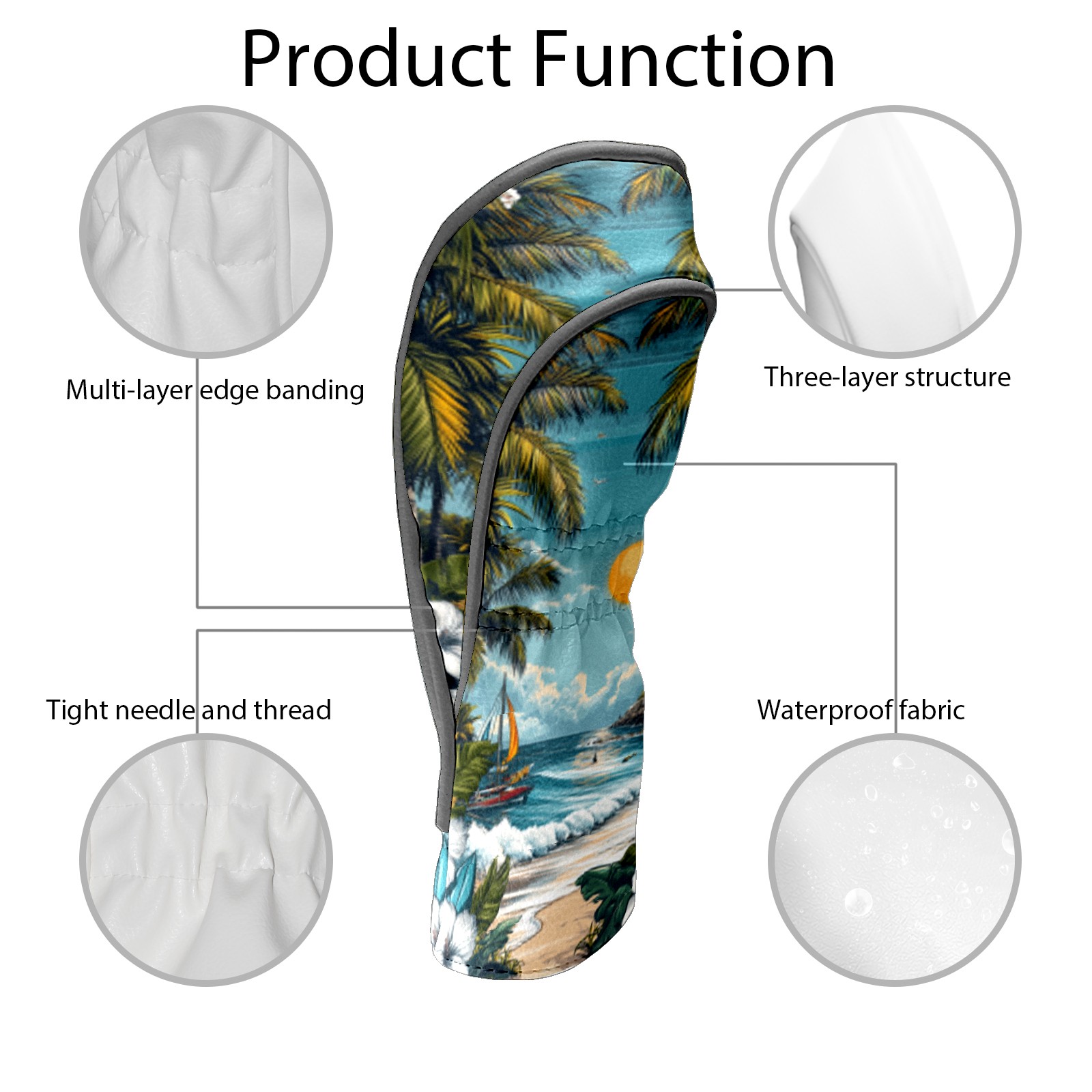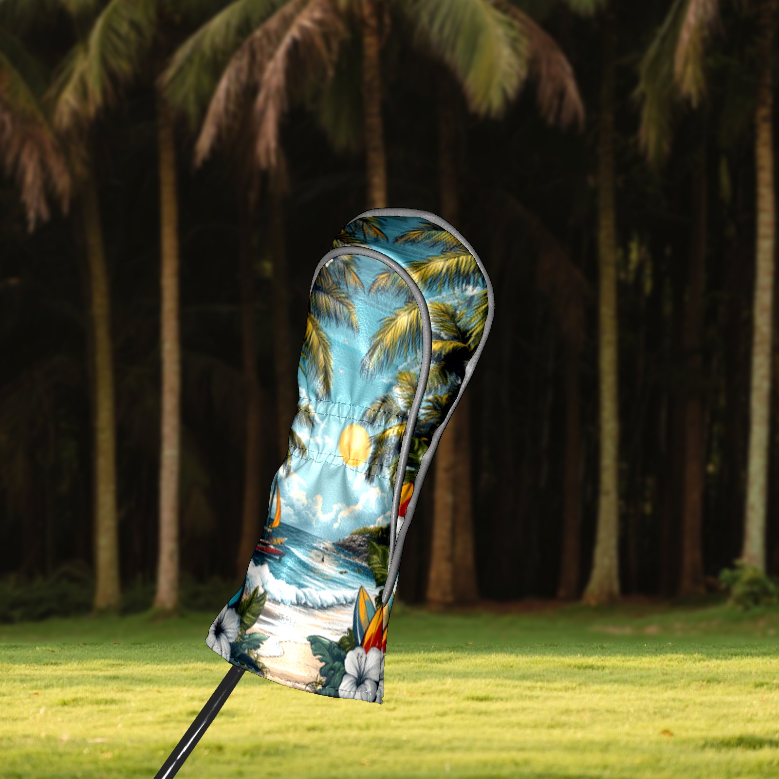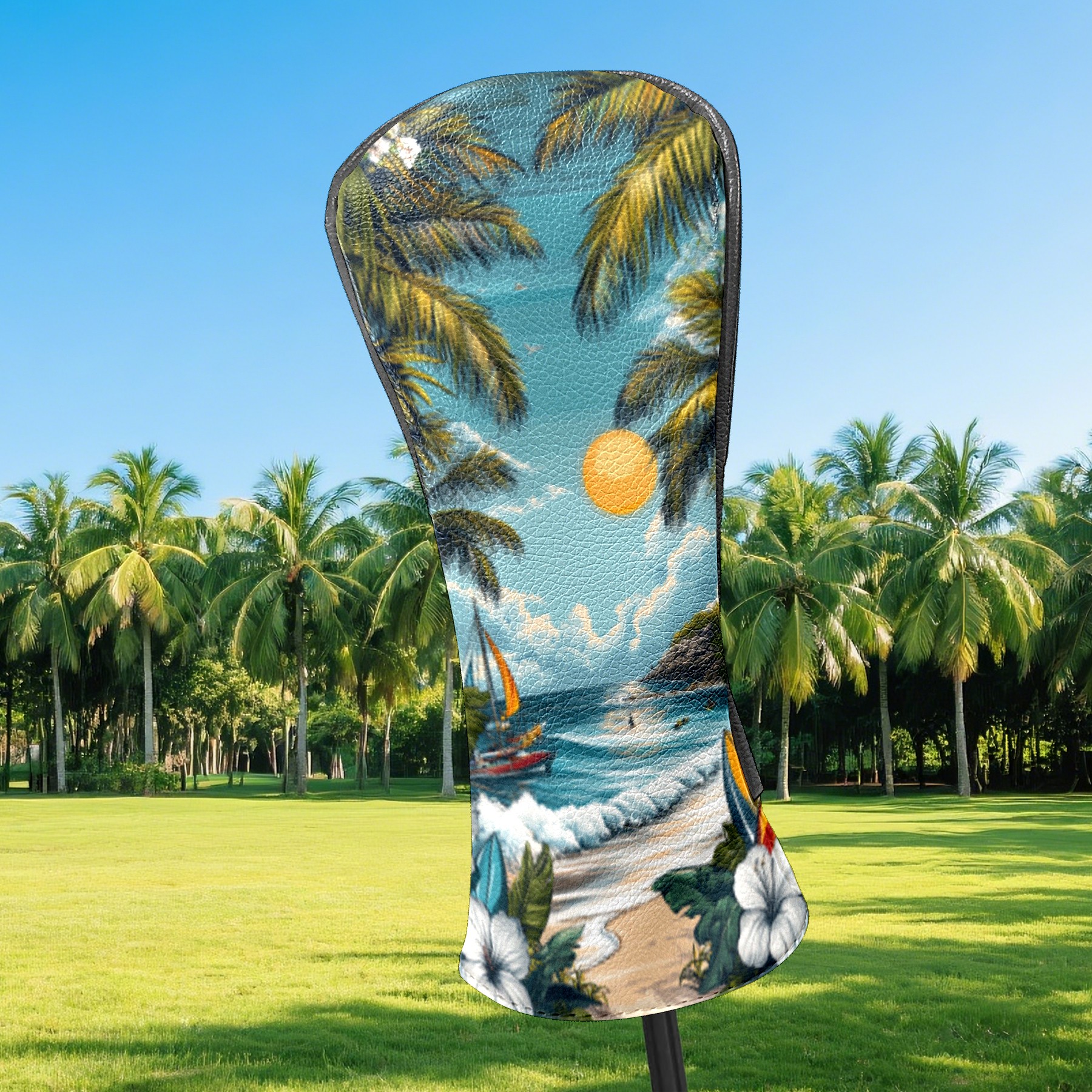 Golf Headcovers Fits Driver Hybrid Fairway 3/5 Wood, Waterproof PU Leather Golf Club Protector, Ideal Sports Accessories & Golfer Gift Hawaiian Beach Pattern