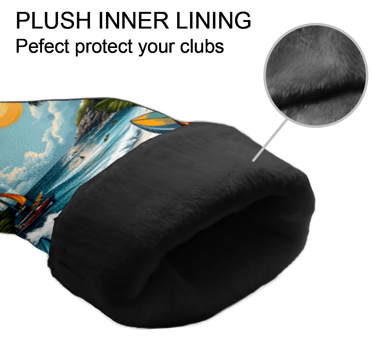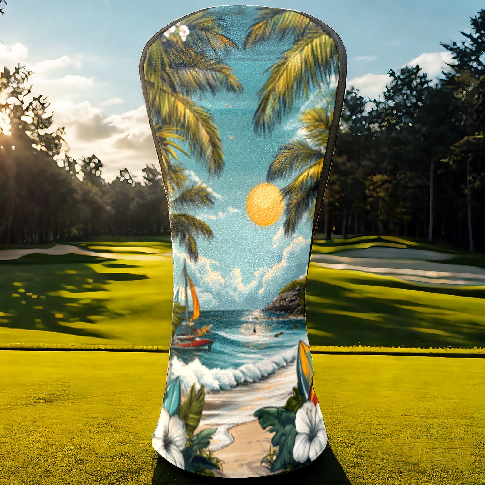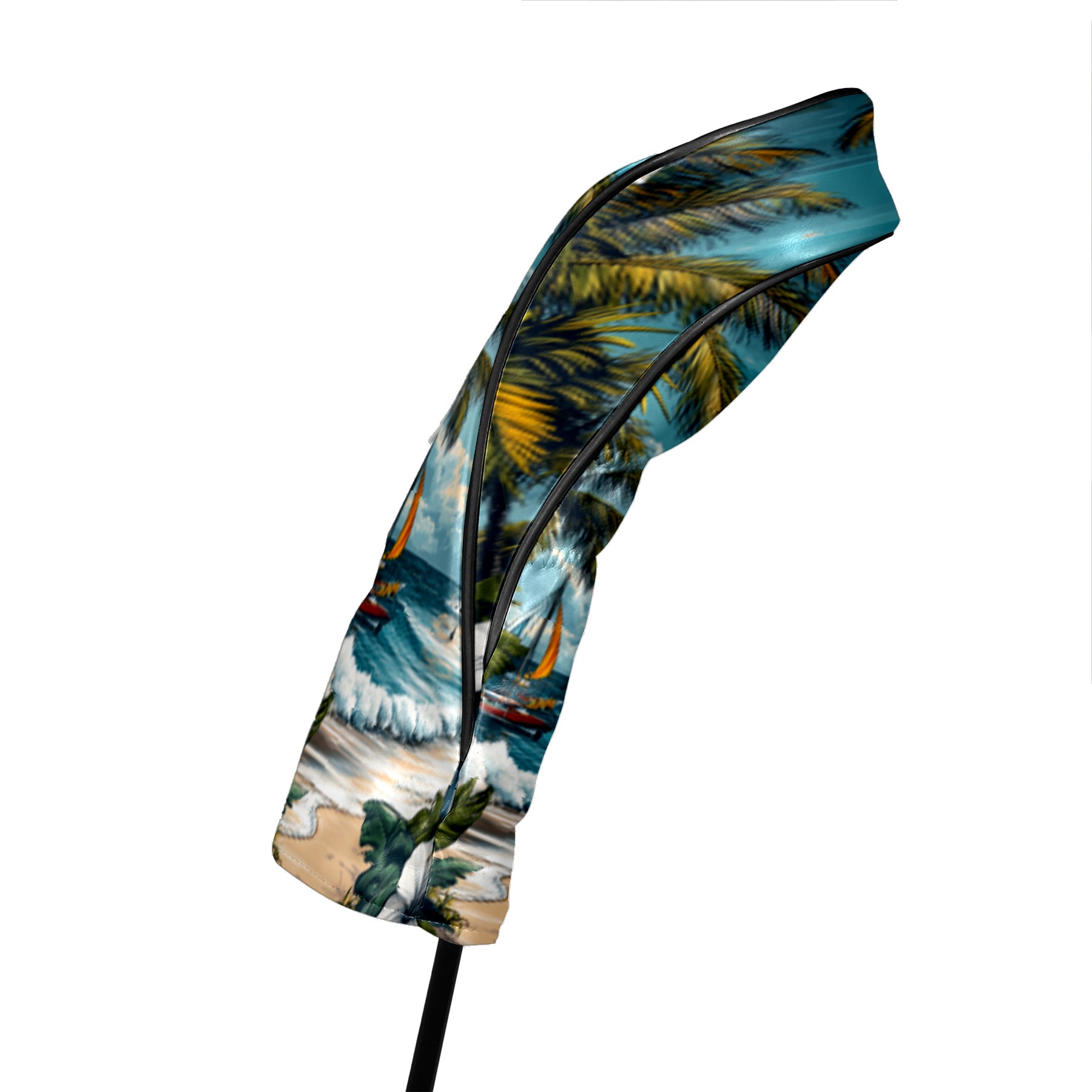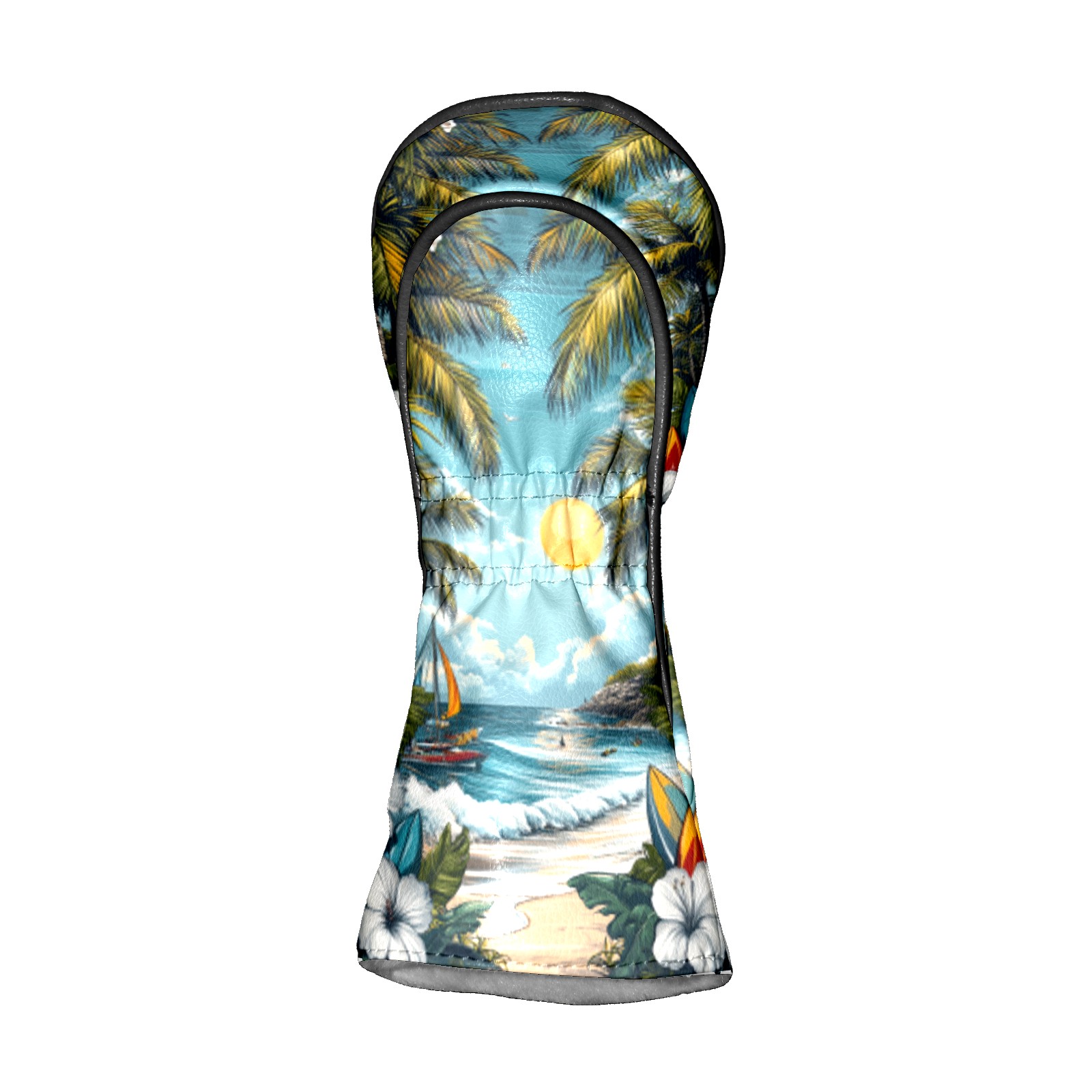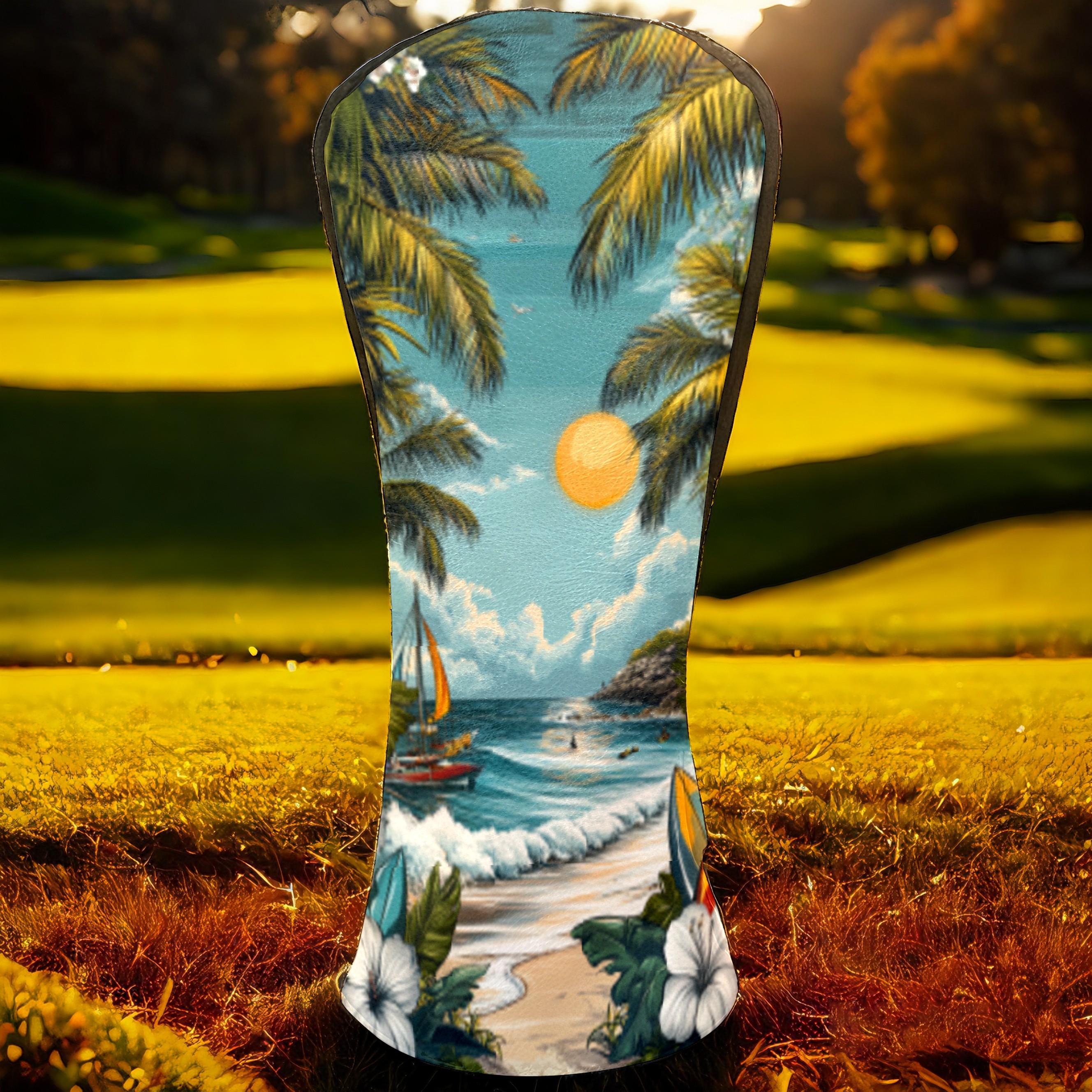 Golf Headcovers Fits Driver Hybrid Fairway 3/5 Wood, Waterproof PU Leather Golf Club Protector, Ideal Sports Accessories & Golfer Gift Hawaiian Beach Pattern
