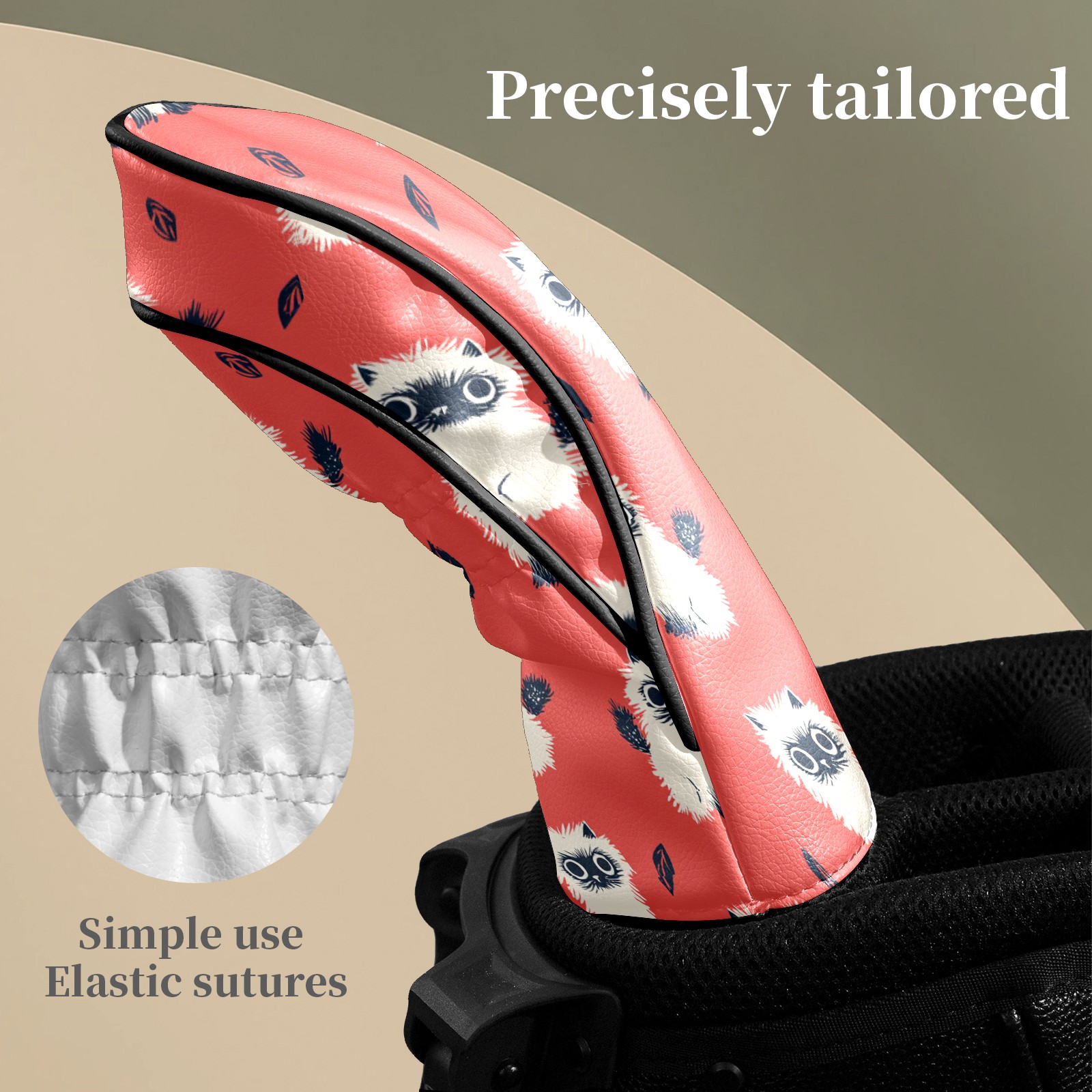 Golf Club Head Covers Cute Raccoon Pink Premium Plush Velvet Lining, Waterproof Golf Headcovers Driver & Fairway Woods for Scratch Protection Novelty Gift for Men & Women
