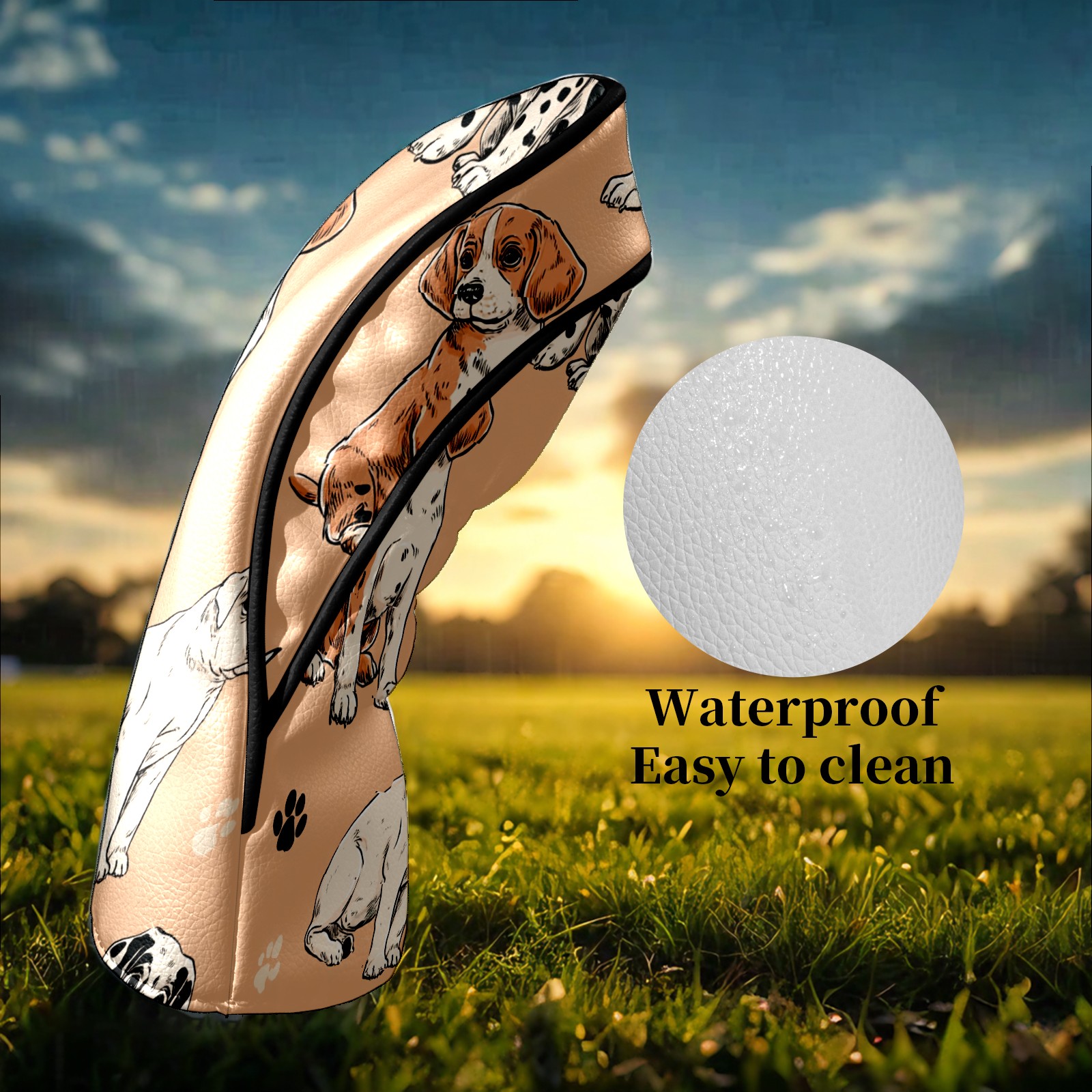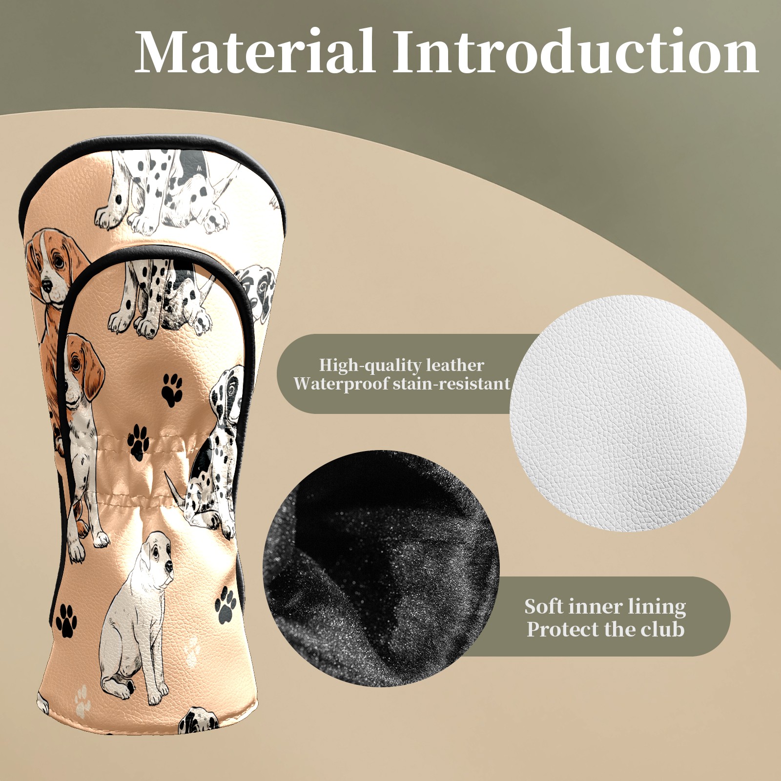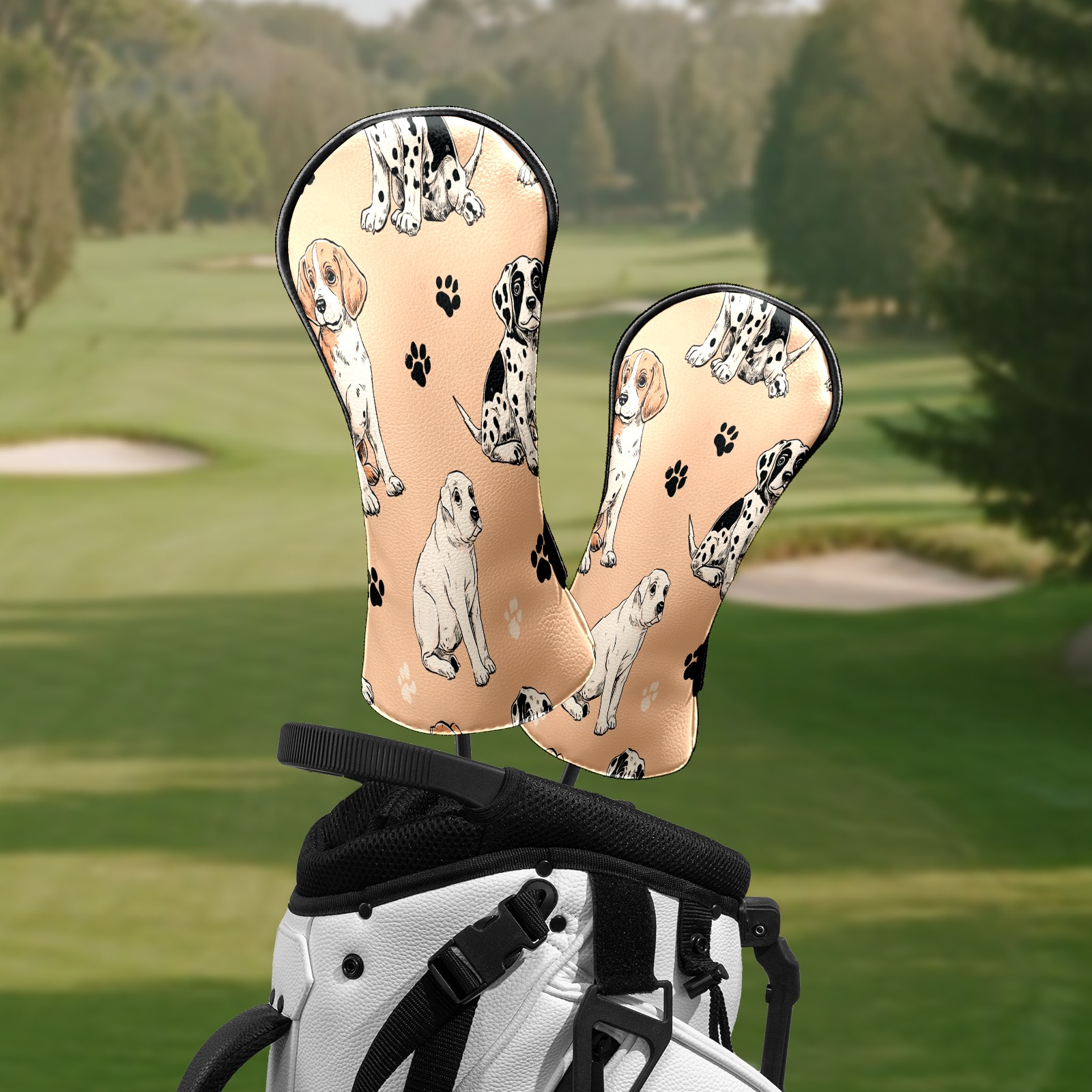 Golf Club Head Covers Cute Dalmatian Beige Premium Plush Velvet Lining, Waterproof Golf Headcovers Driver & Fairway Woods for Scratch Protection Novelty Gift for Men & Women