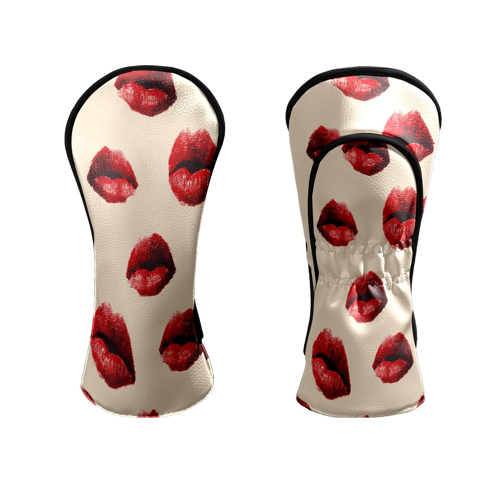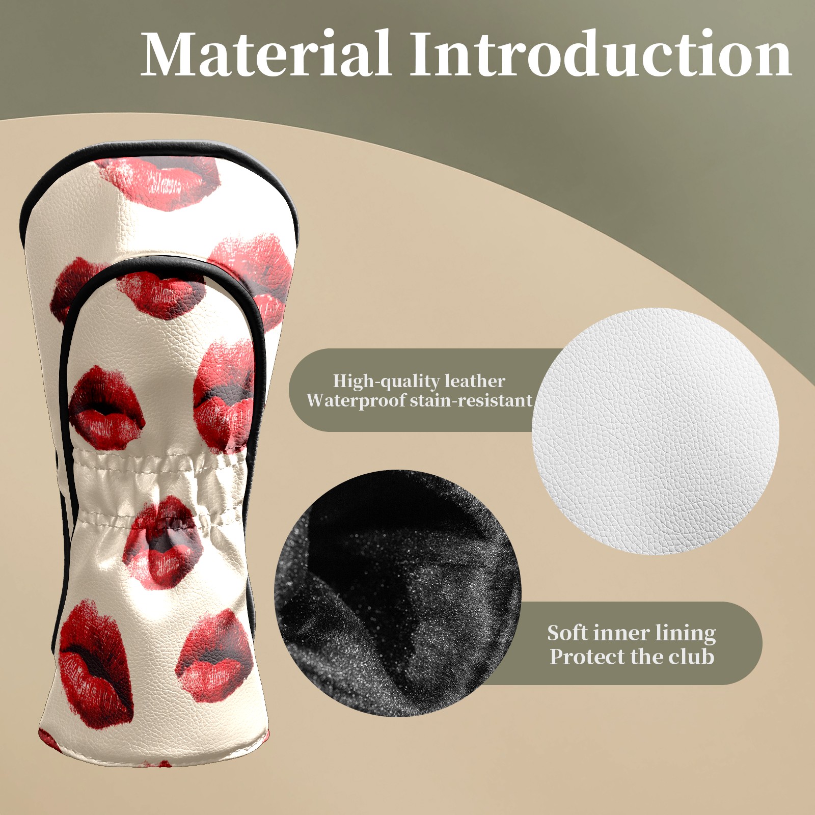 Golf Club Head Covers Bright Lip Beige Premium Plush Velvet Lining, Waterproof Golf Headcovers Driver & Fairway Woods for Scratch Protection Novelty Gift for Men & Women