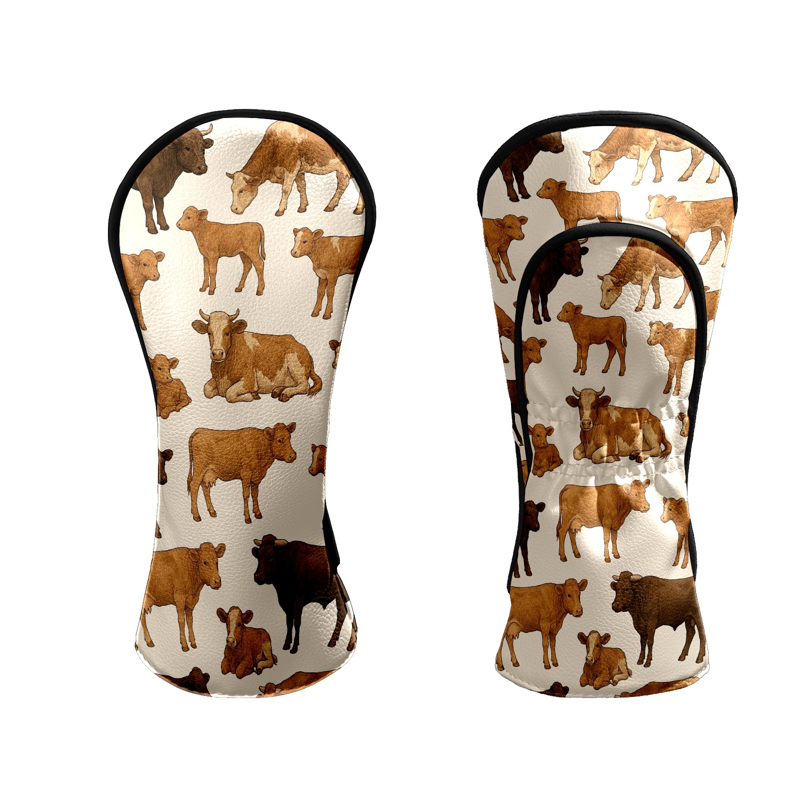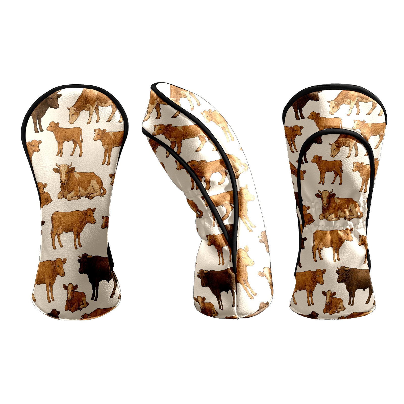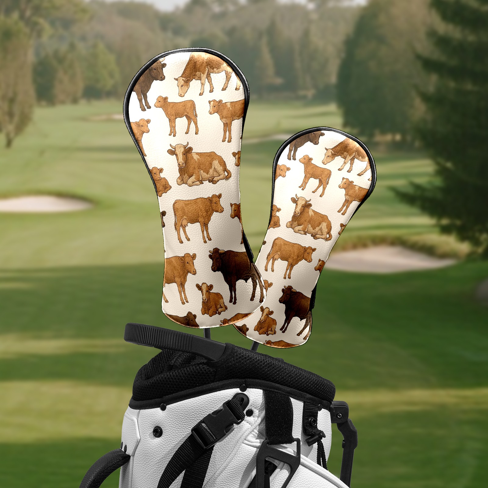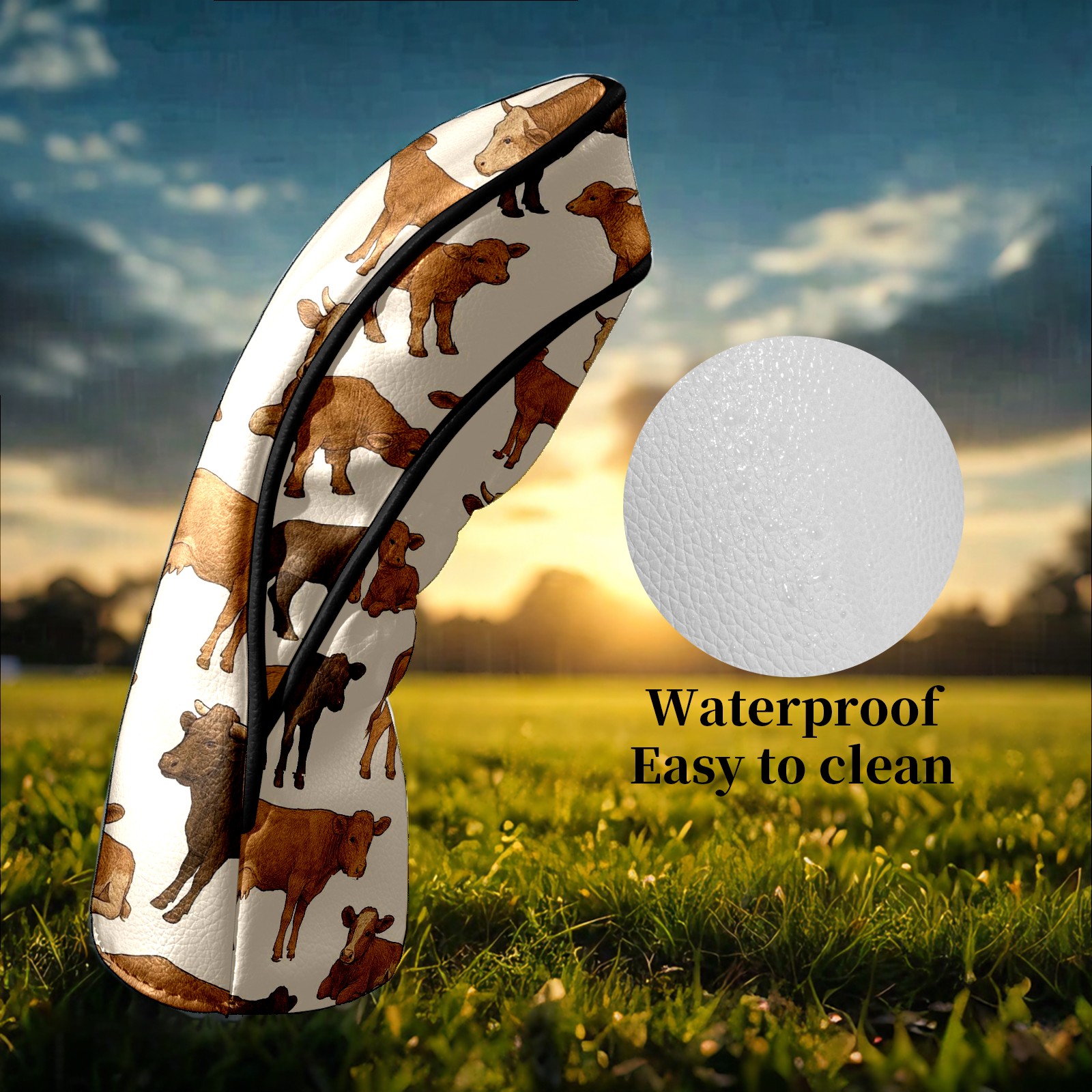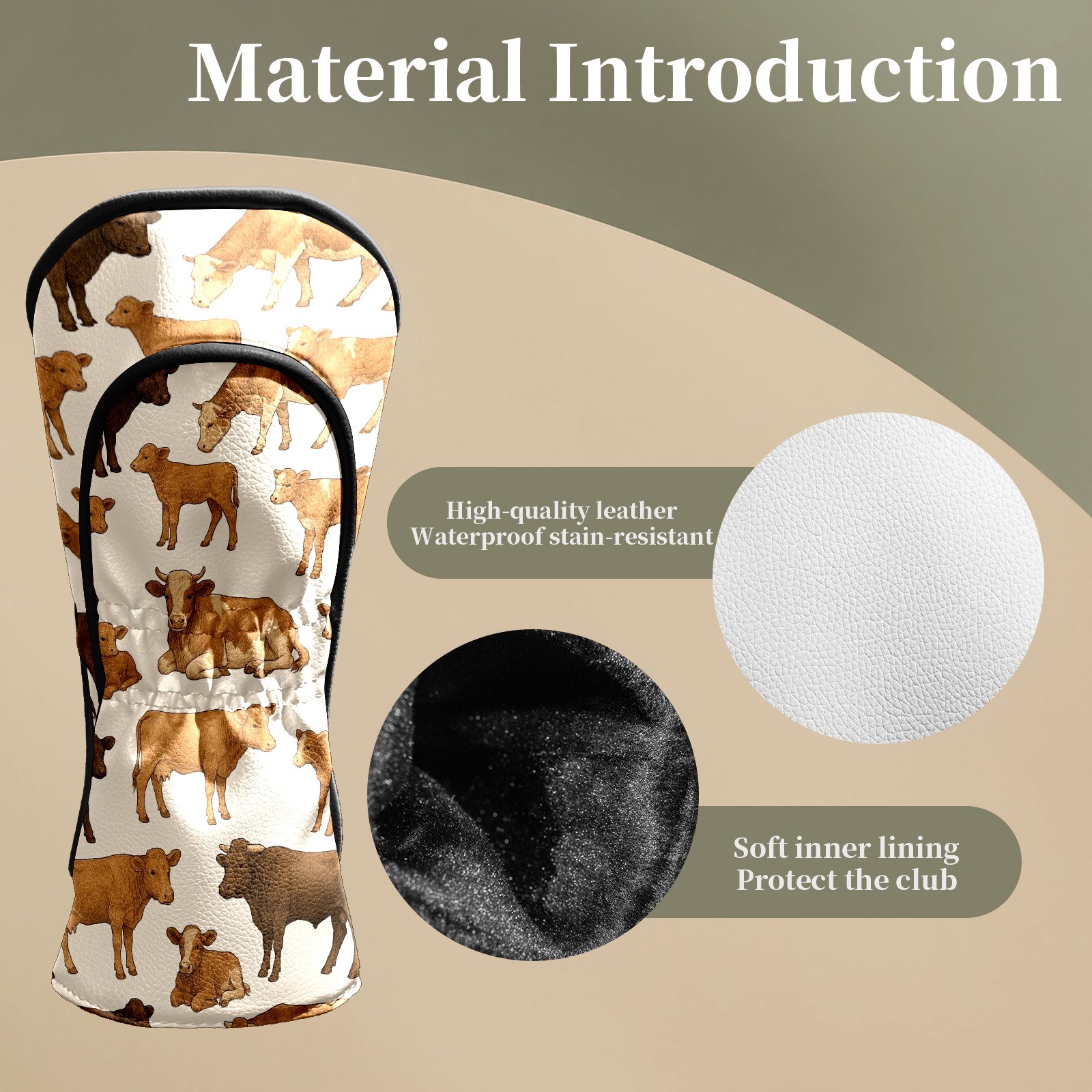 Golf Club Head Covers Rustic Ox Brown Premium Plush Velvet Lining, Waterproof Golf Headcovers Driver & Fairway Woods for Scratch Protection Novelty Gift for Men & Women