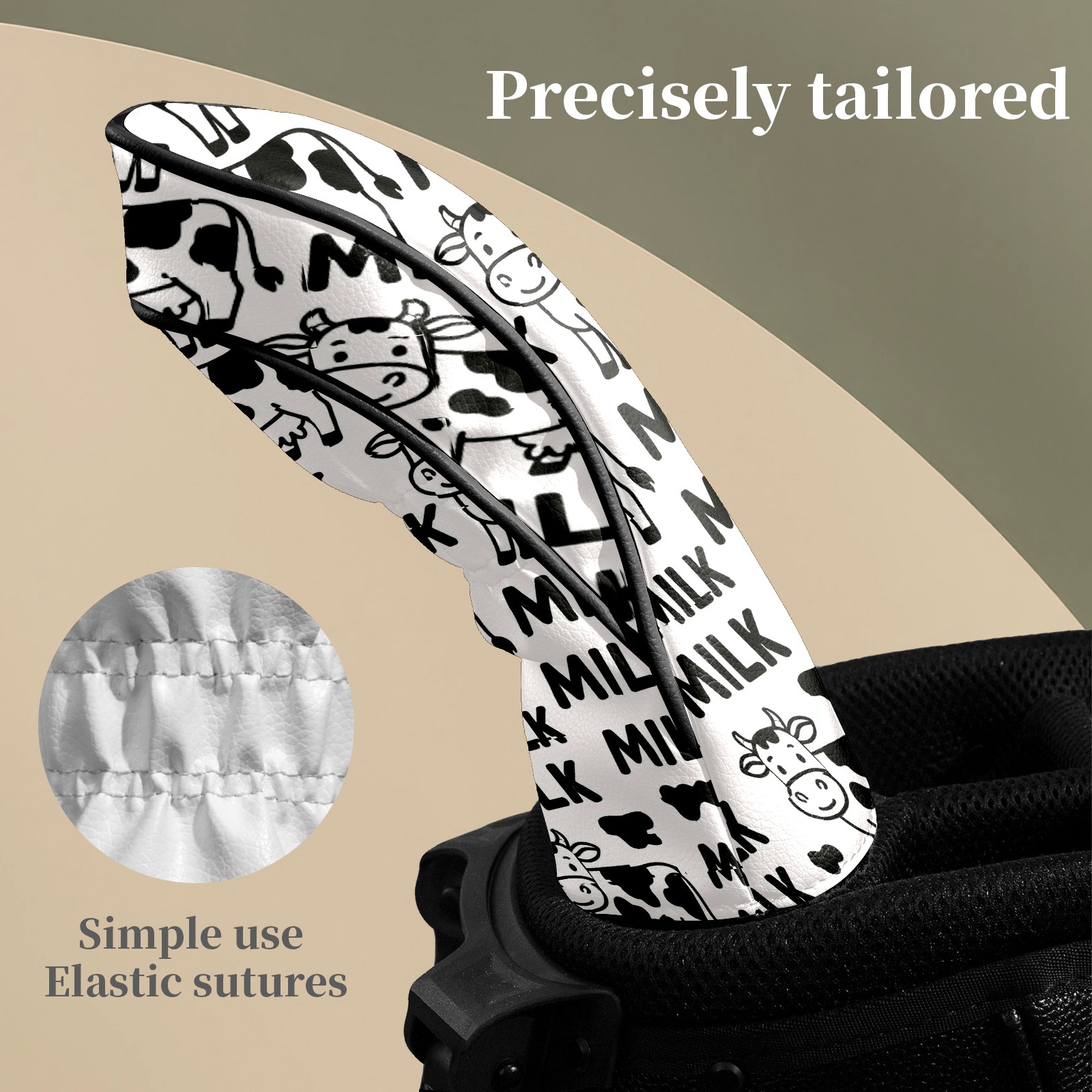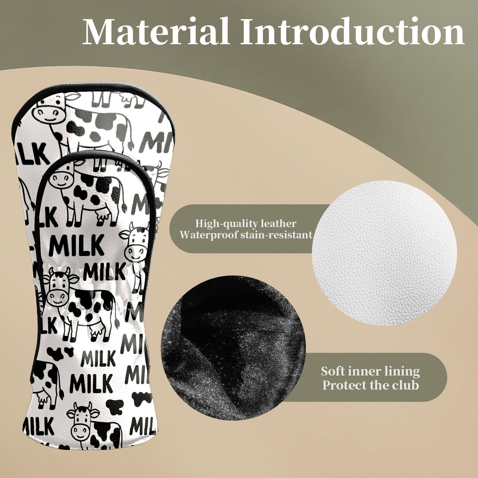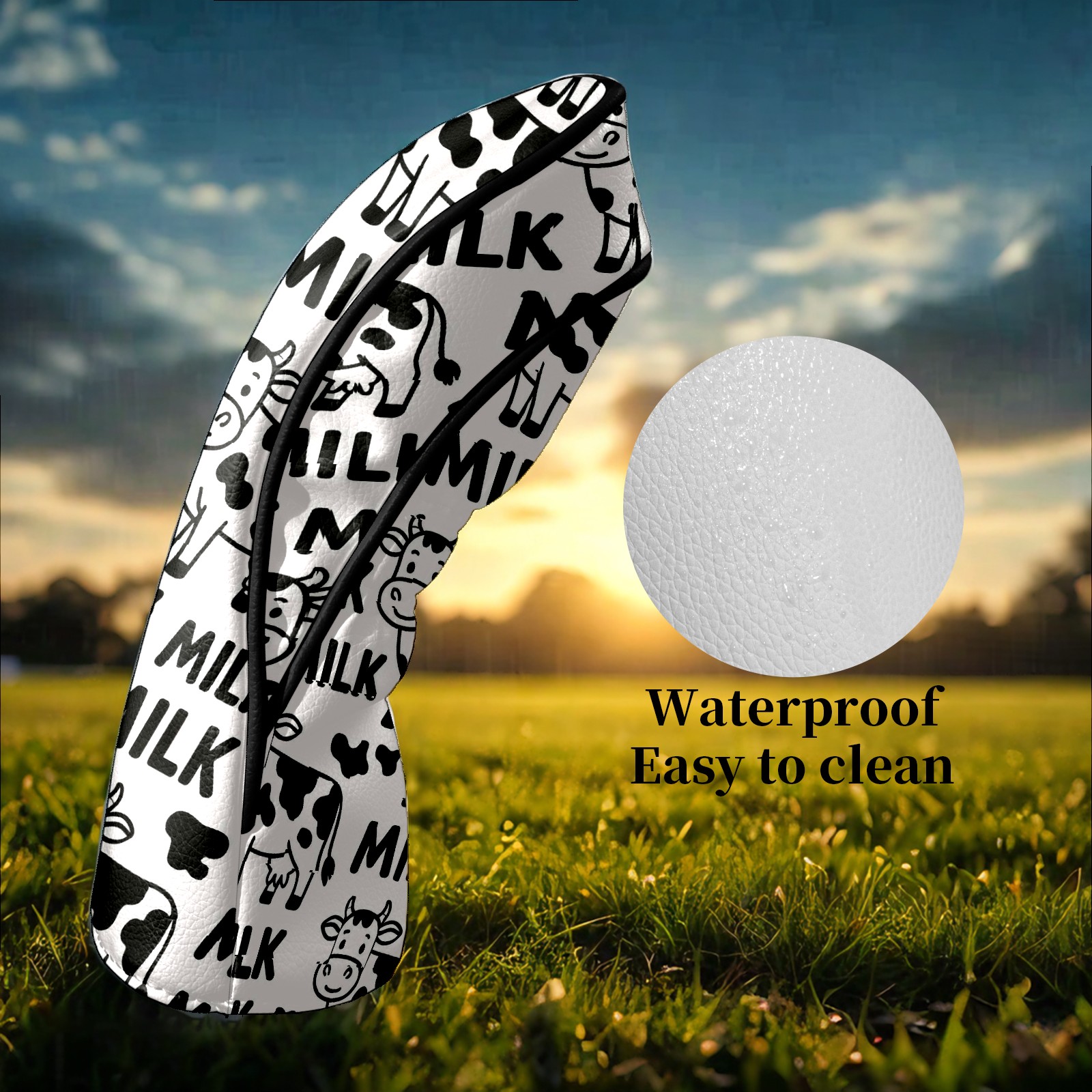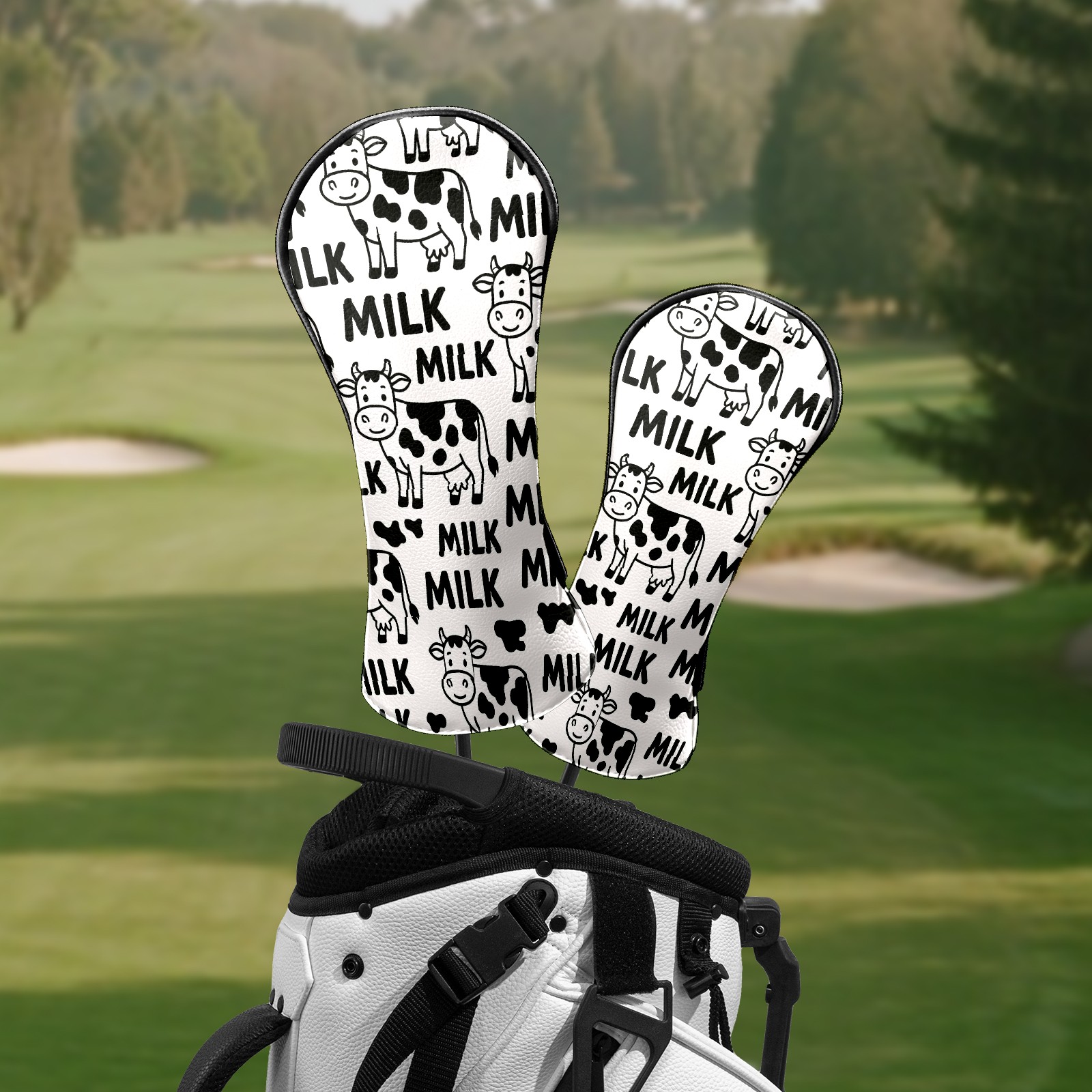 Golf Club Head Covers Trendy Cow Black Premium Plush Velvet Lining, Waterproof Golf Headcovers Driver & Fairway Woods for Scratch Protection Novelty Gift for Men & Women