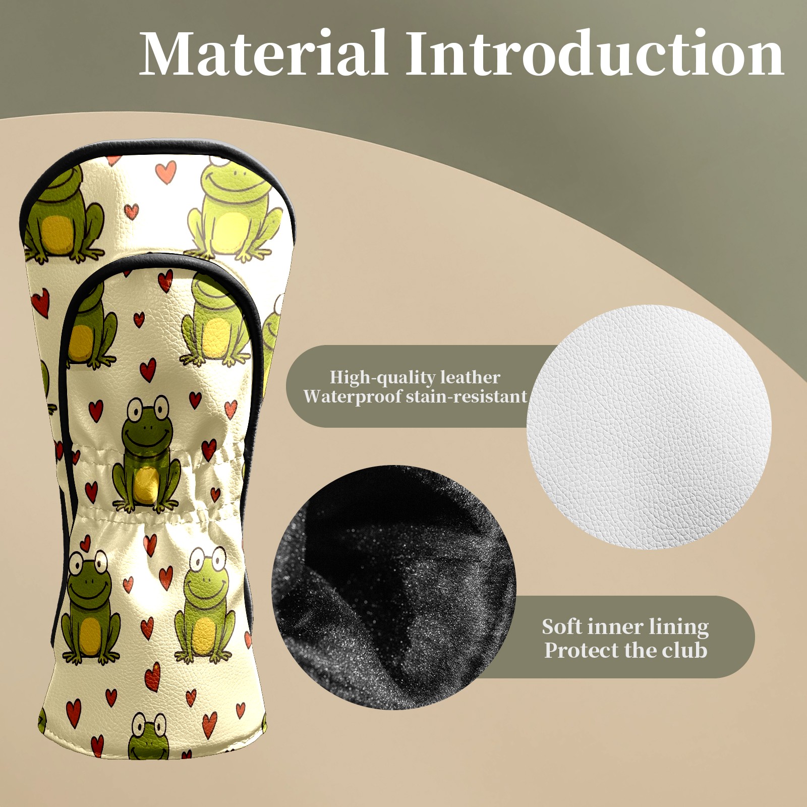 Golf Club Head Covers Playful Frog Yellow Premium Plush Velvet Lining, Waterproof Golf Headcovers Driver & Fairway Woods for Scratch Protection Novelty Gift for Men & Women