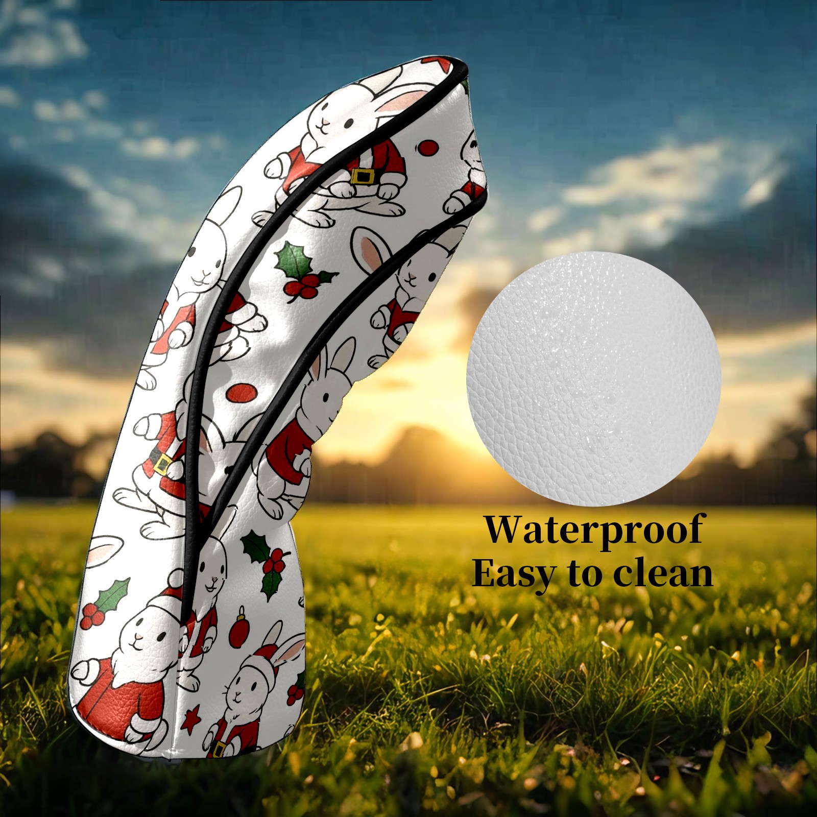 Golf Club Head Covers Cute Rabbit Red Premium Plush Velvet Lining, Waterproof Golf Headcovers Driver & Fairway Woods for Scratch Protection Novelty Gift for Men & Women