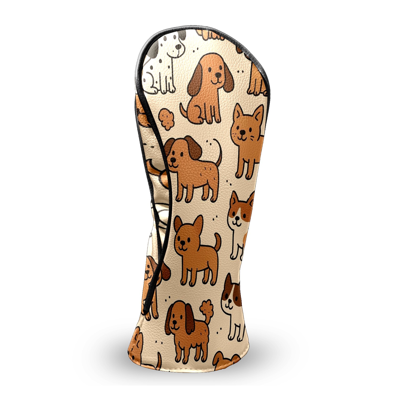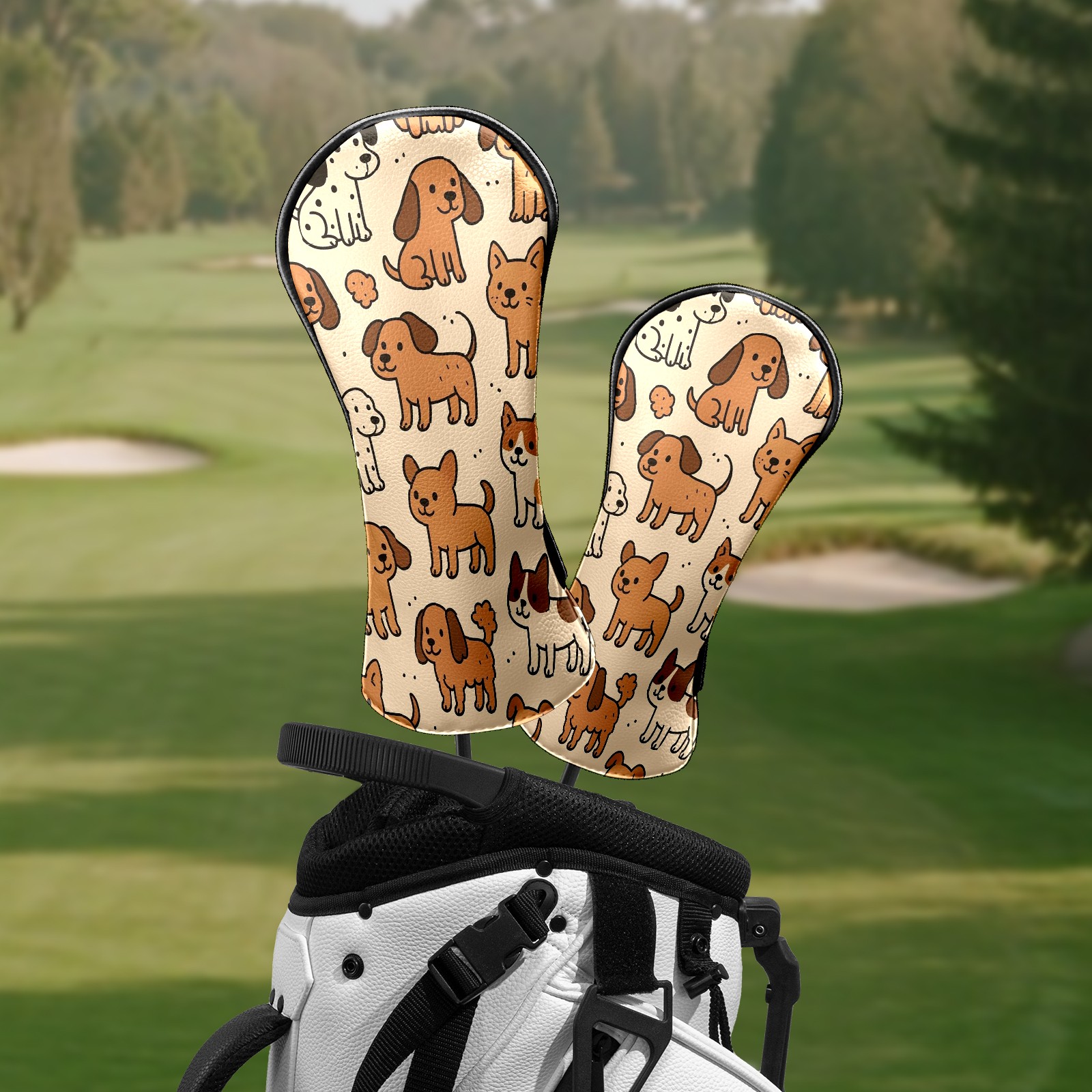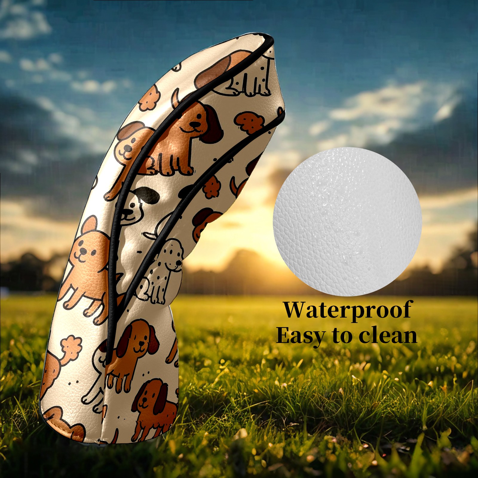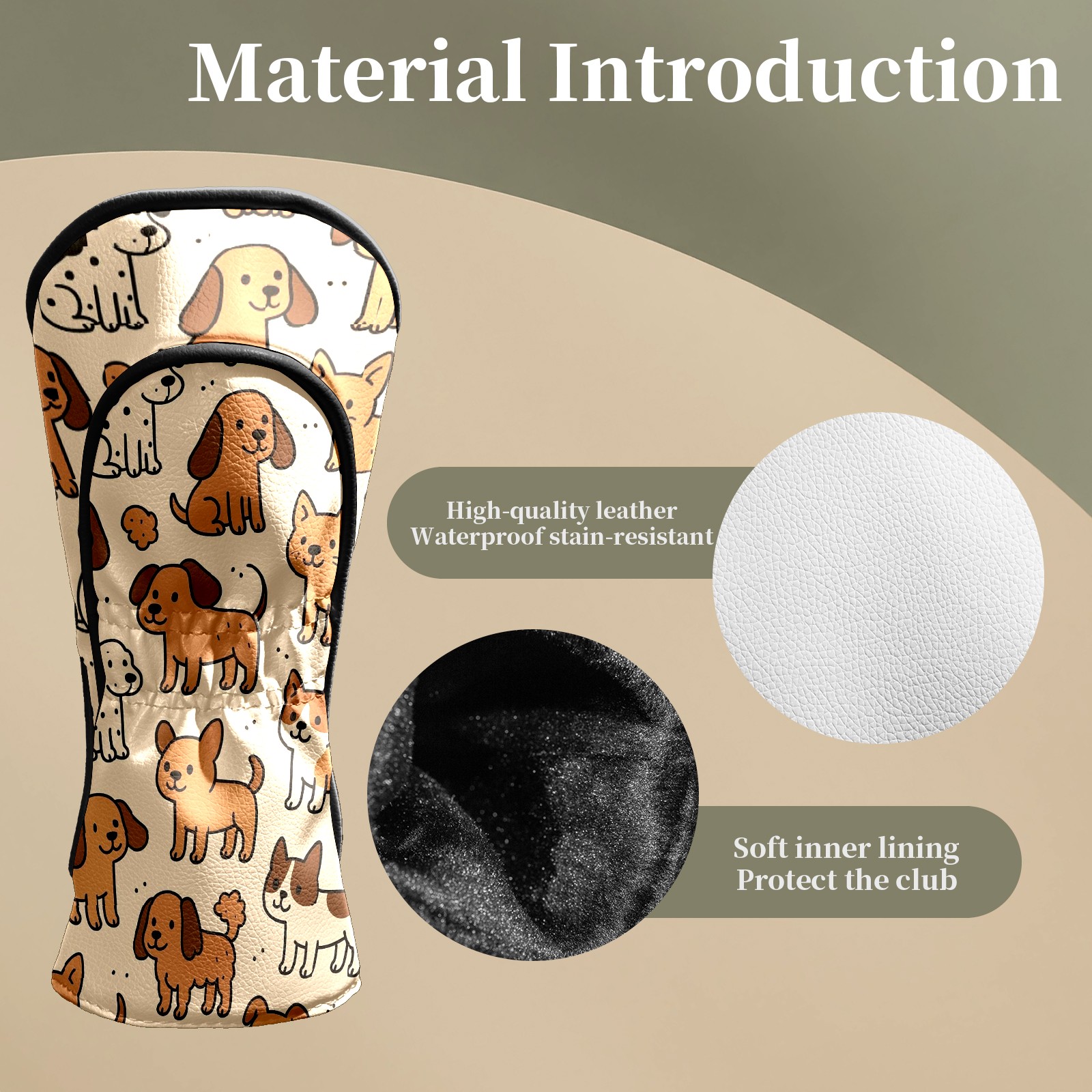 Golf Club Head Covers Cute Dog Beige-Brown Premium Plush Velvet Lining, Waterproof Golf Headcovers Driver & Fairway Woods for Scratch Protection Novelty Gift for Men & Women