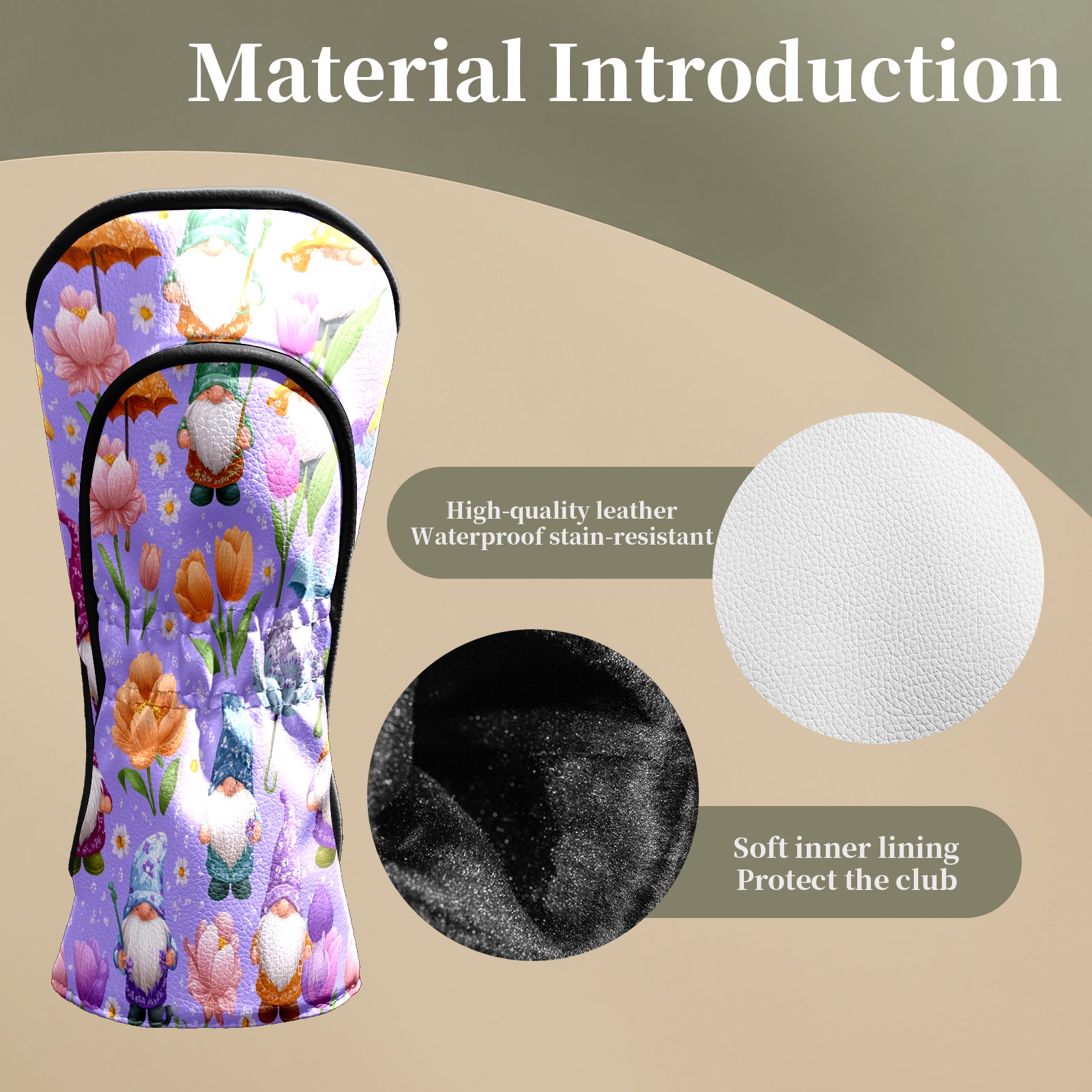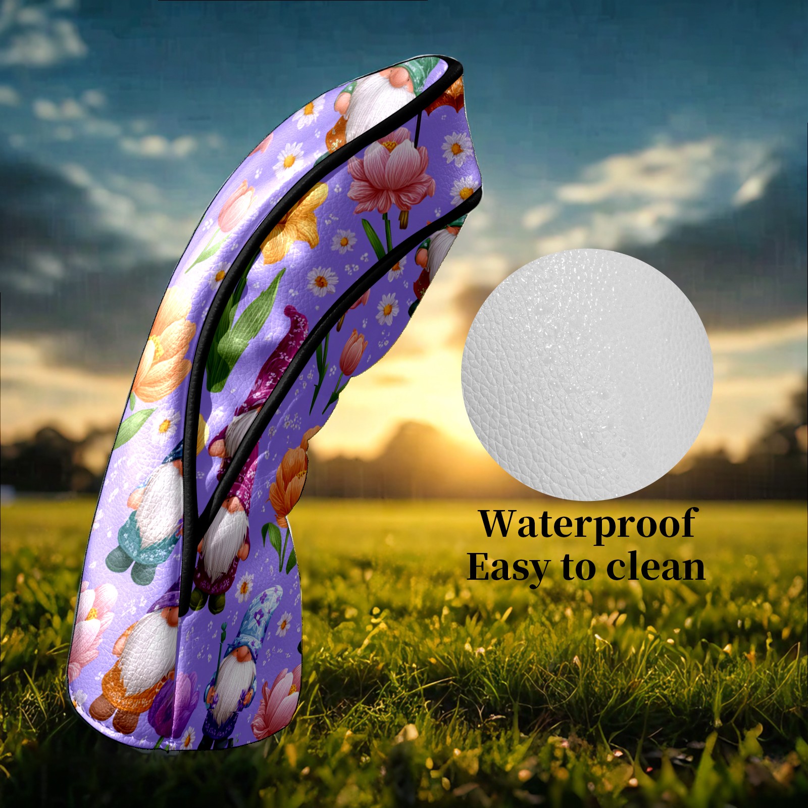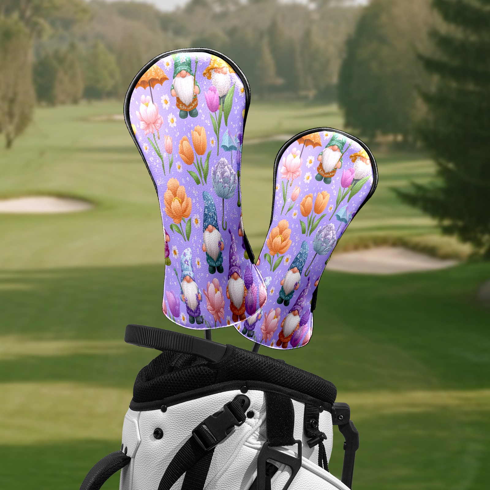 Golf Club Head Covers Romantic Gnome Purple Premium Plush Velvet Lining, Waterproof Golf Headcovers Driver & Fairway Woods for Scratch Protection Novelty Gift for Men & Women
