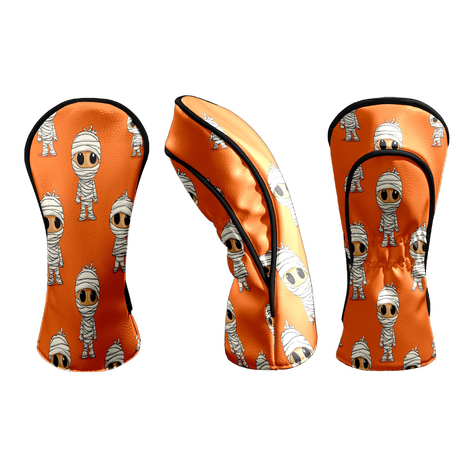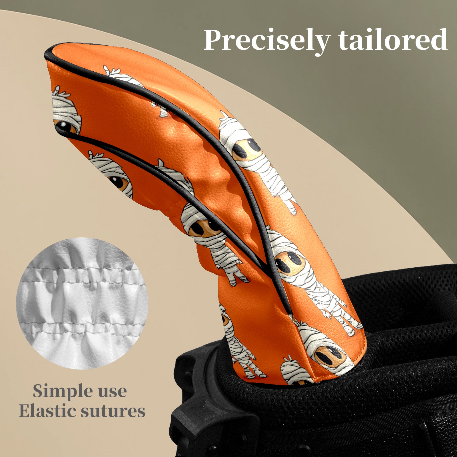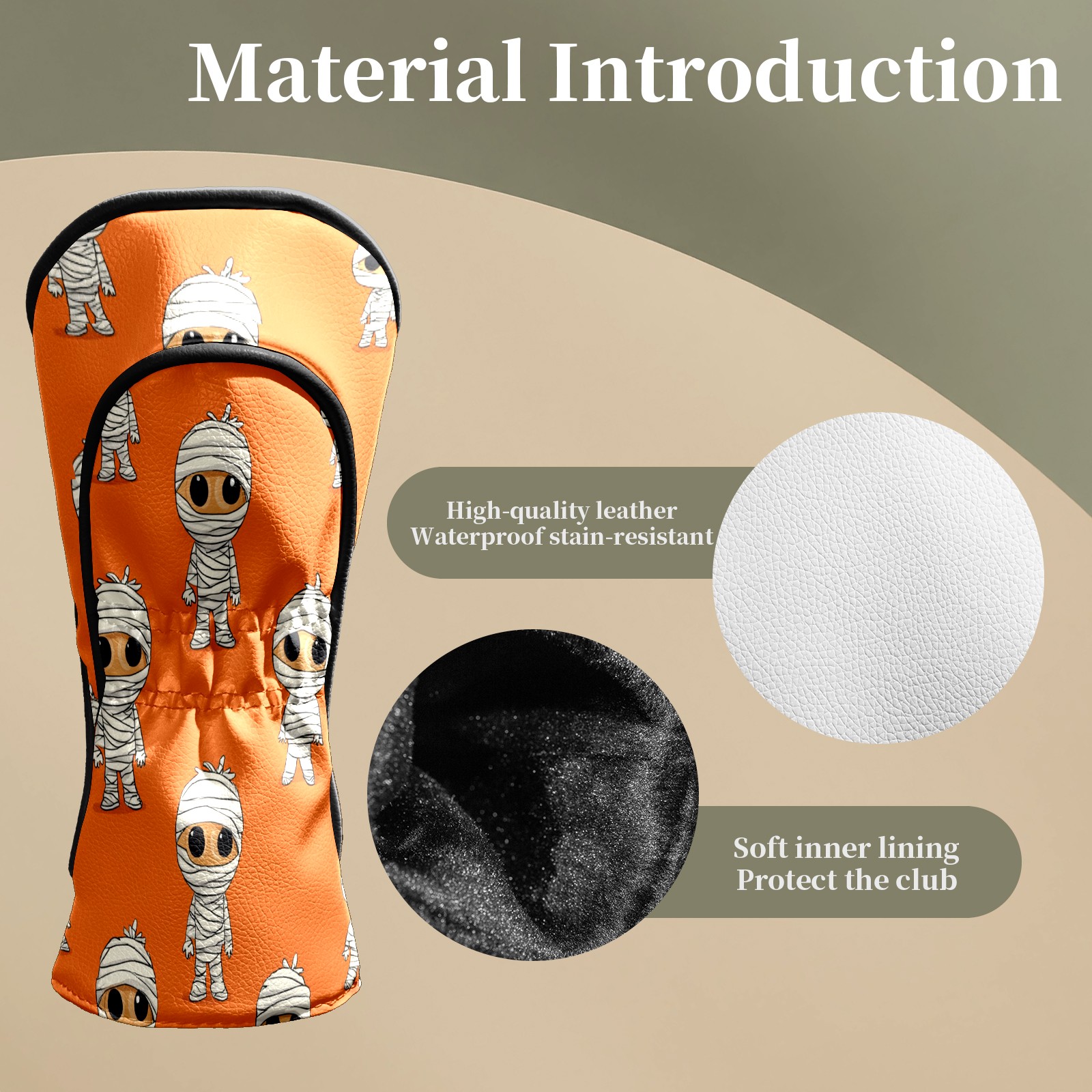 Golf Club Head Covers Funny Mummy Orange Premium Plush Velvet Lining, Waterproof Golf Headcovers Driver & Fairway Woods for Scratch Protection Novelty Gift for Men & Women
