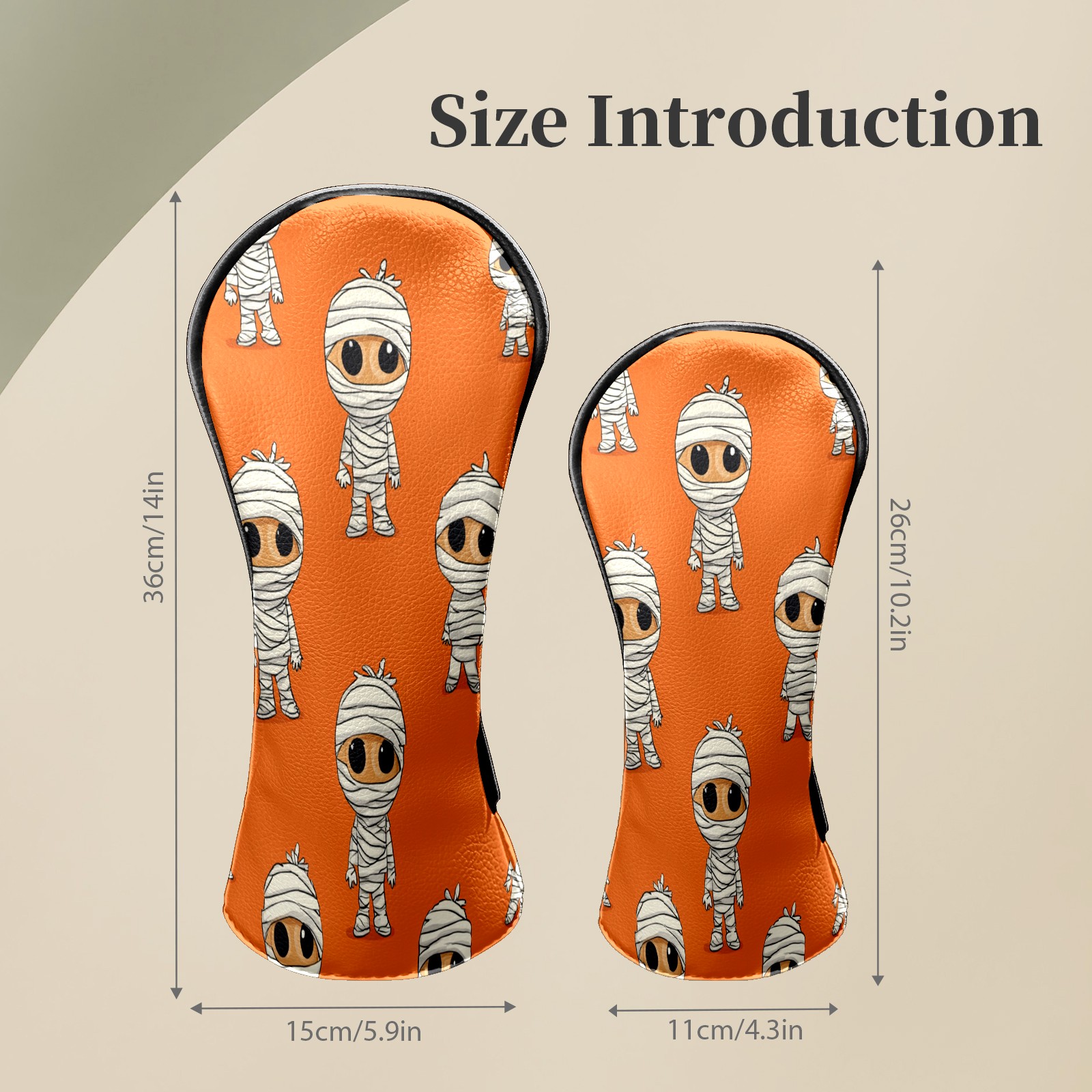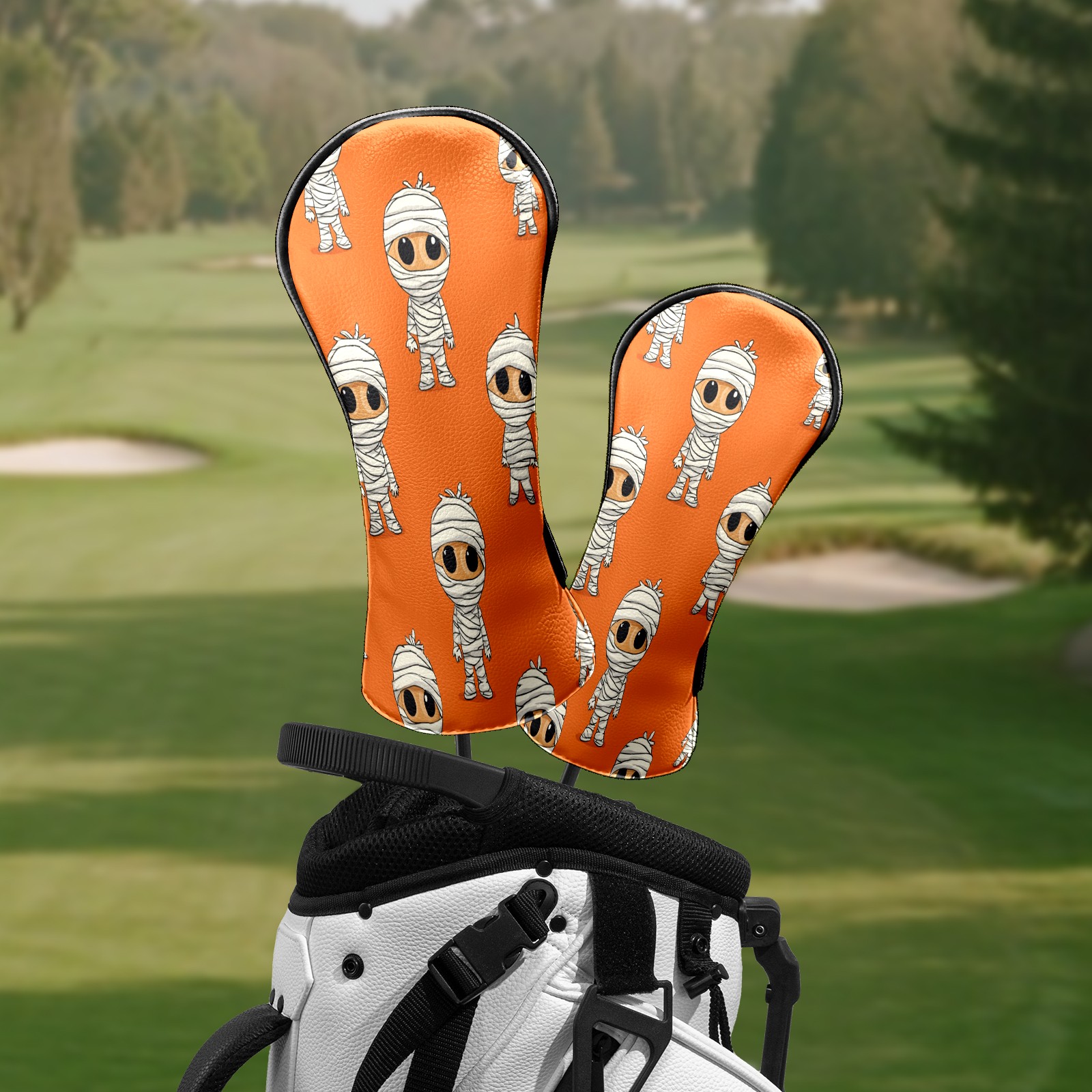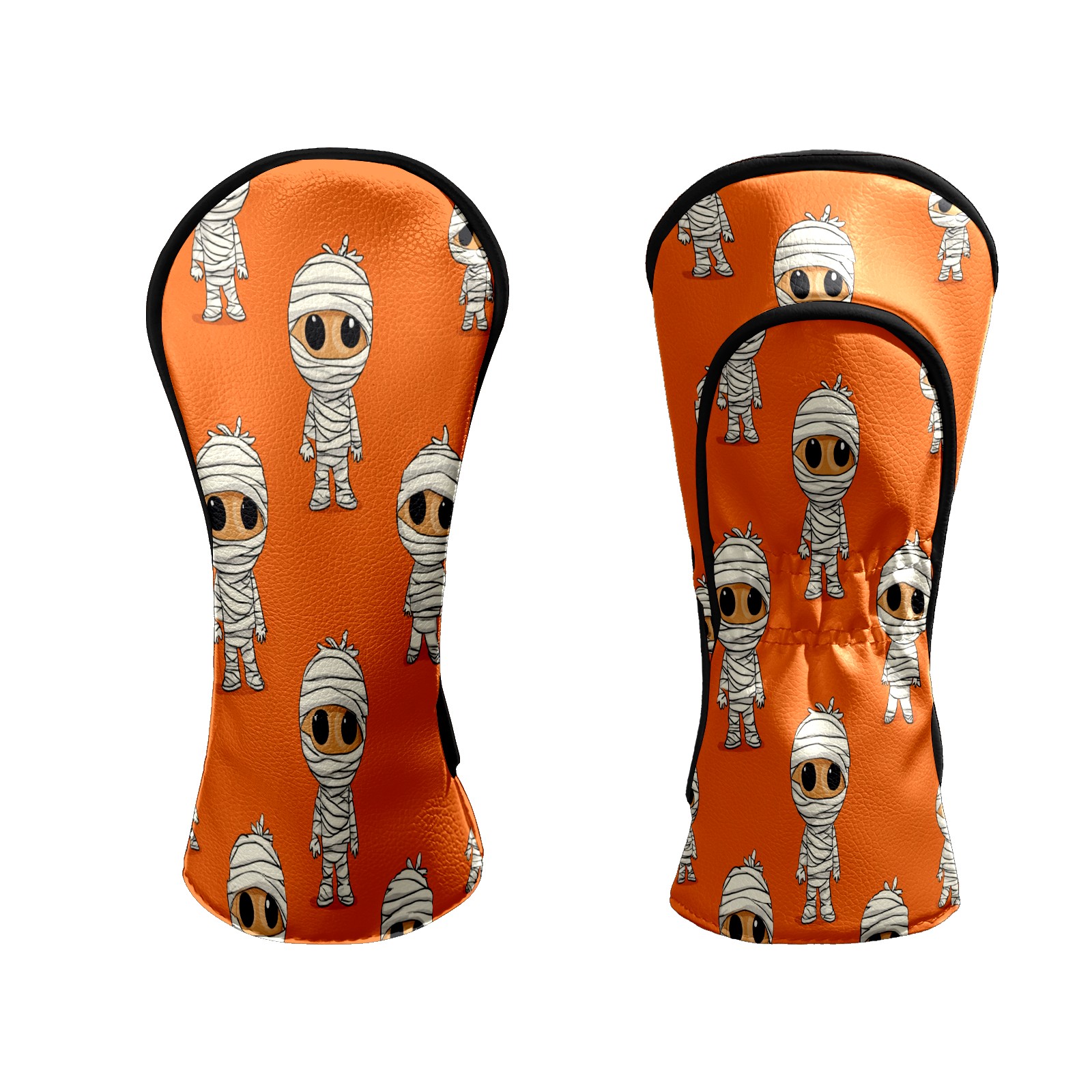 Golf Club Head Covers Funny Mummy Orange Premium Plush Velvet Lining, Waterproof Golf Headcovers Driver & Fairway Woods for Scratch Protection Novelty Gift for Men & Women