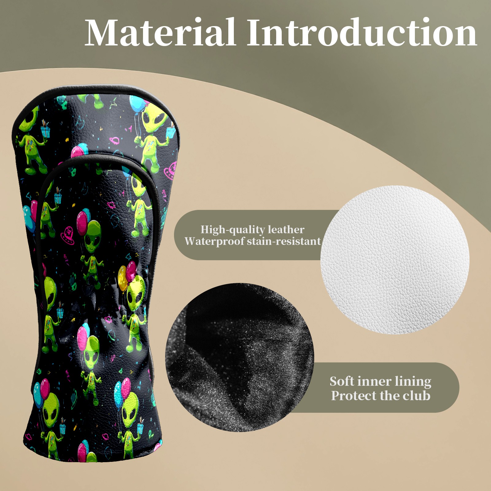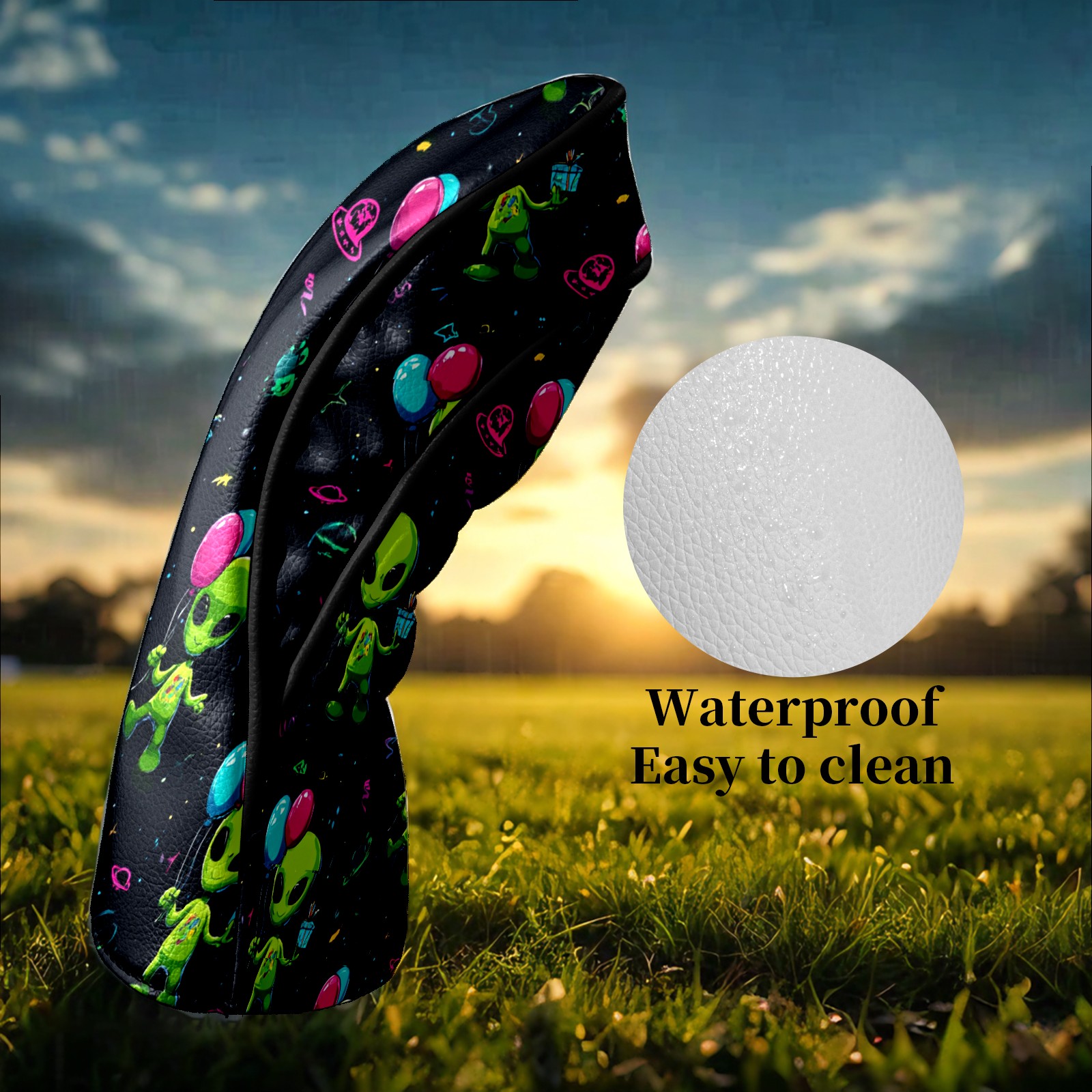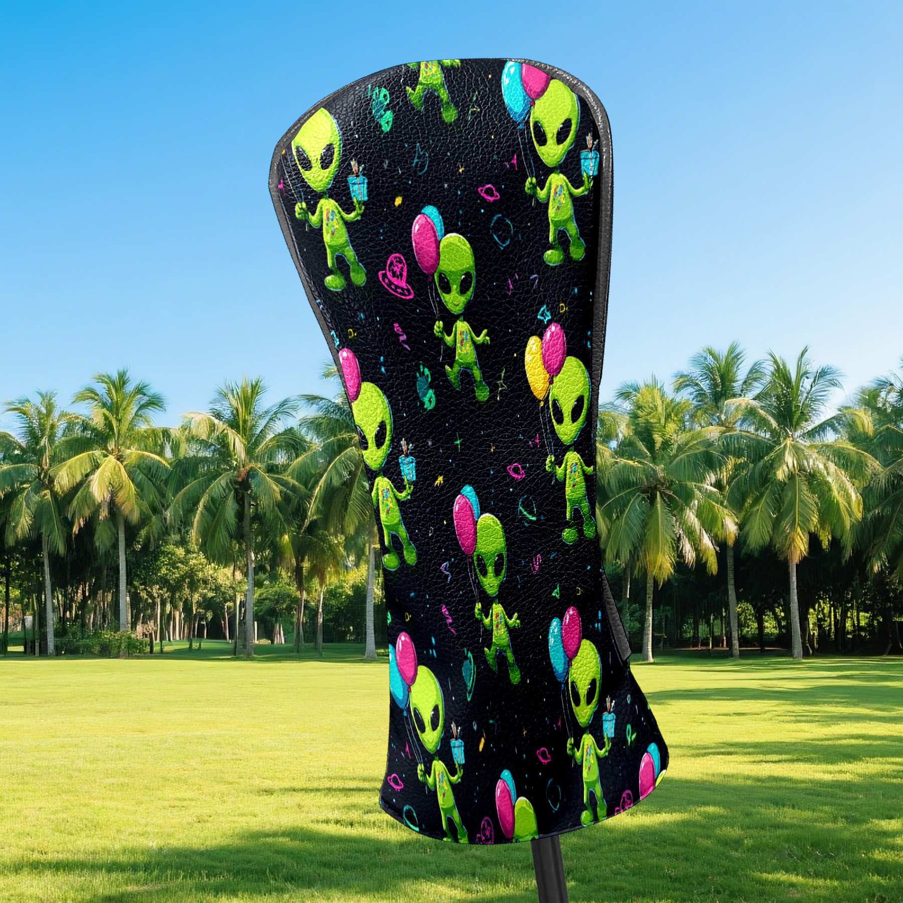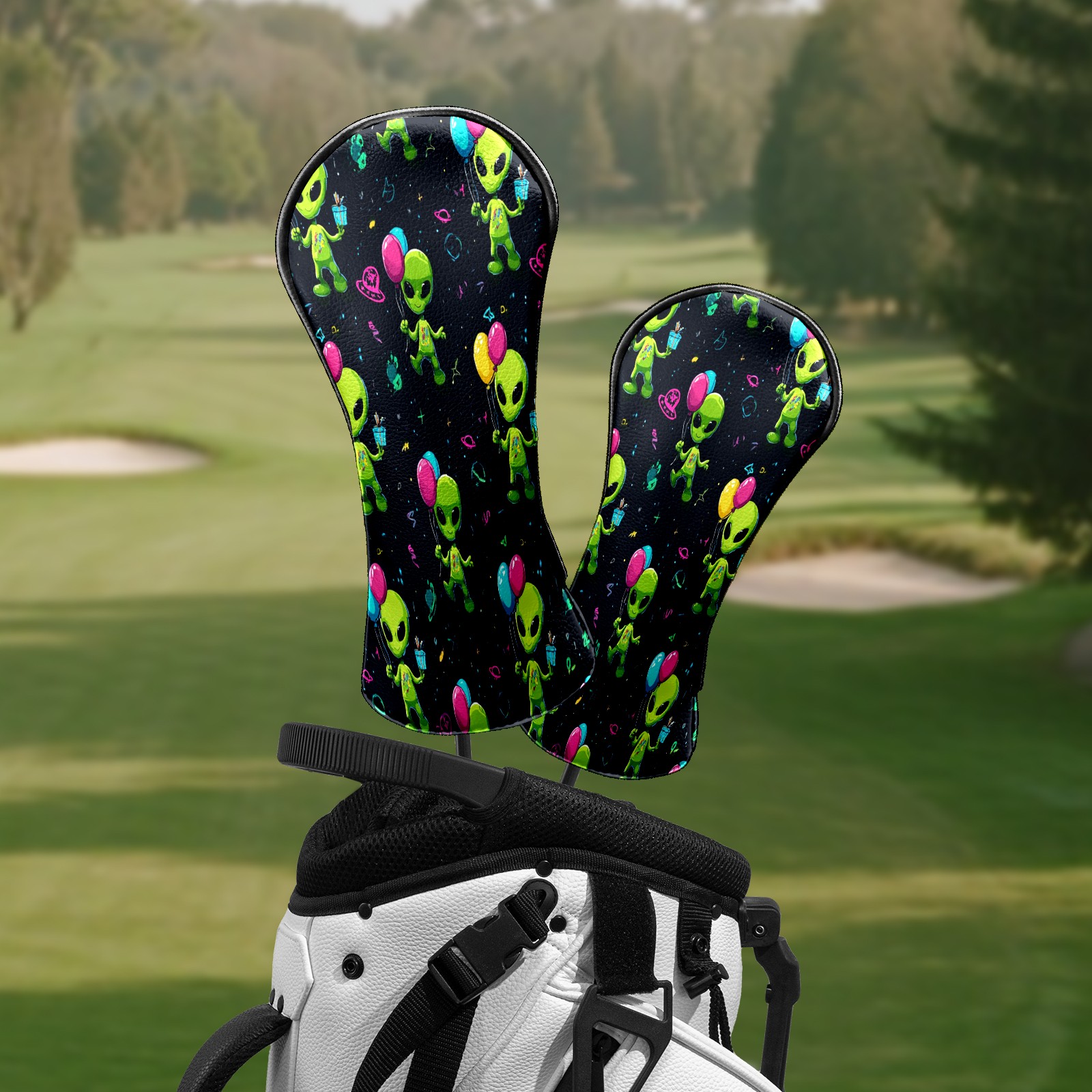 Golf Club Head Covers Lively Alien Black Premium Plush Velvet Lining, Waterproof Golf Headcovers Driver & Fairway Woods for Scratch Protection Novelty Gift for Men & Women