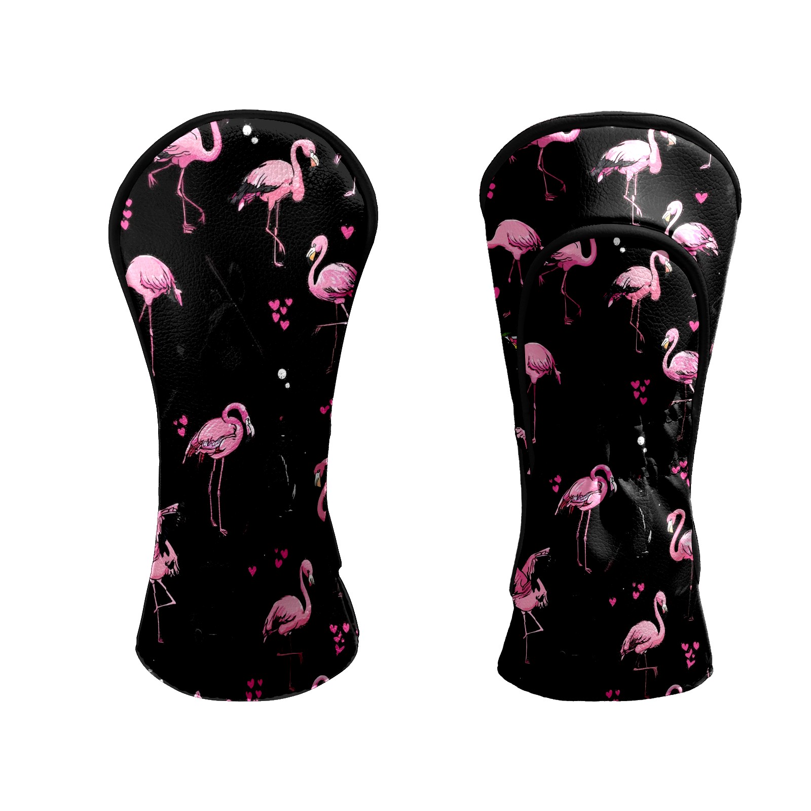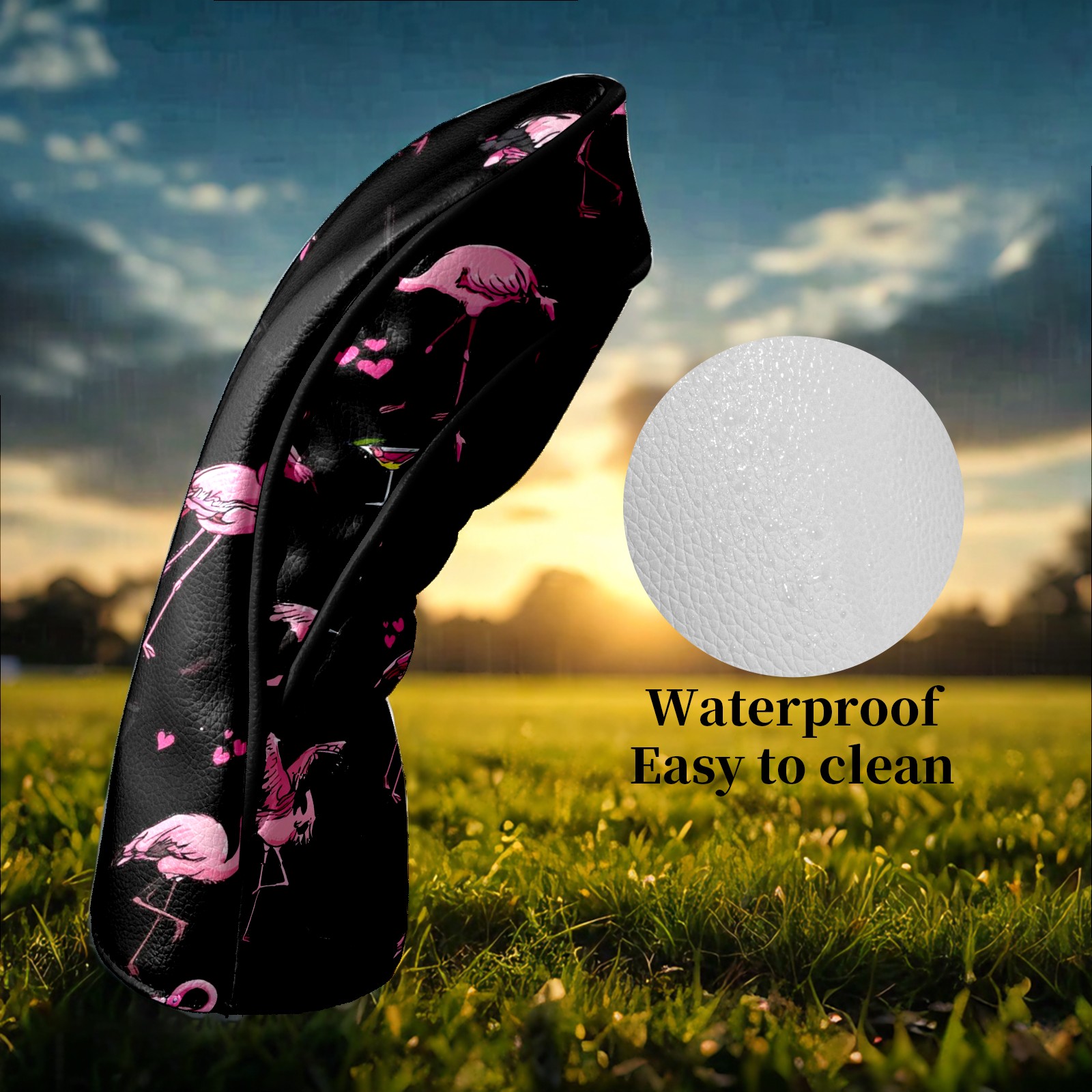 Golf Club Head Covers Mysterious Flamingo Black Premium Plush Velvet Lining, Waterproof Golf Headcovers Driver & Fairway Woods for Scratch Protection Novelty Gift for Men & Women