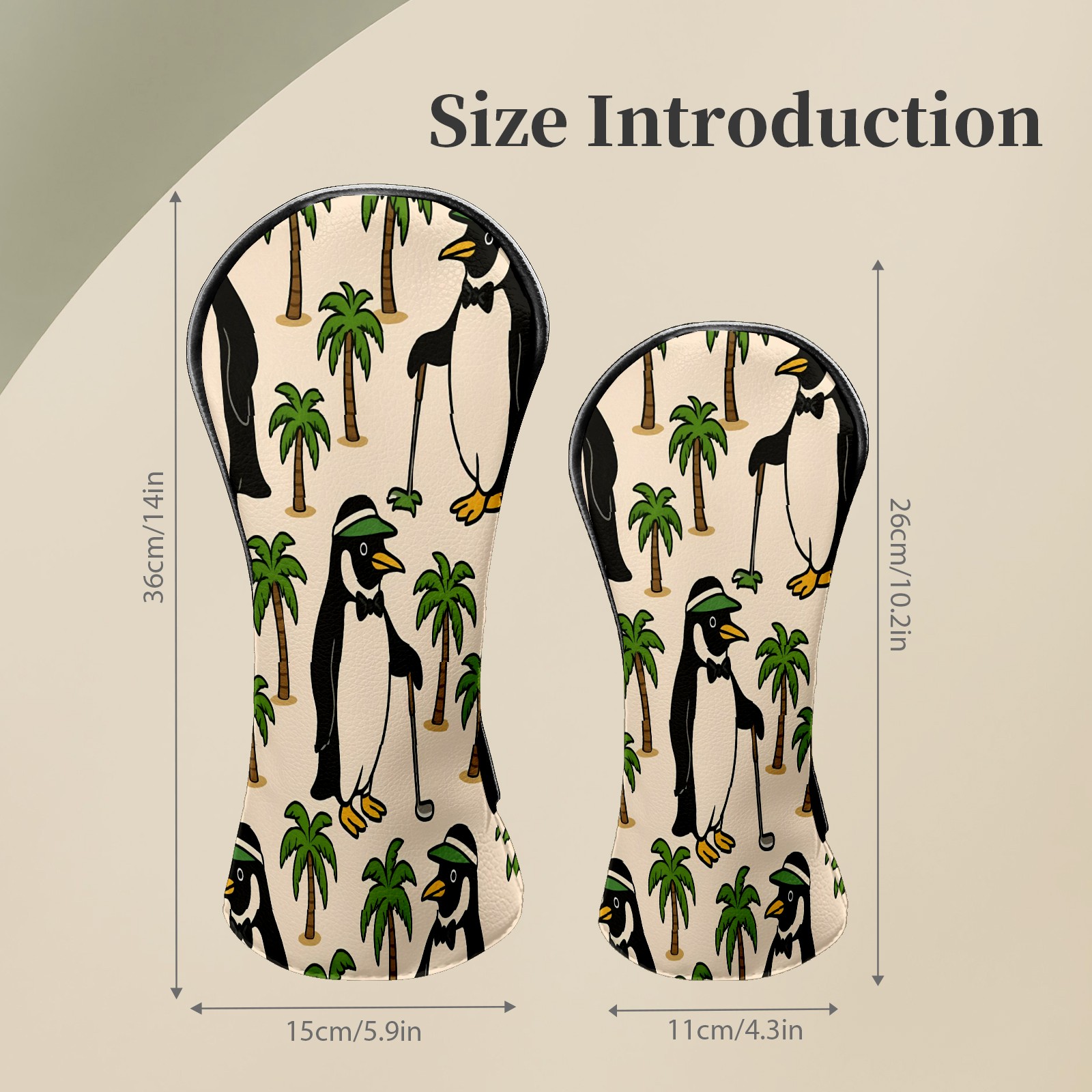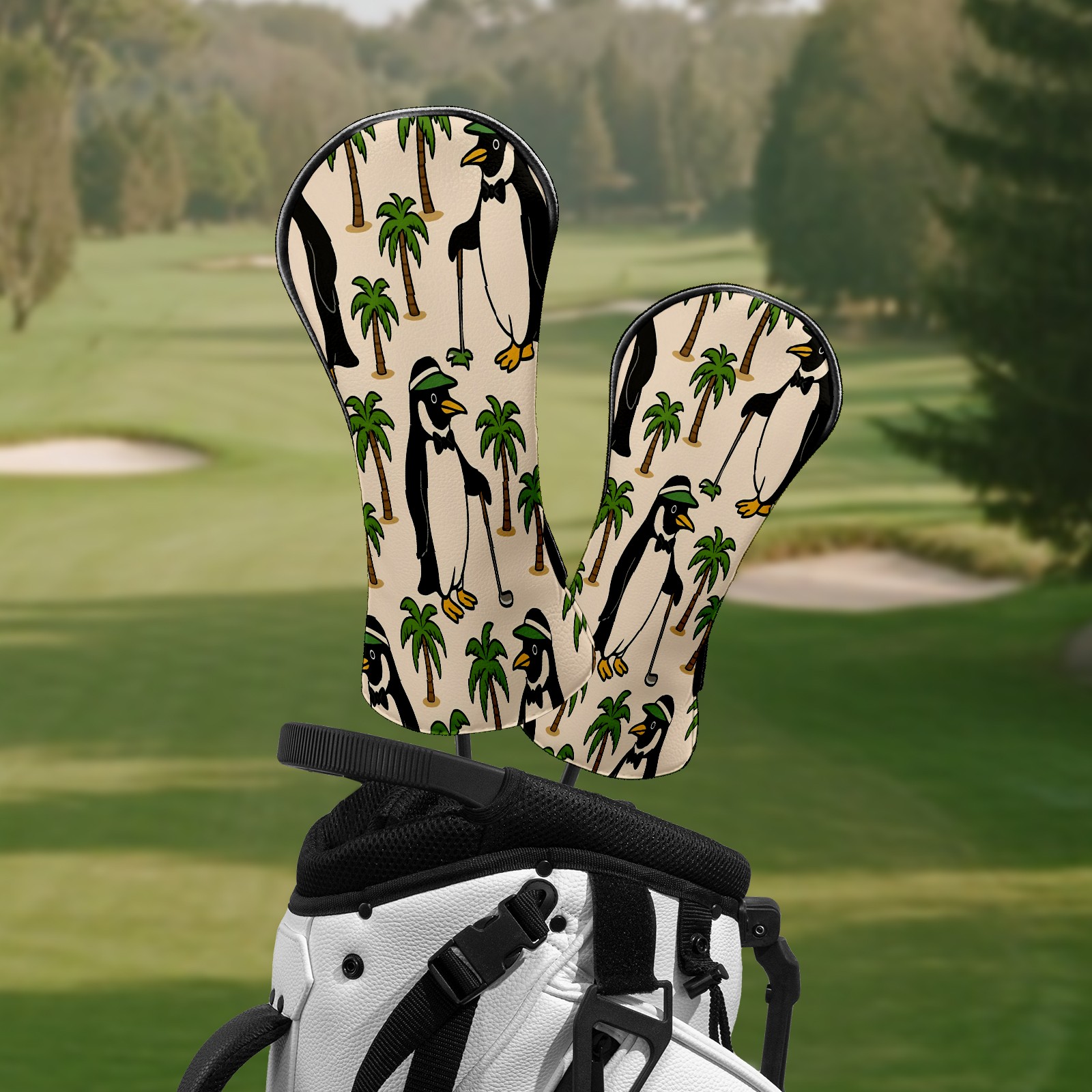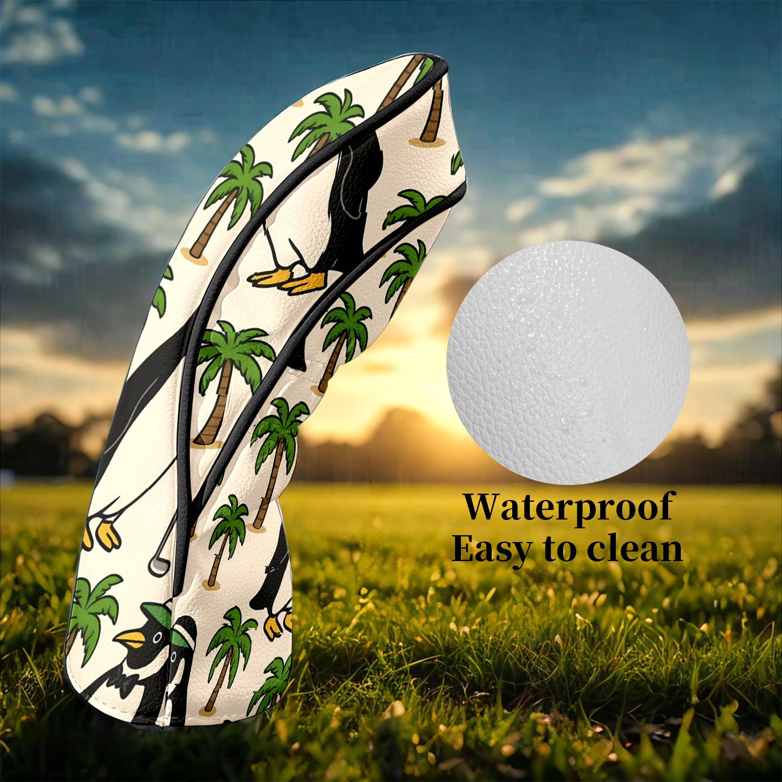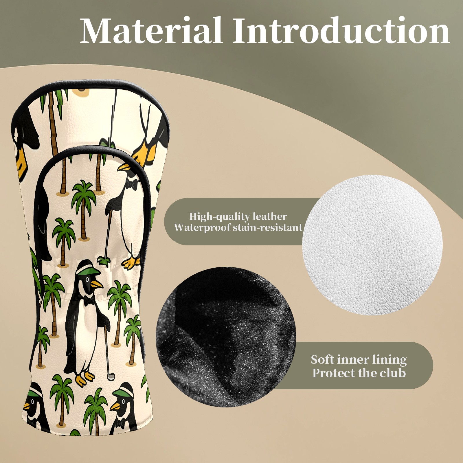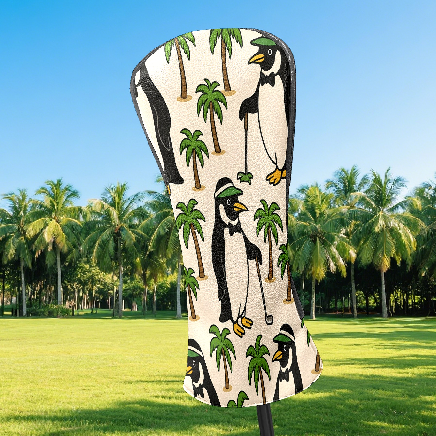 Golf Club Head Covers Tropical Penguin Brown Premium Plush Velvet Lining, Waterproof Golf Headcovers Driver & Fairway Woods for Scratch Protection Novelty Gift for Men & Women