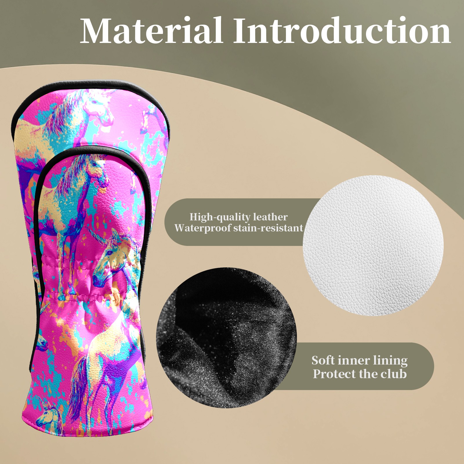 Golf Club Head Covers Vibrant Unicorn Multi Premium Plush Velvet Lining, Waterproof Golf Headcovers Driver & Fairway Woods for Scratch Protection Novelty Gift for Men & Women