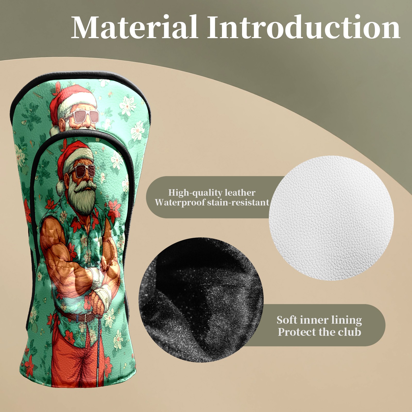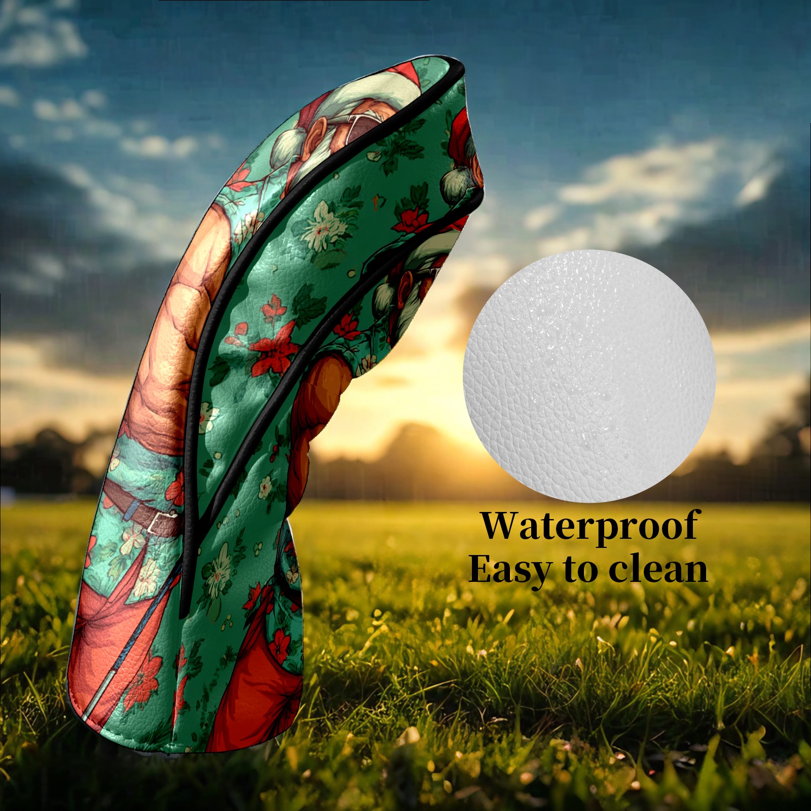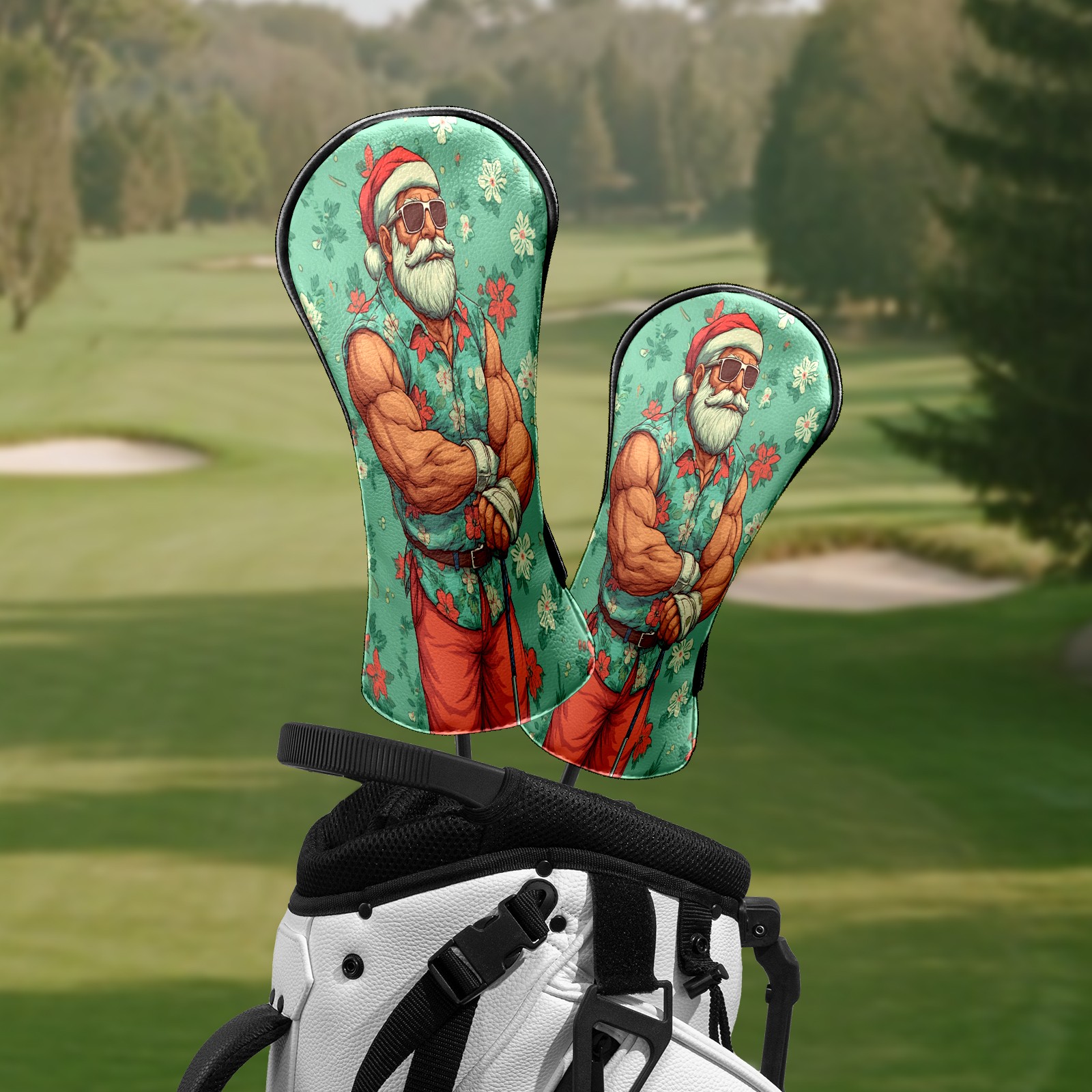 Golf Club Head Covers Fun Santa Green Premium Plush Velvet Lining, Waterproof Golf Headcovers Driver & Fairway Woods for Scratch Protection Novelty Gift for Men & Women