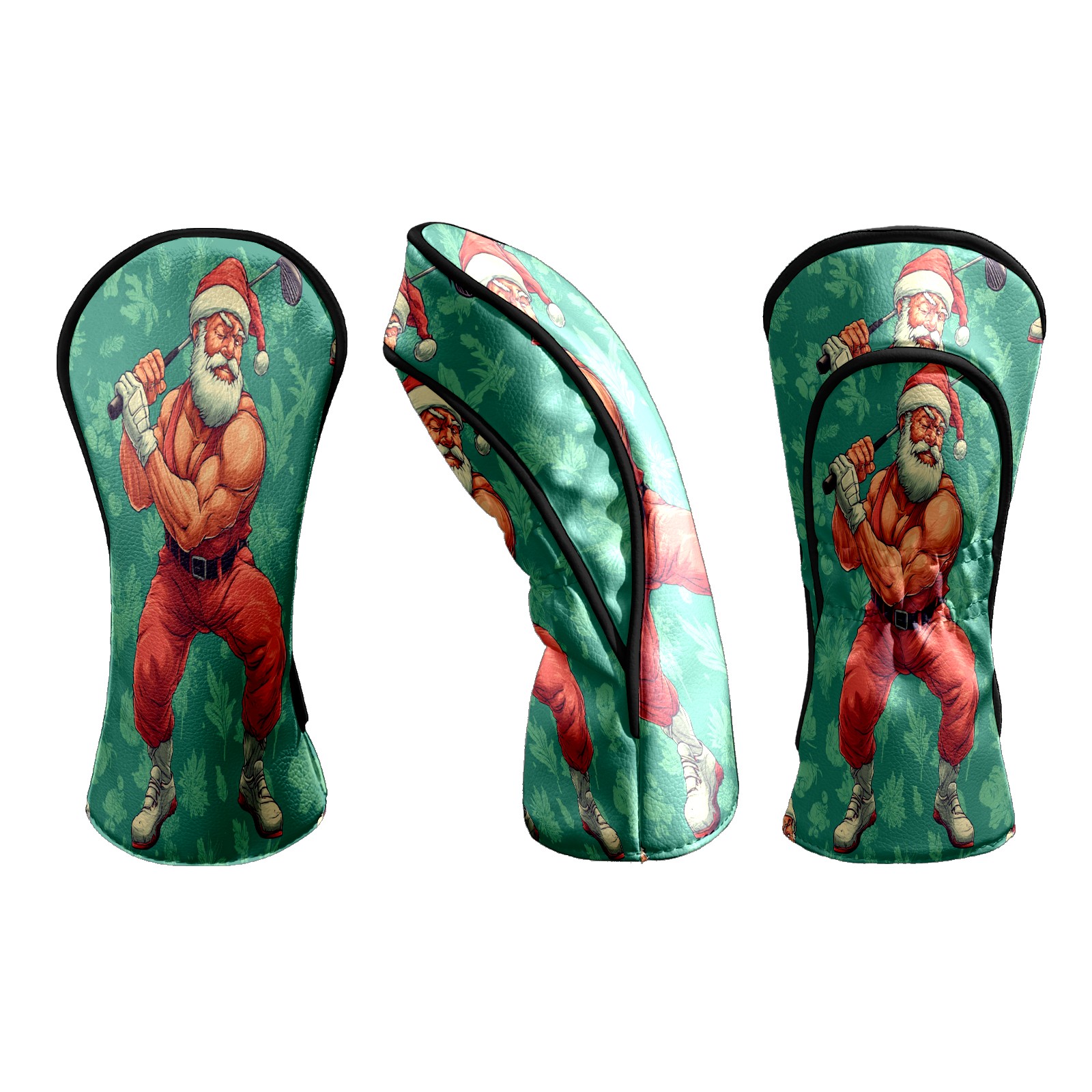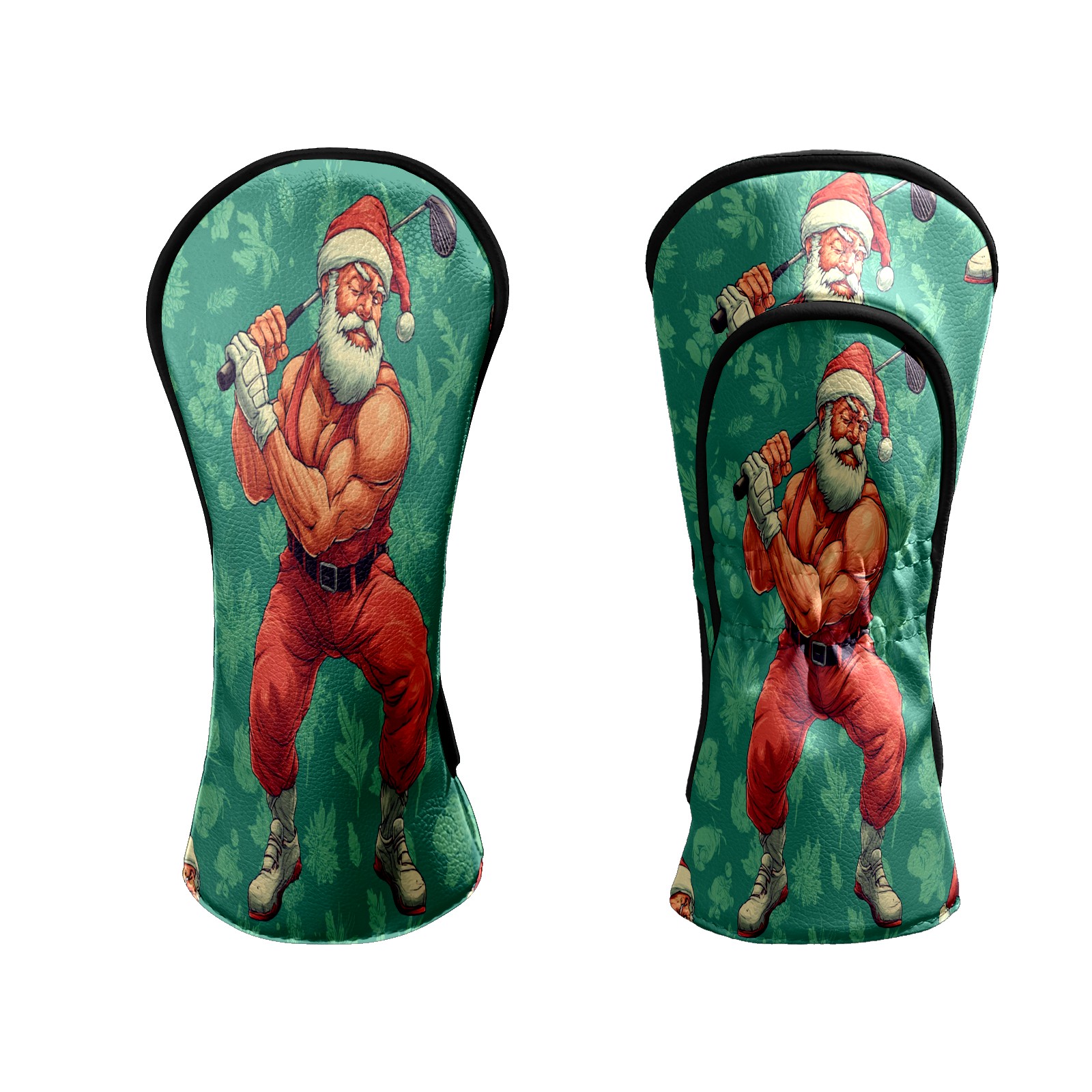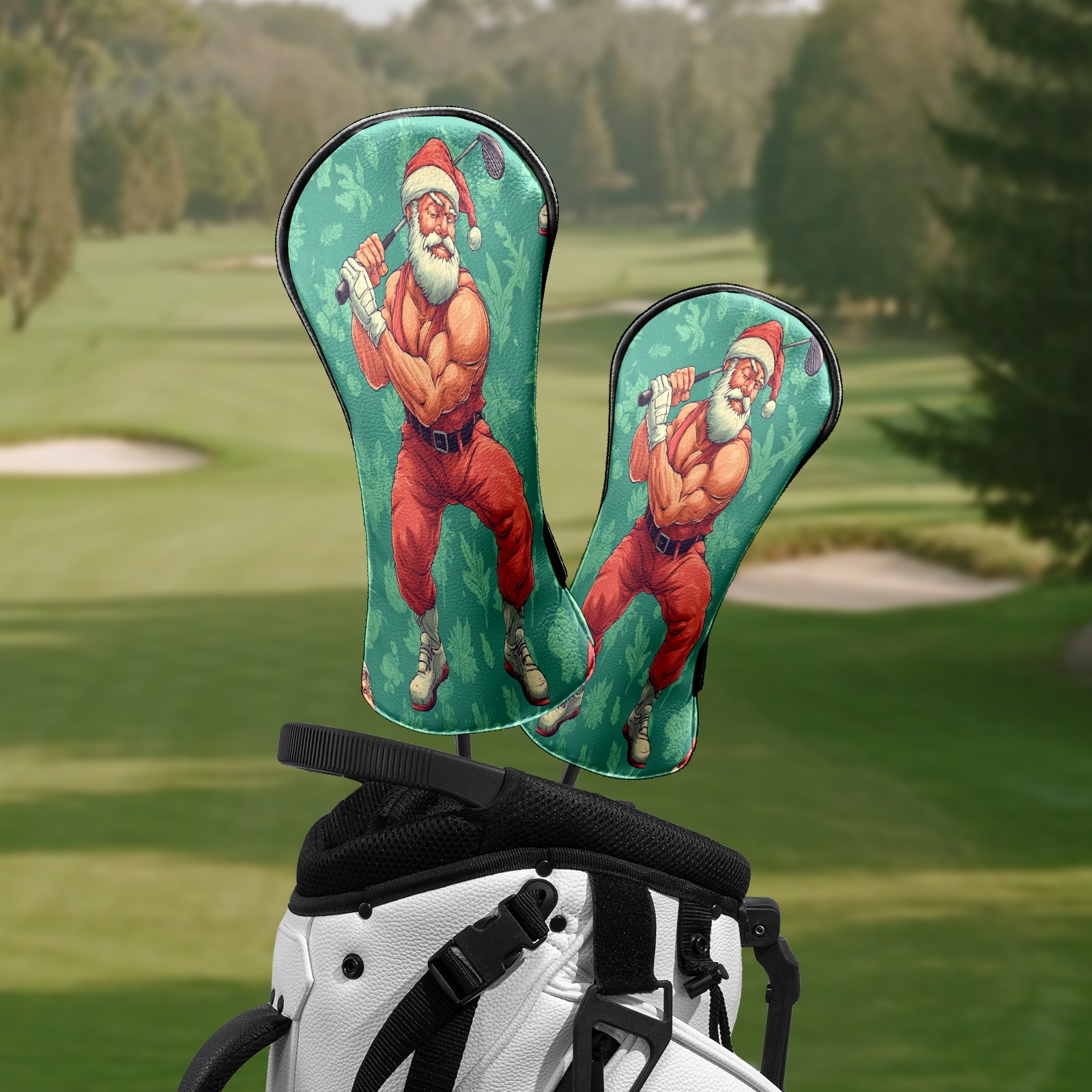 Golf Club Head Covers Funny Santa Green Premium Plush Velvet Lining, Waterproof Golf Headcovers Driver & Fairway Woods for Scratch Protection Novelty Gift for Men & Women