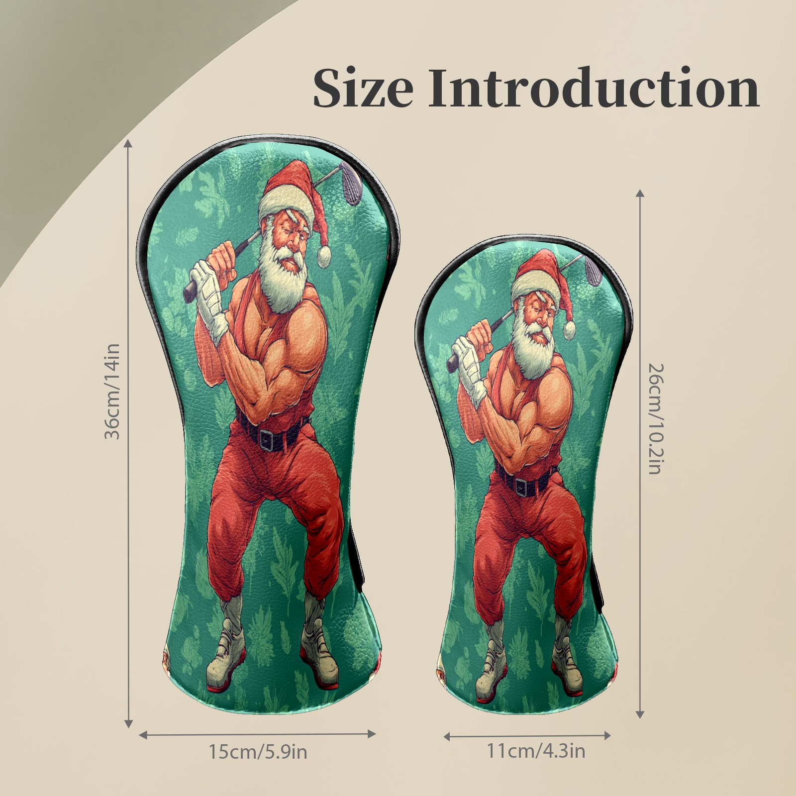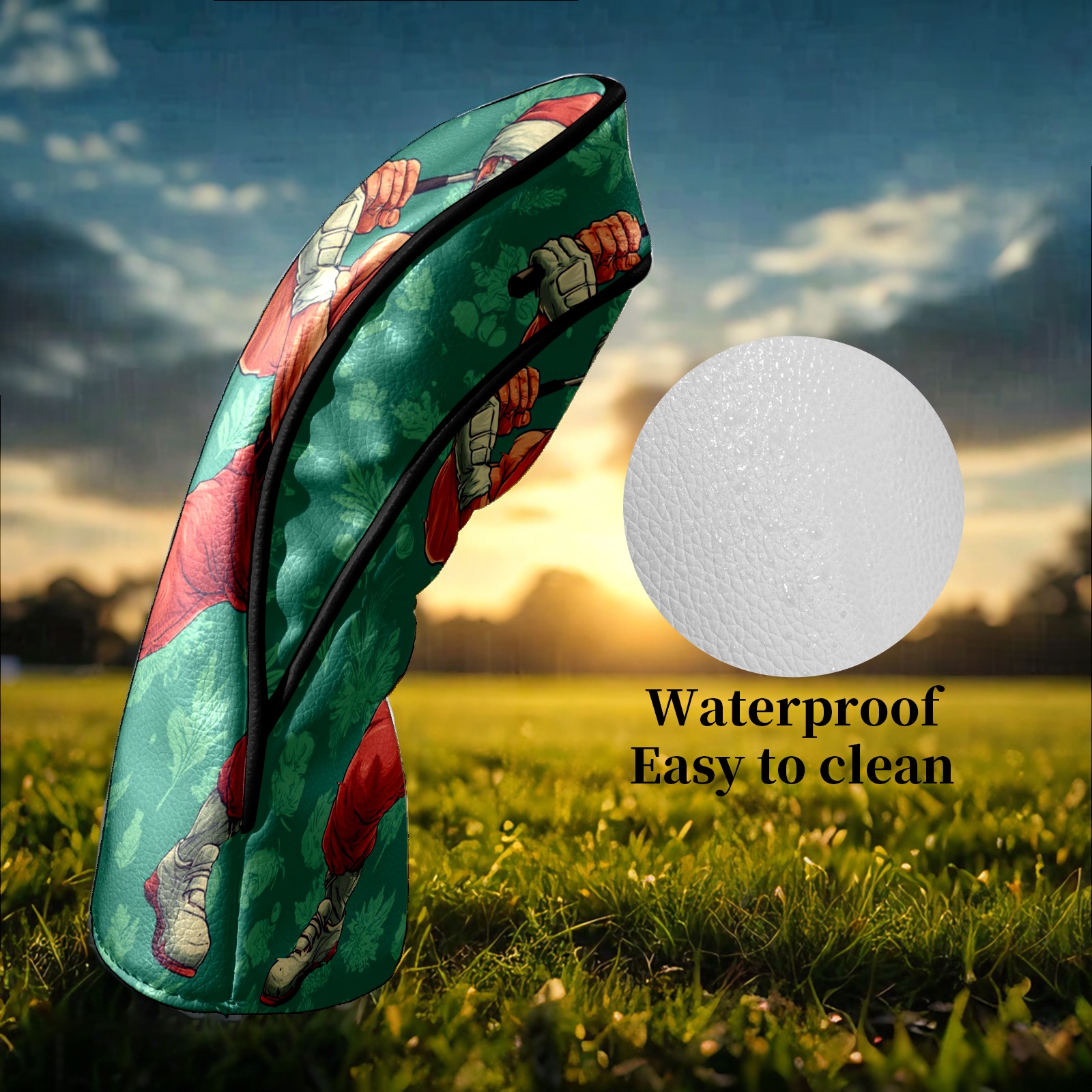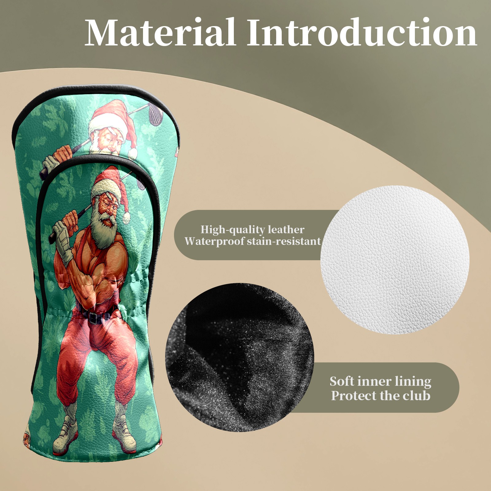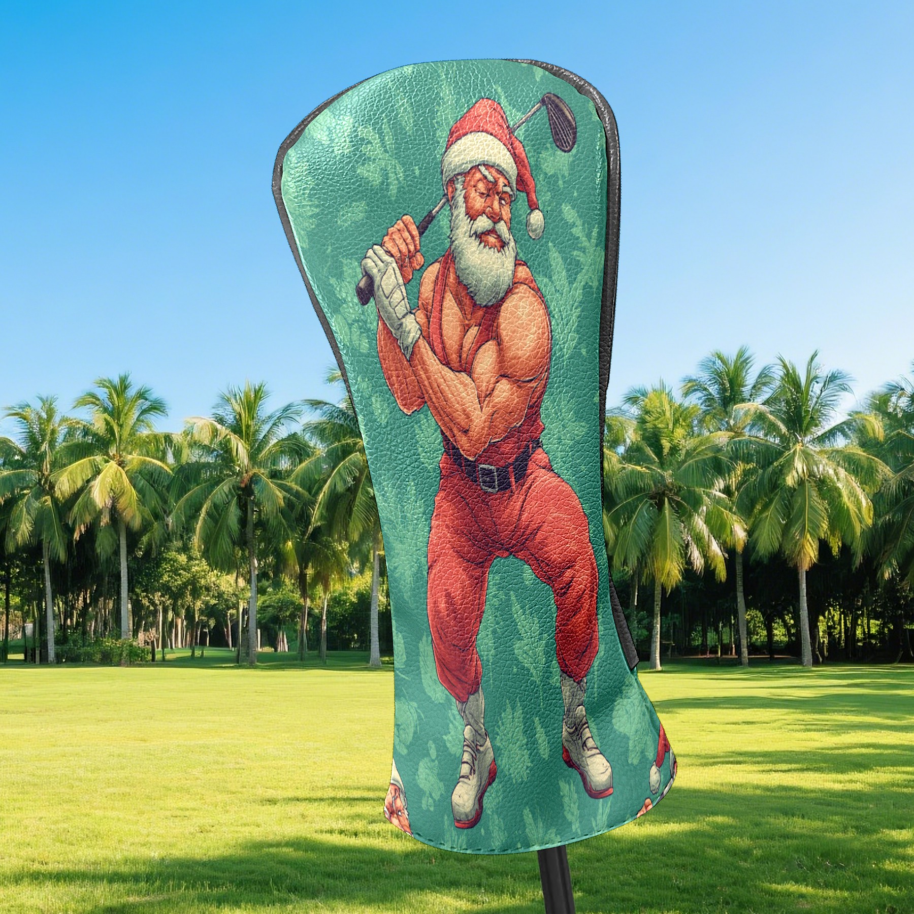 Golf Club Head Covers Funny Santa Green Premium Plush Velvet Lining, Waterproof Golf Headcovers Driver & Fairway Woods for Scratch Protection Novelty Gift for Men & Women