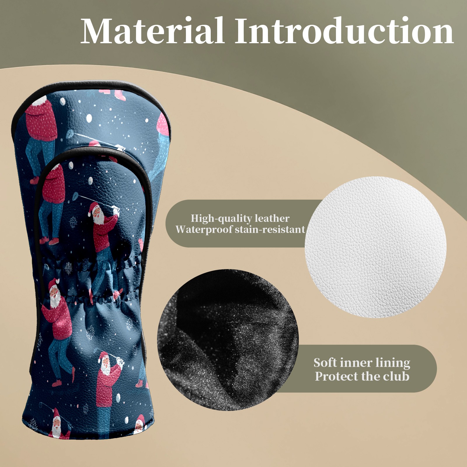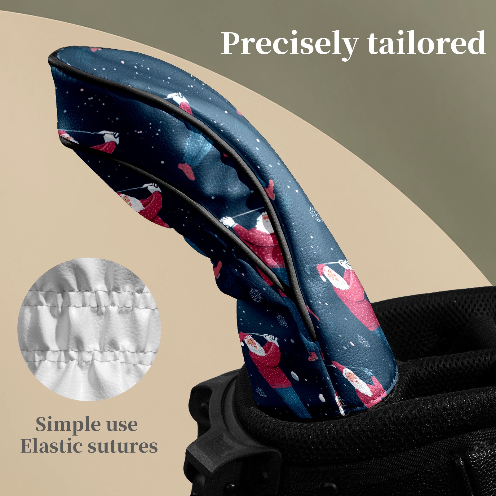 Golf Club Head Covers Cheerful Santa Blue Premium Plush Velvet Lining, Waterproof Golf Headcovers Driver & Fairway Woods for Scratch Protection Novelty Gift for Men & Women