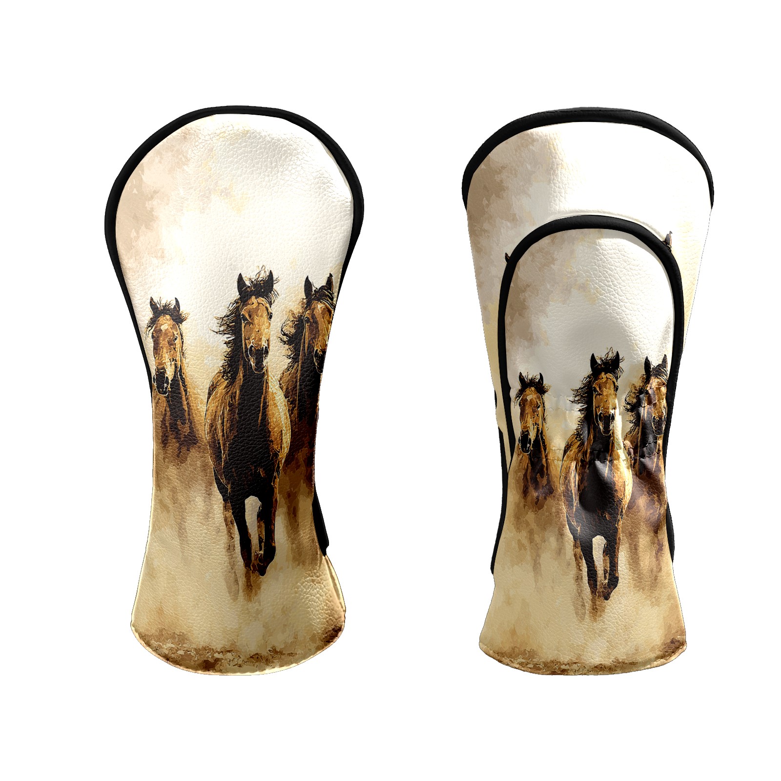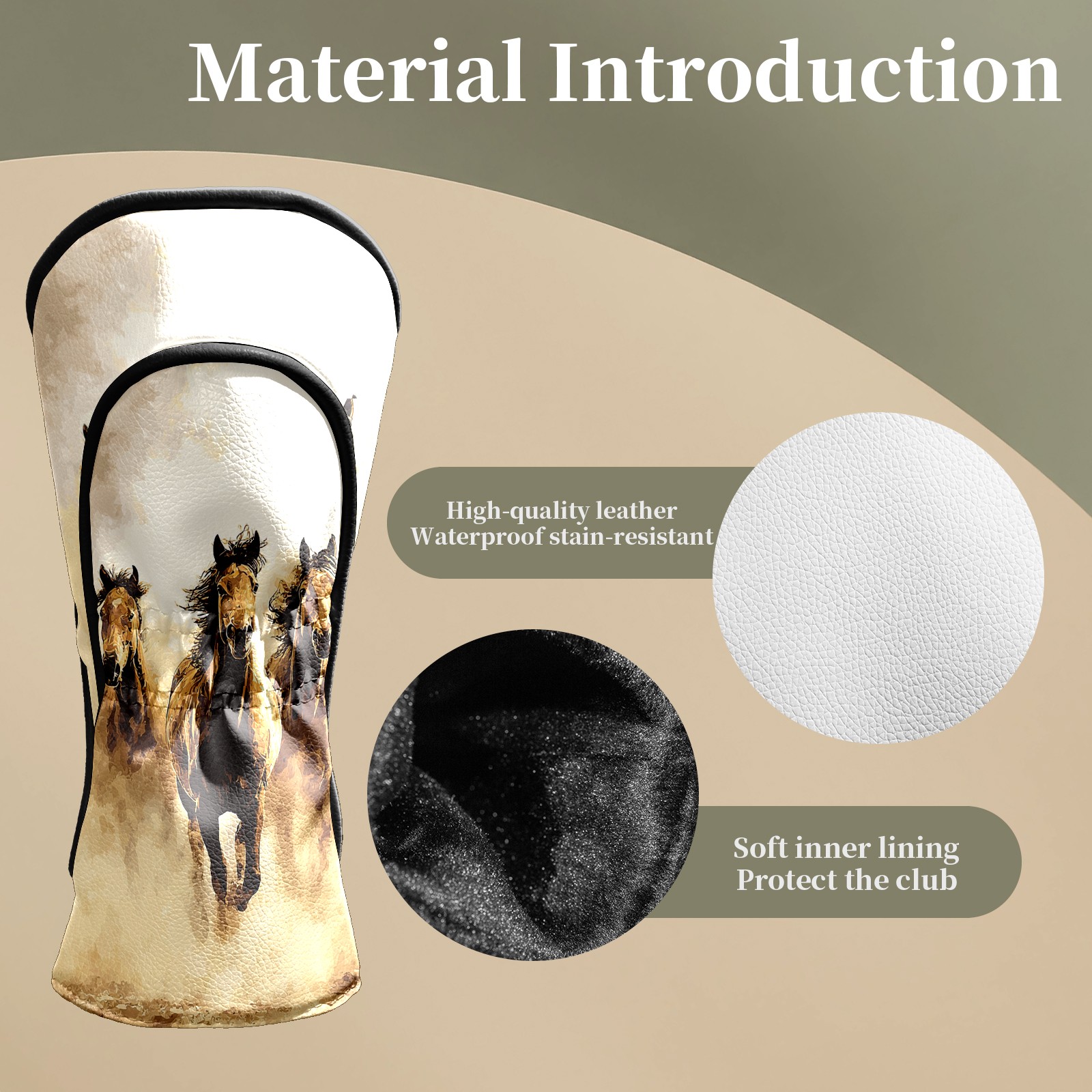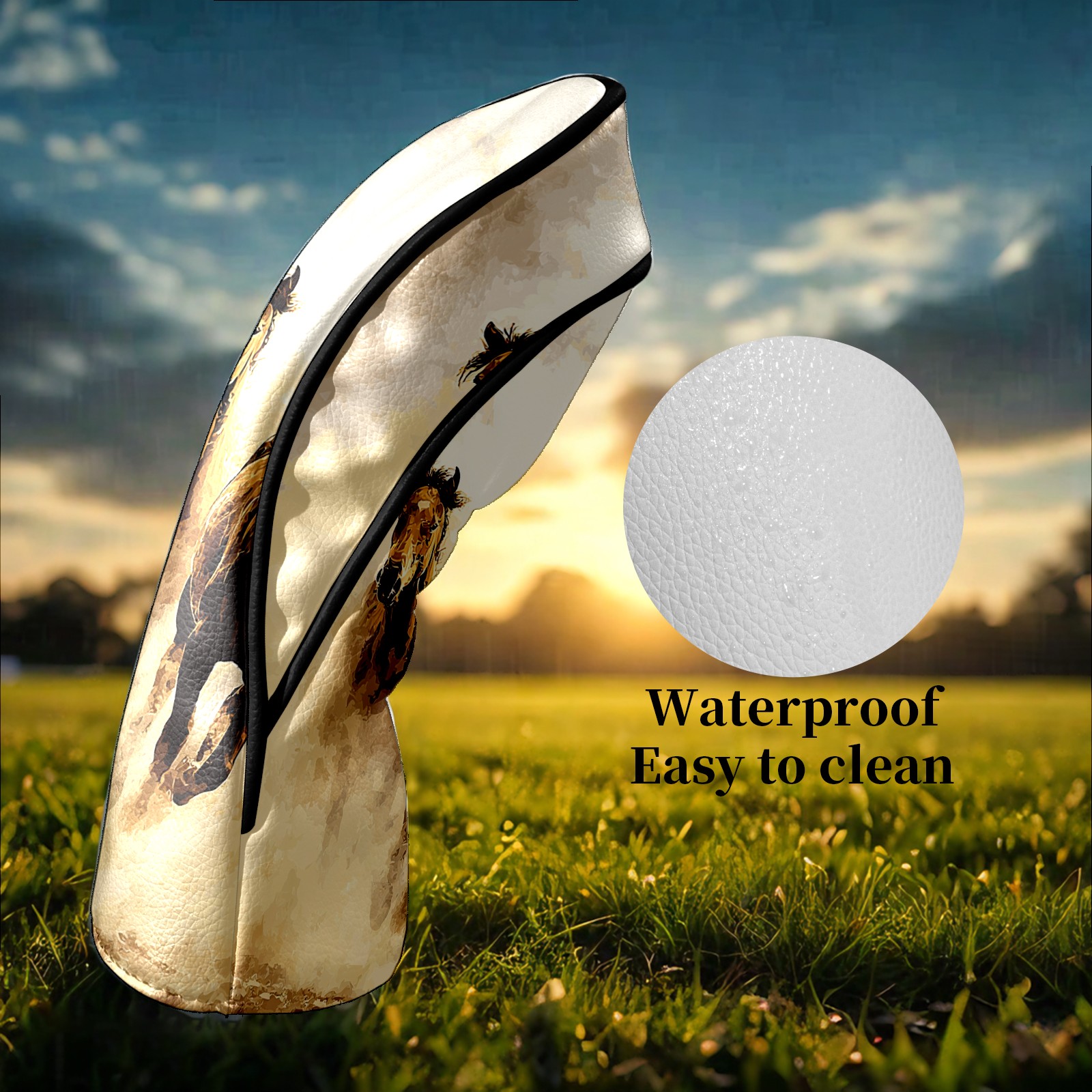 Golf Club Head Covers Chic Horse Beige Premium Plush Velvet Lining, Waterproof Golf Headcovers Driver & Fairway Woods for Scratch Protection Novelty Gift for Men & Women