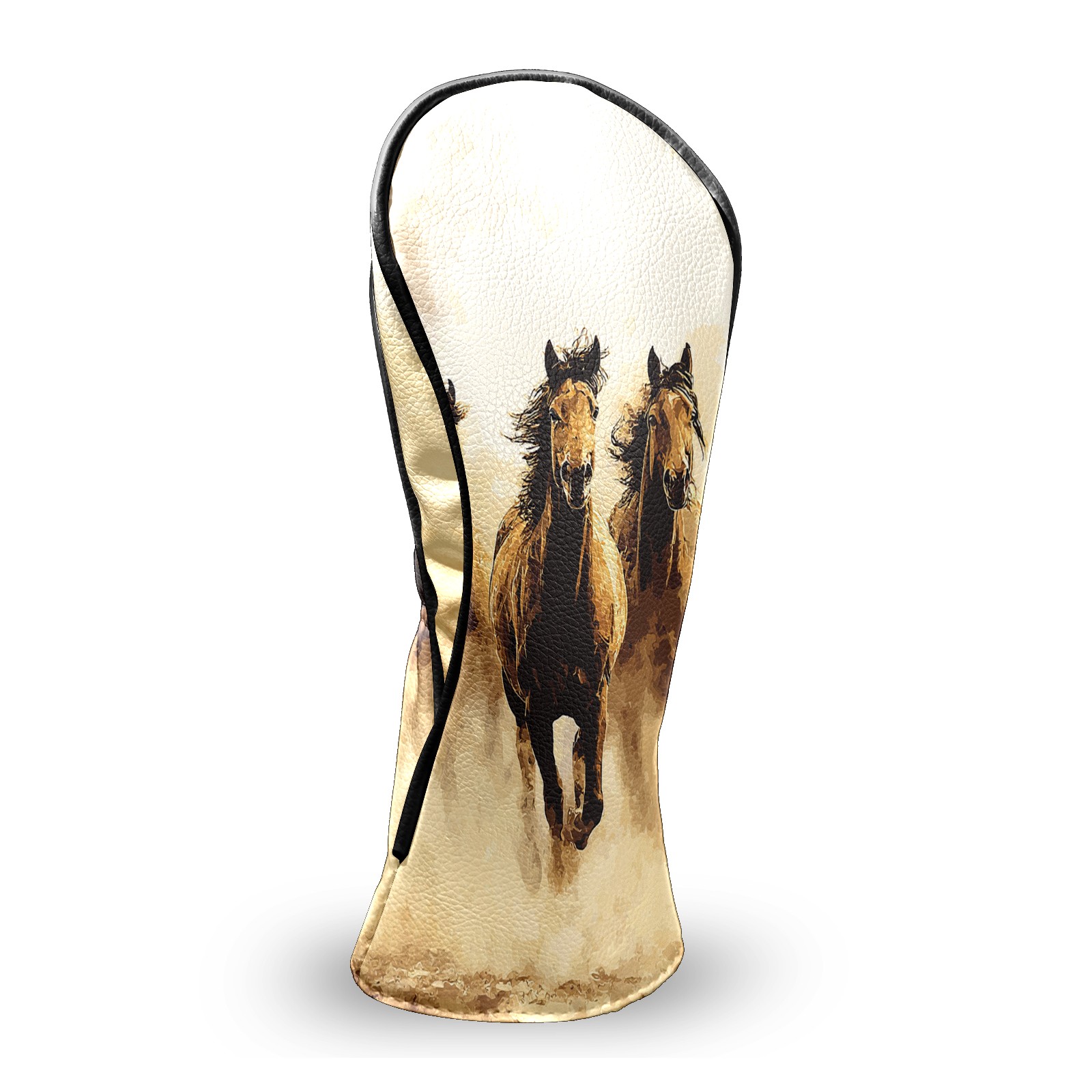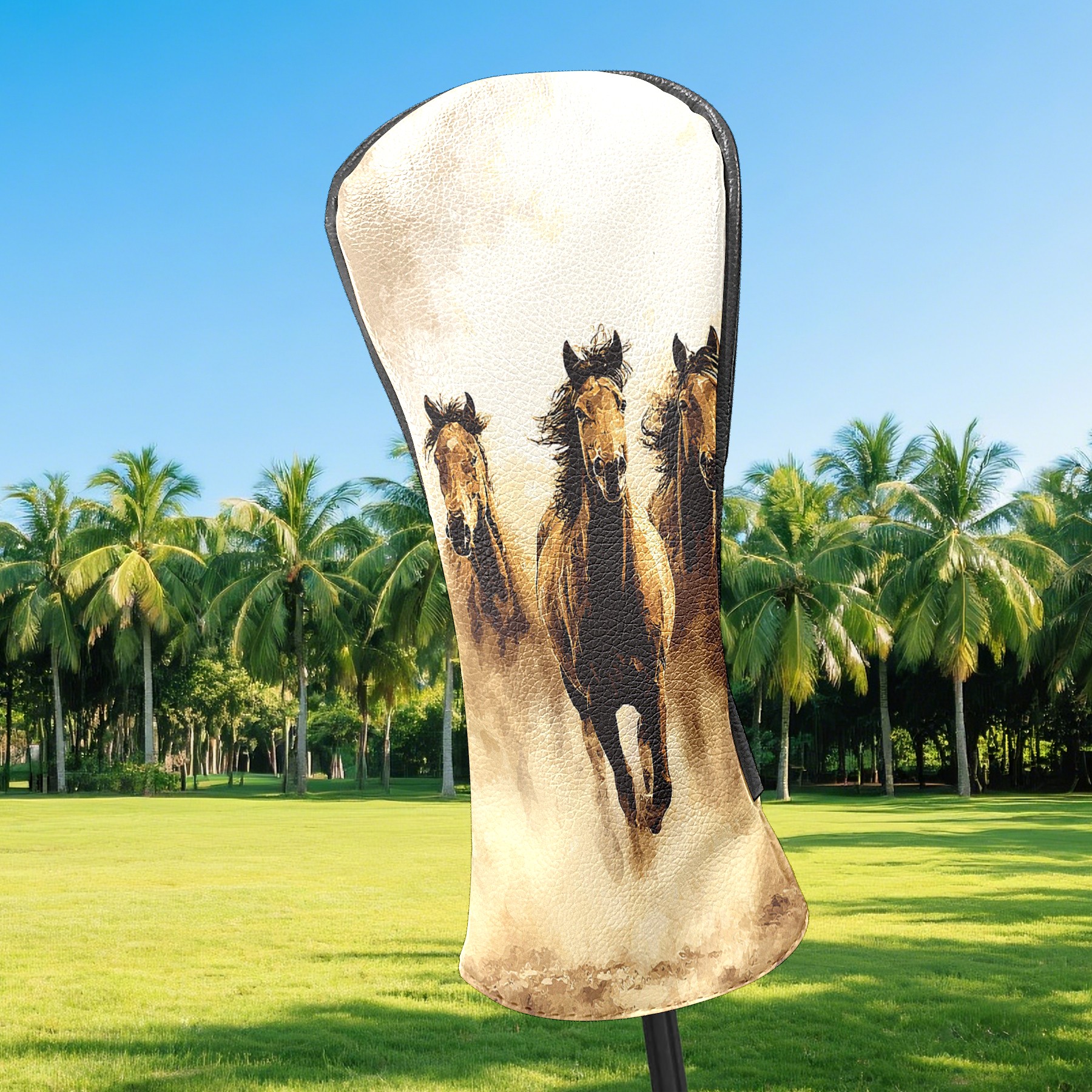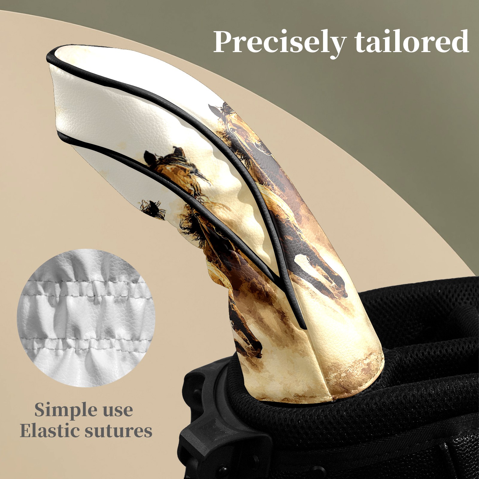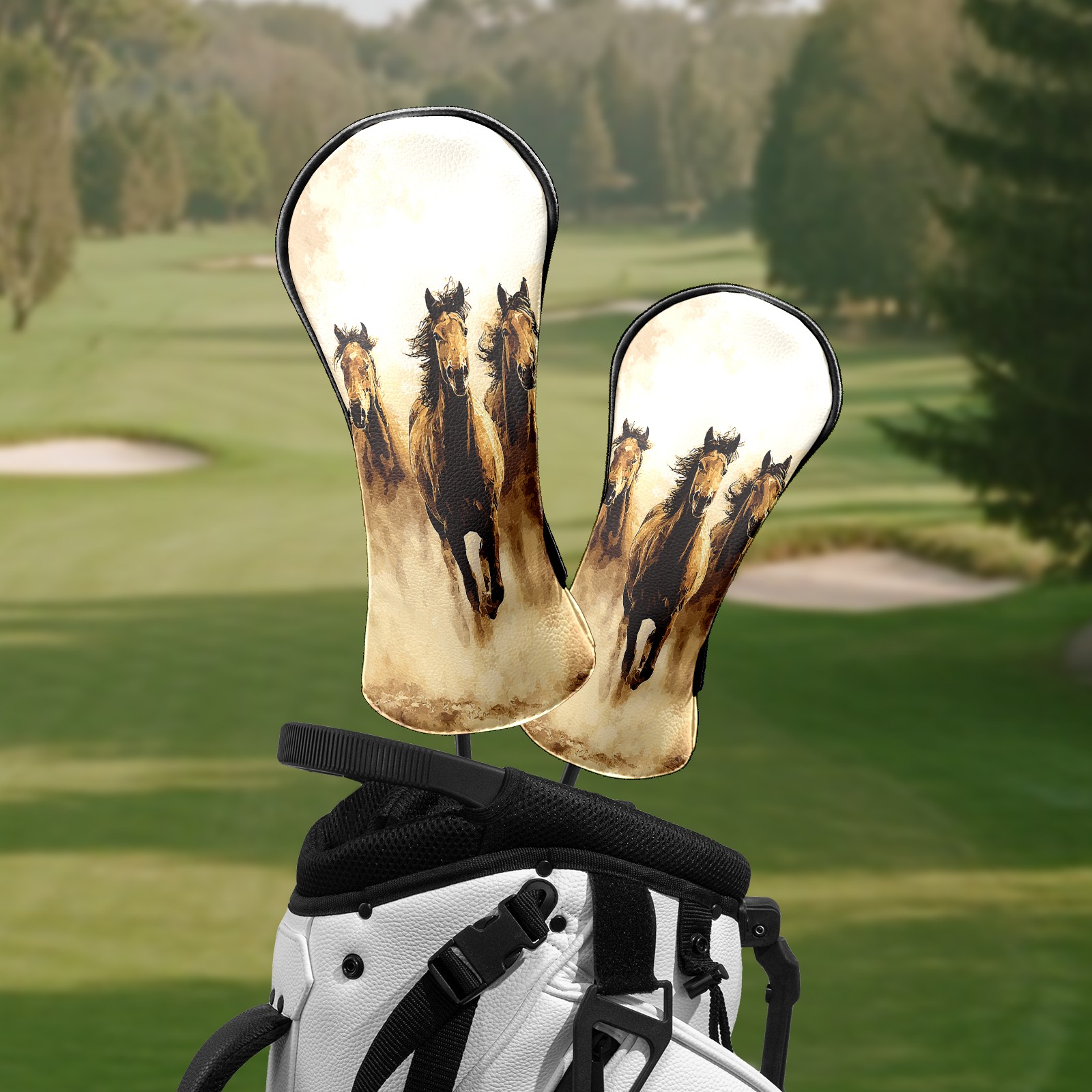 Golf Club Head Covers Chic Horse Beige Premium Plush Velvet Lining, Waterproof Golf Headcovers Driver & Fairway Woods for Scratch Protection Novelty Gift for Men & Women