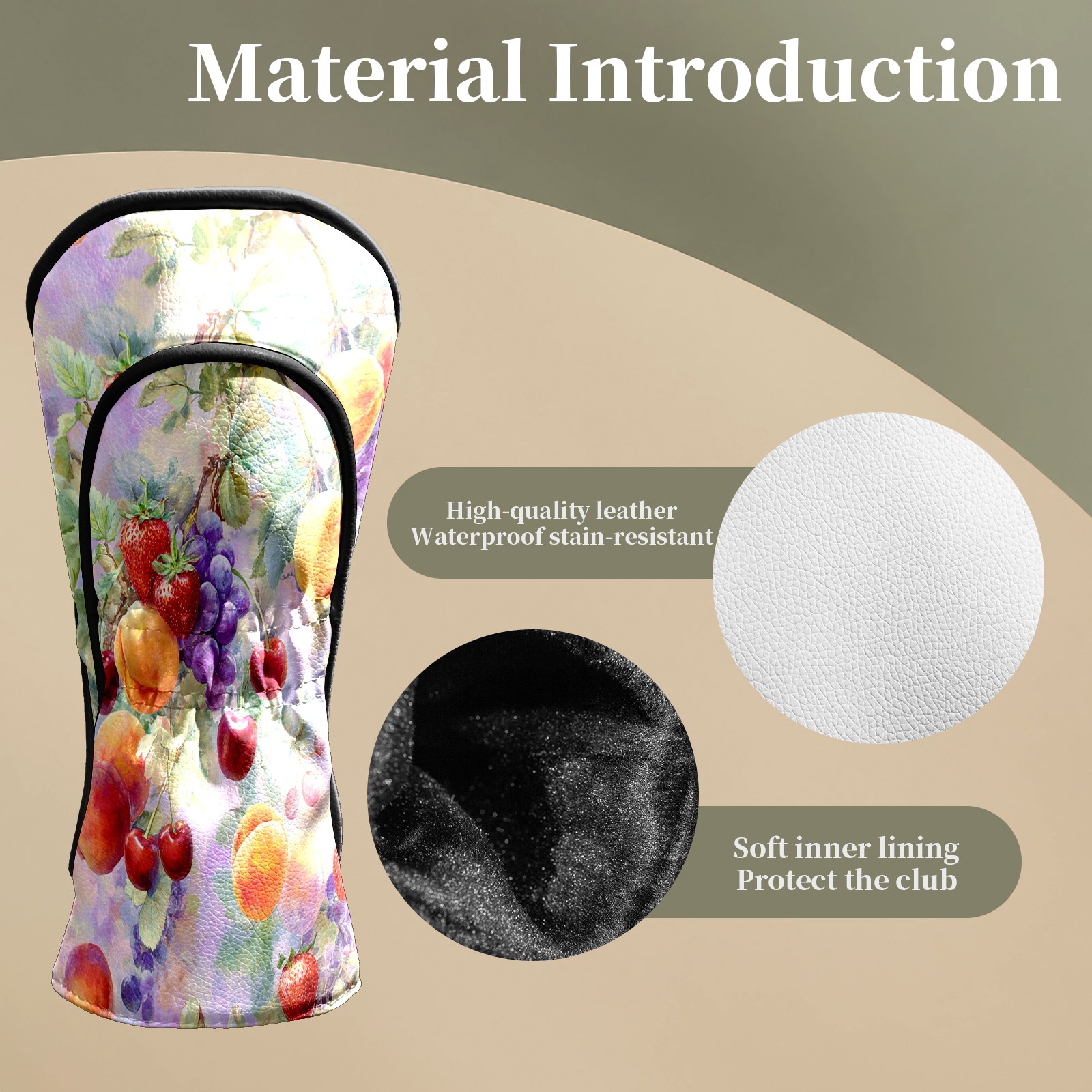 Golf Club Head Covers Colorful Fruit Multi Premium Plush Velvet Lining, Waterproof Golf Headcovers Driver & Fairway Woods for Scratch Protection Novelty Gift for Men & Women