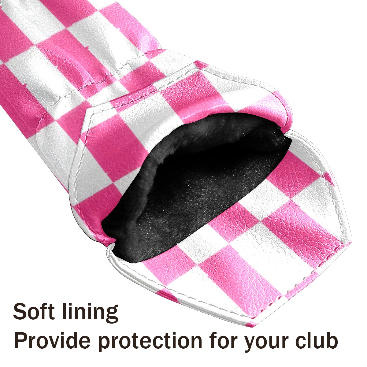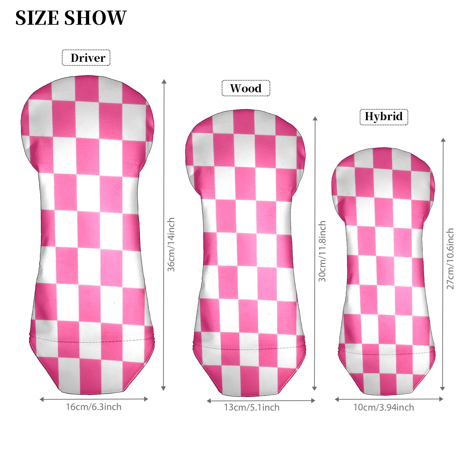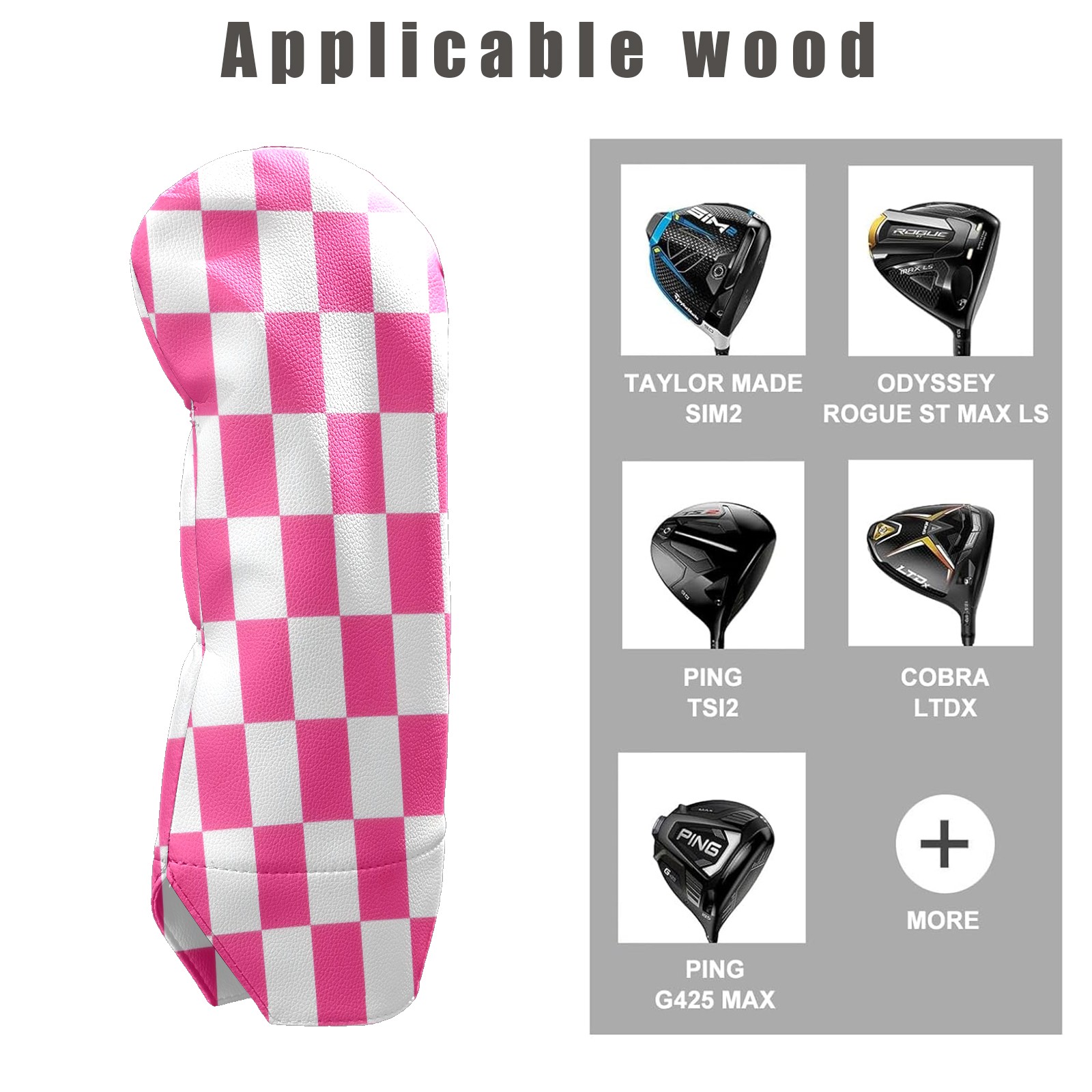 Golf Club Head Covers Driver Cover Fairway Hybrid Headcover Premium Leather Golf Head Covers for Woods and Driver Hybrid, Golf Headcovers for Women Men (Pink Checker (1))