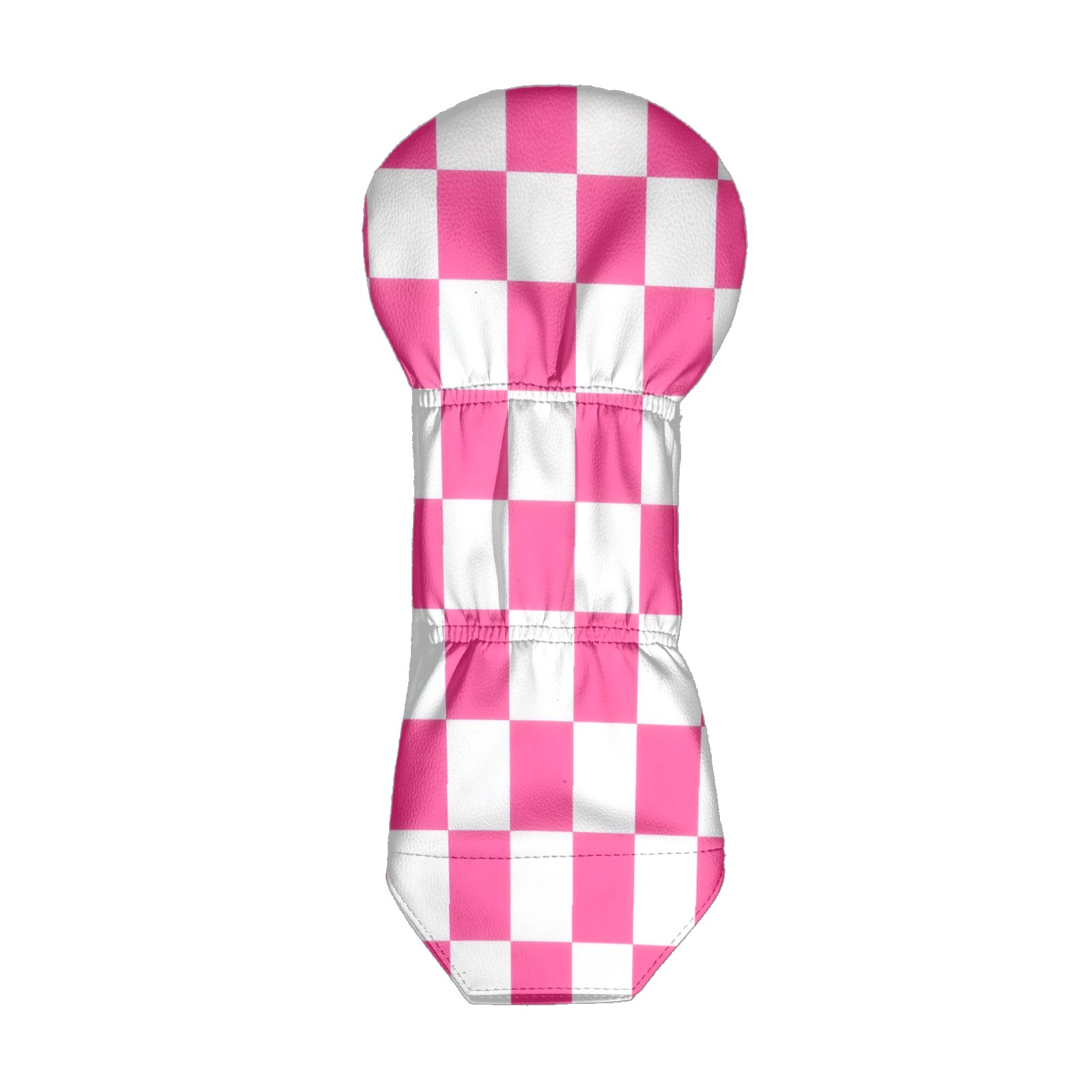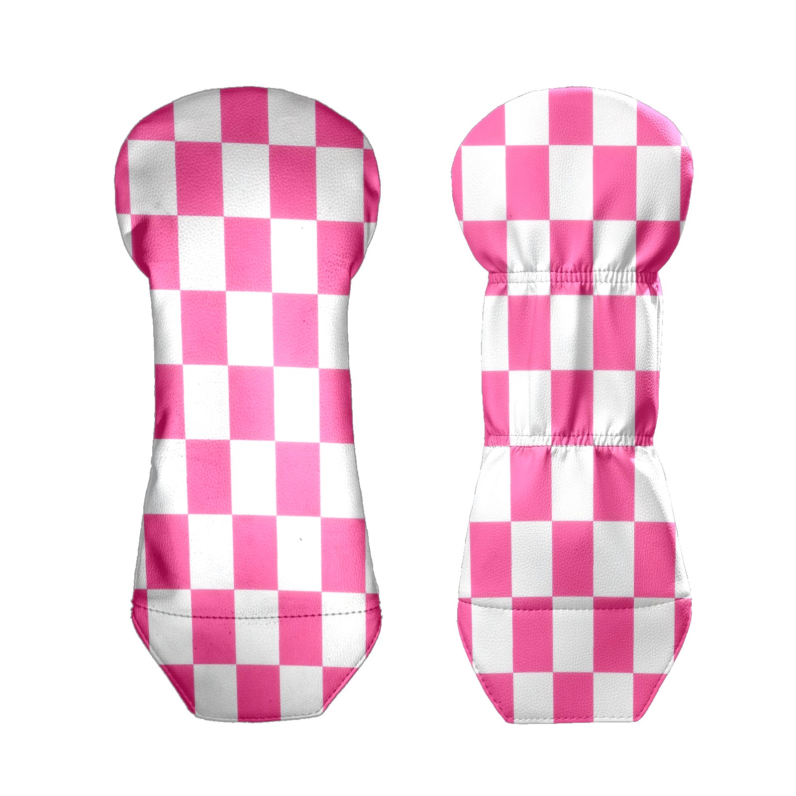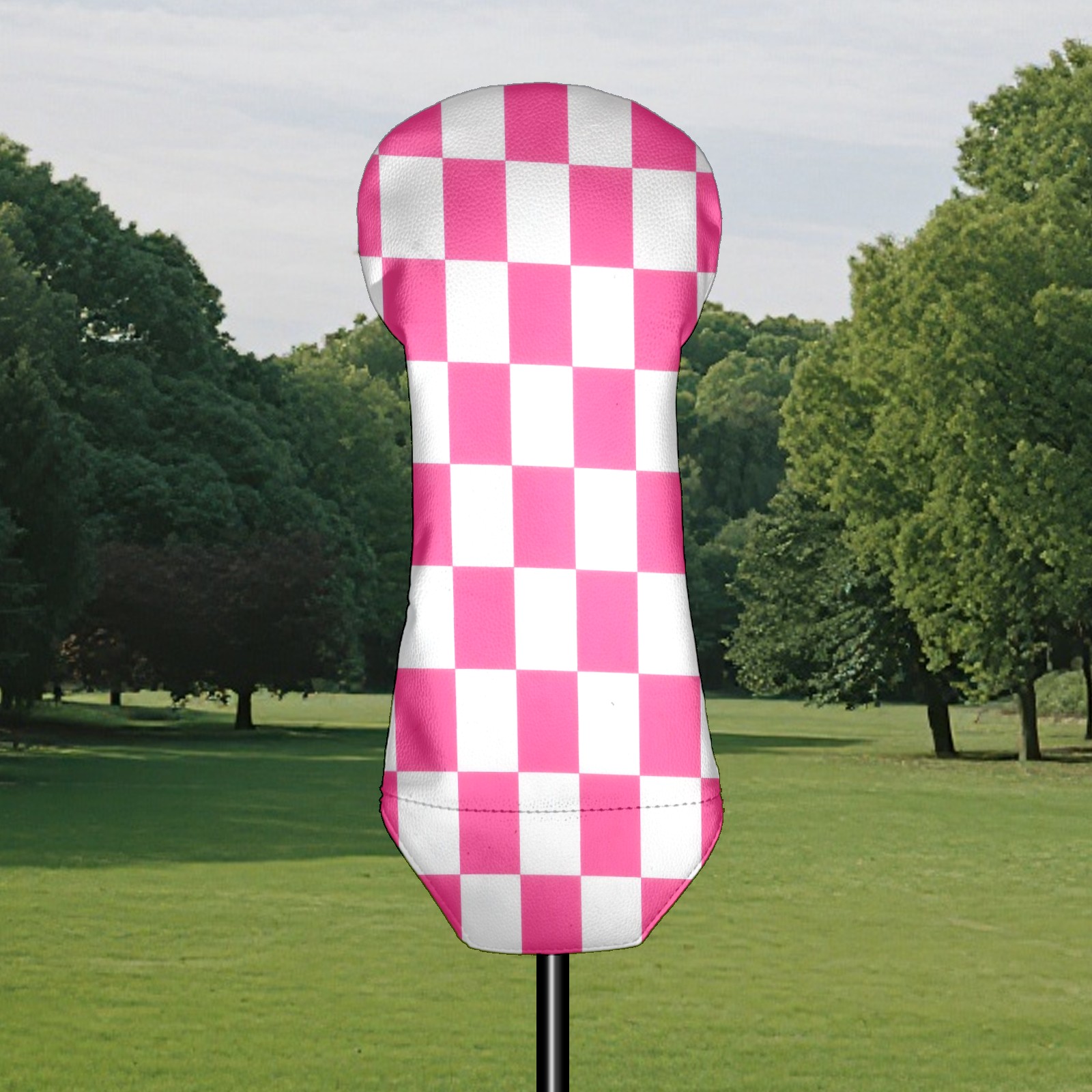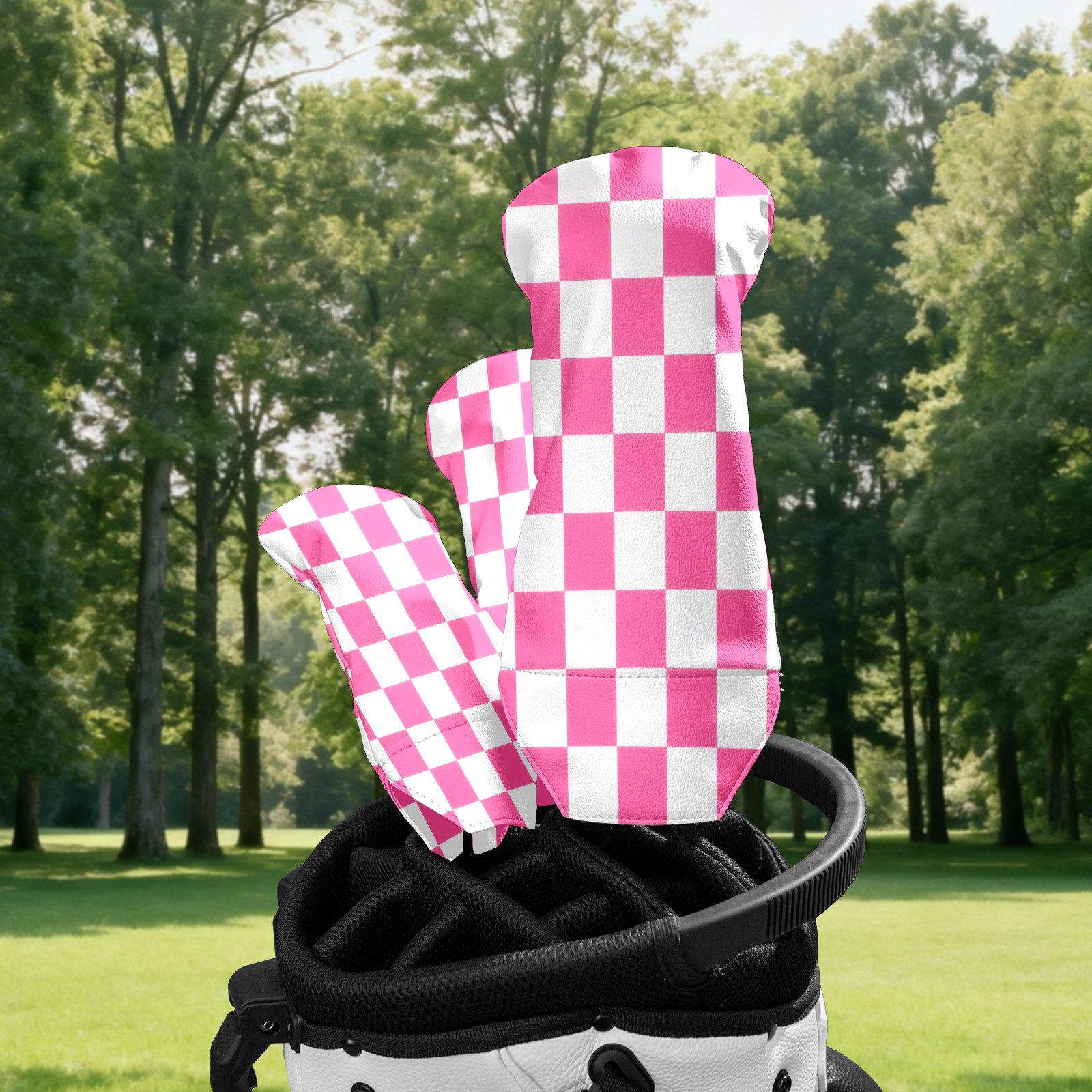 Golf Club Head Covers Driver Cover Fairway Hybrid Headcover Premium Leather Golf Head Covers for Woods and Driver Hybrid, Golf Headcovers for Women Men (Pink Checker (1))