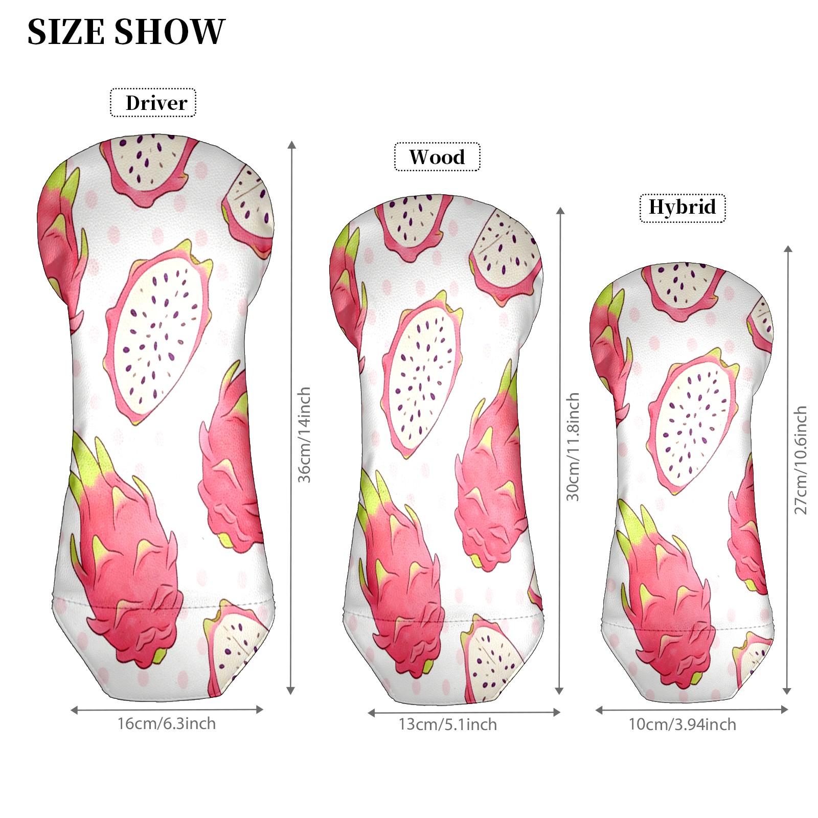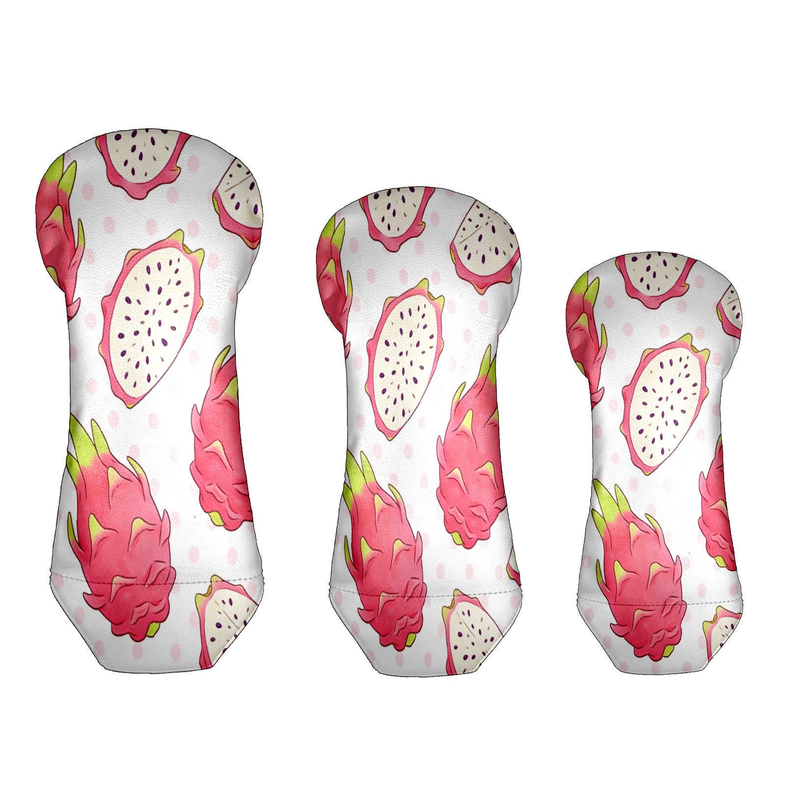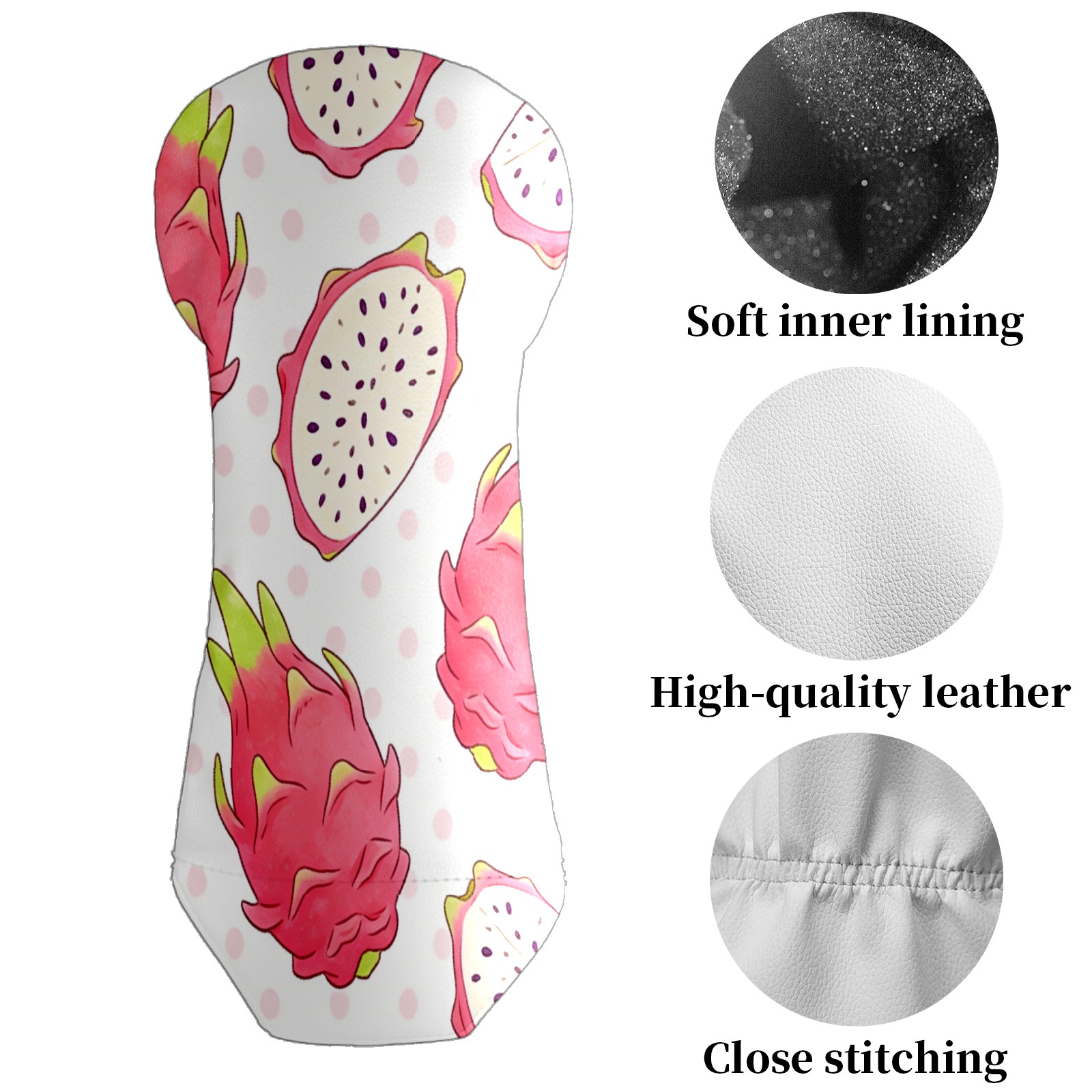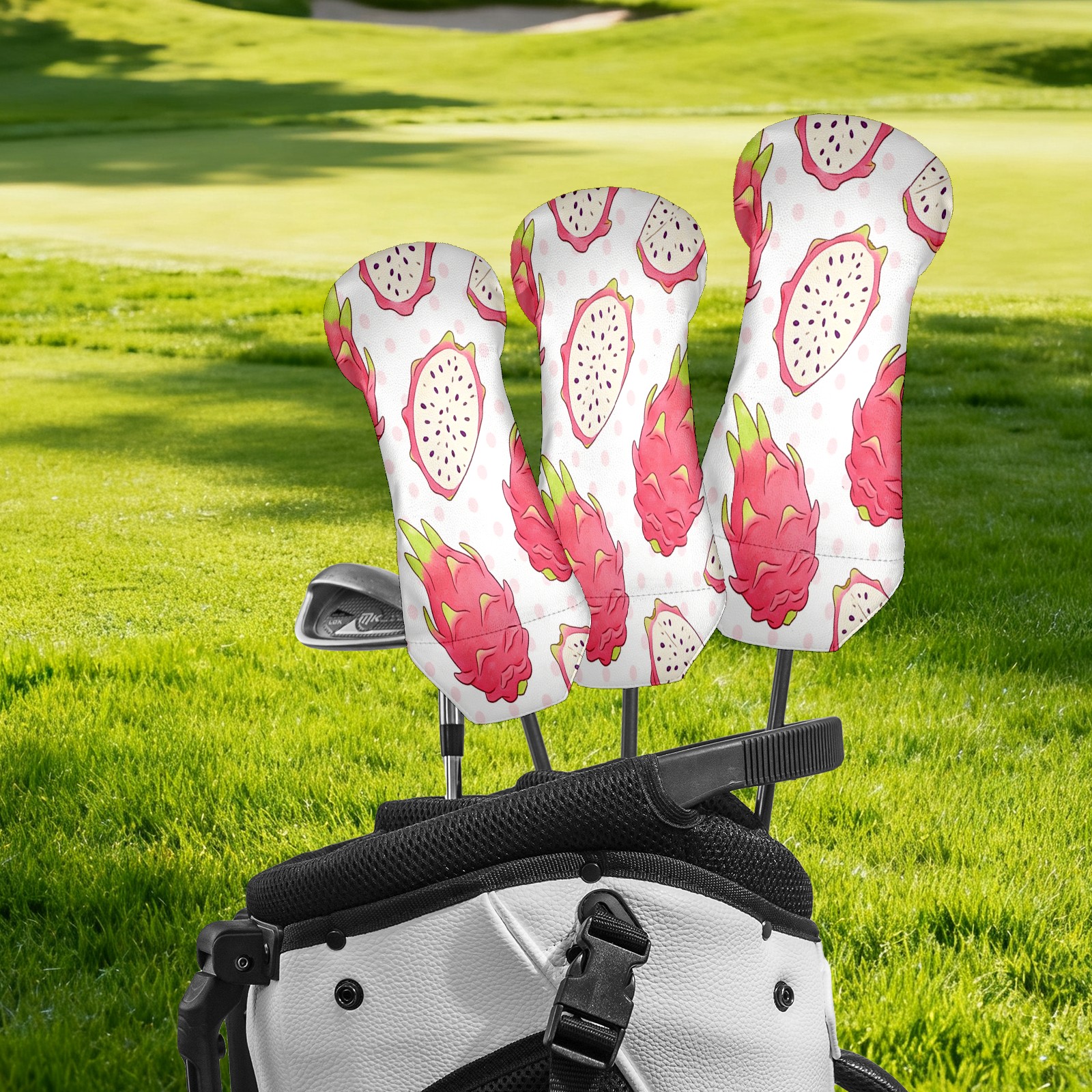 Golf Club Covers for Woods and Driver Hybrid Velvet Cover Leather Golf Headcover for Most Brand Club Men Women Dragon Fruit Pattern