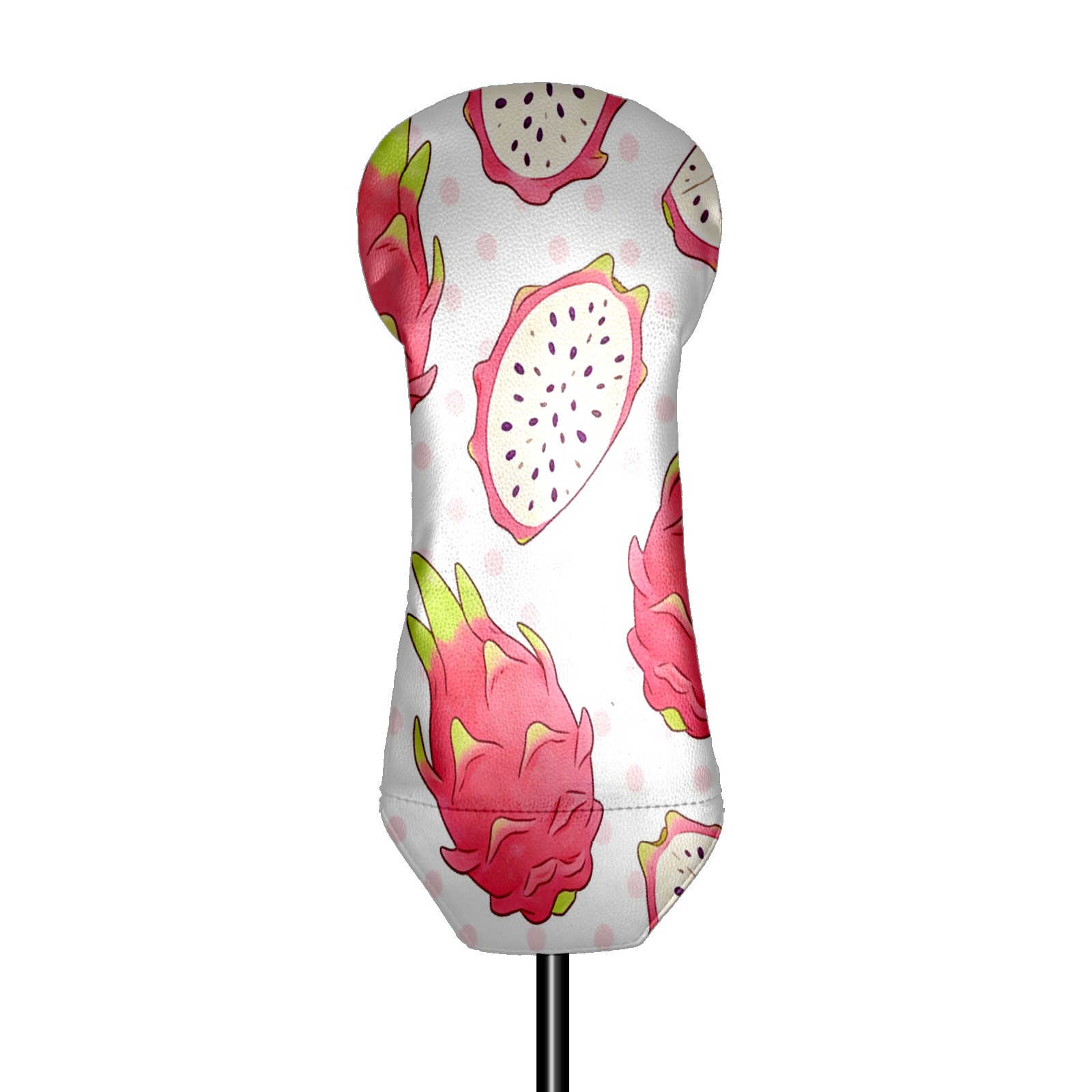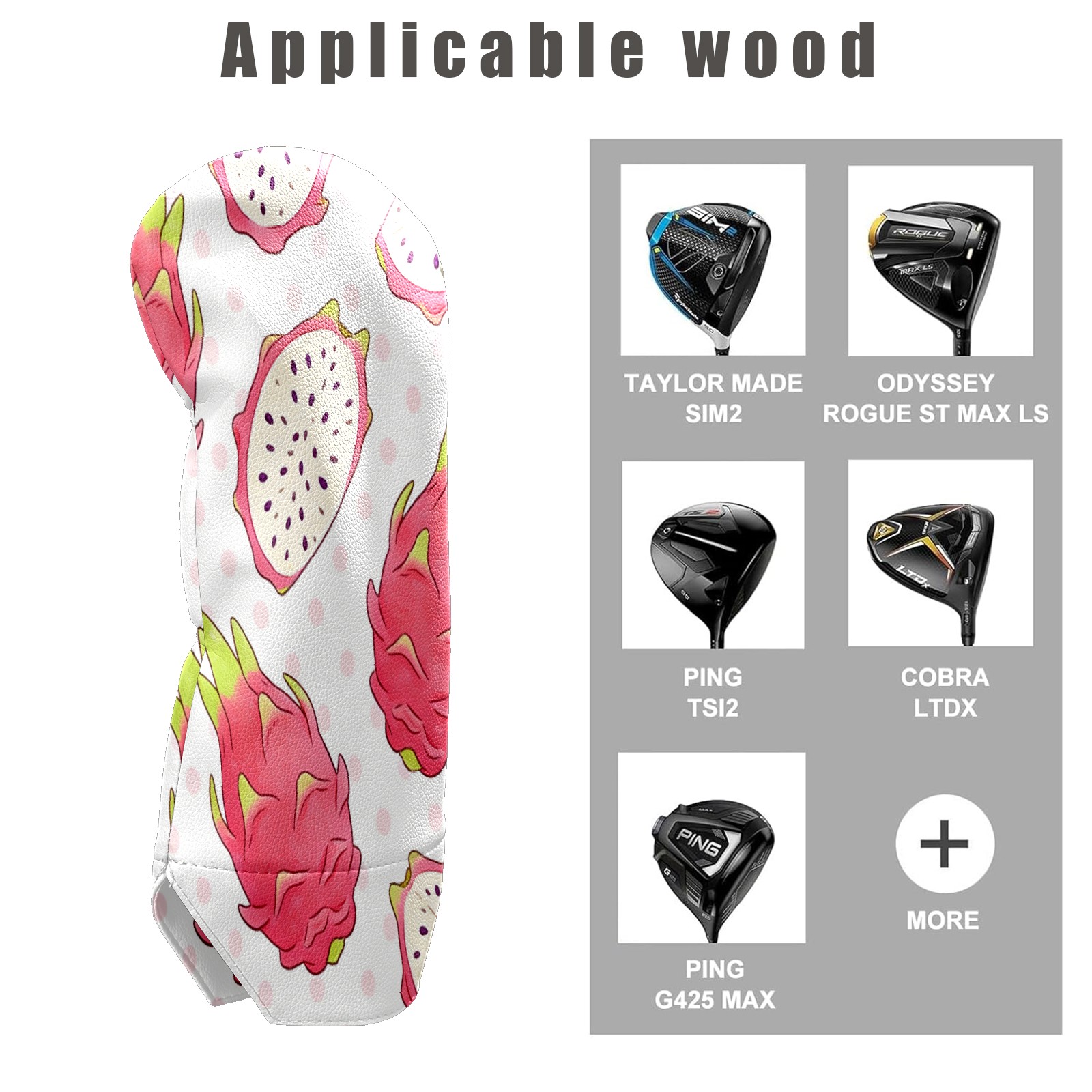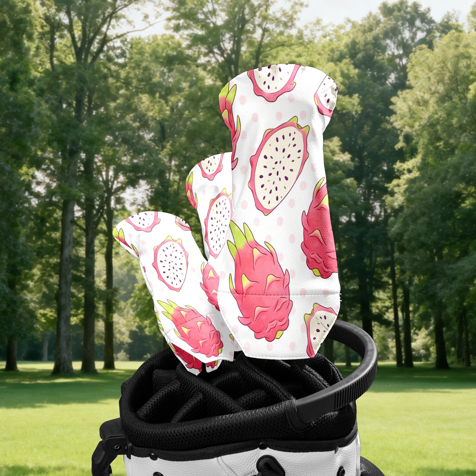 Golf Club Covers for Woods and Driver Hybrid Velvet Cover Leather Golf Headcover for Most Brand Club Men Women Dragon Fruit Pattern