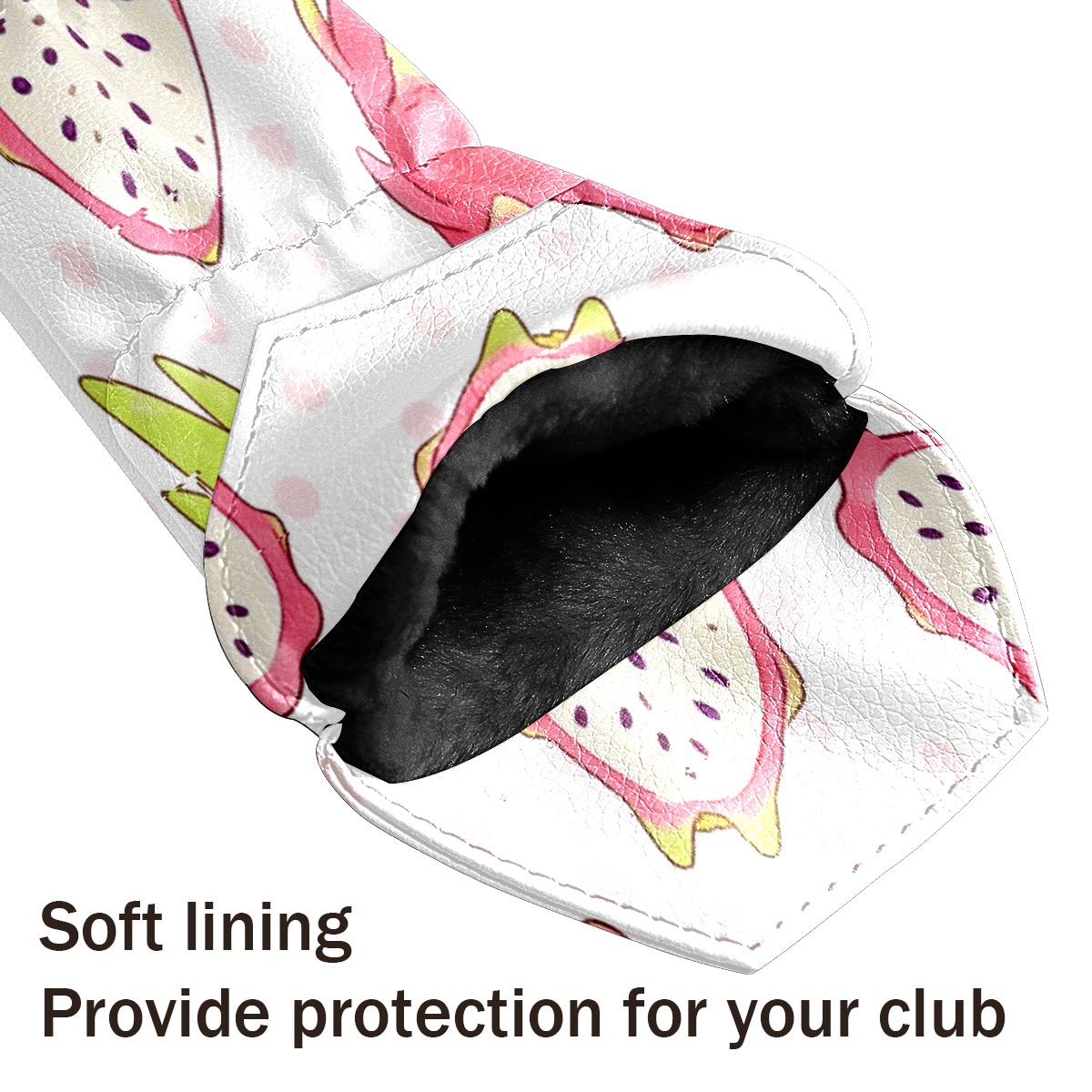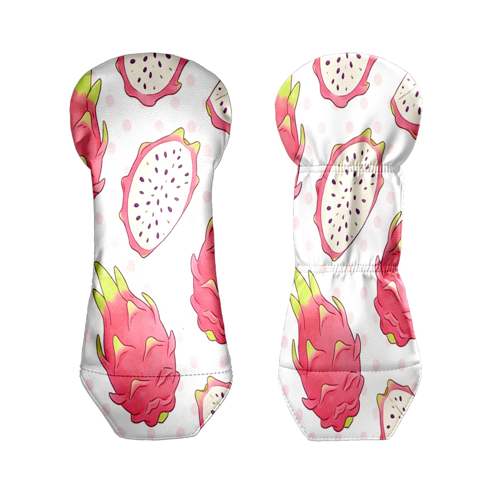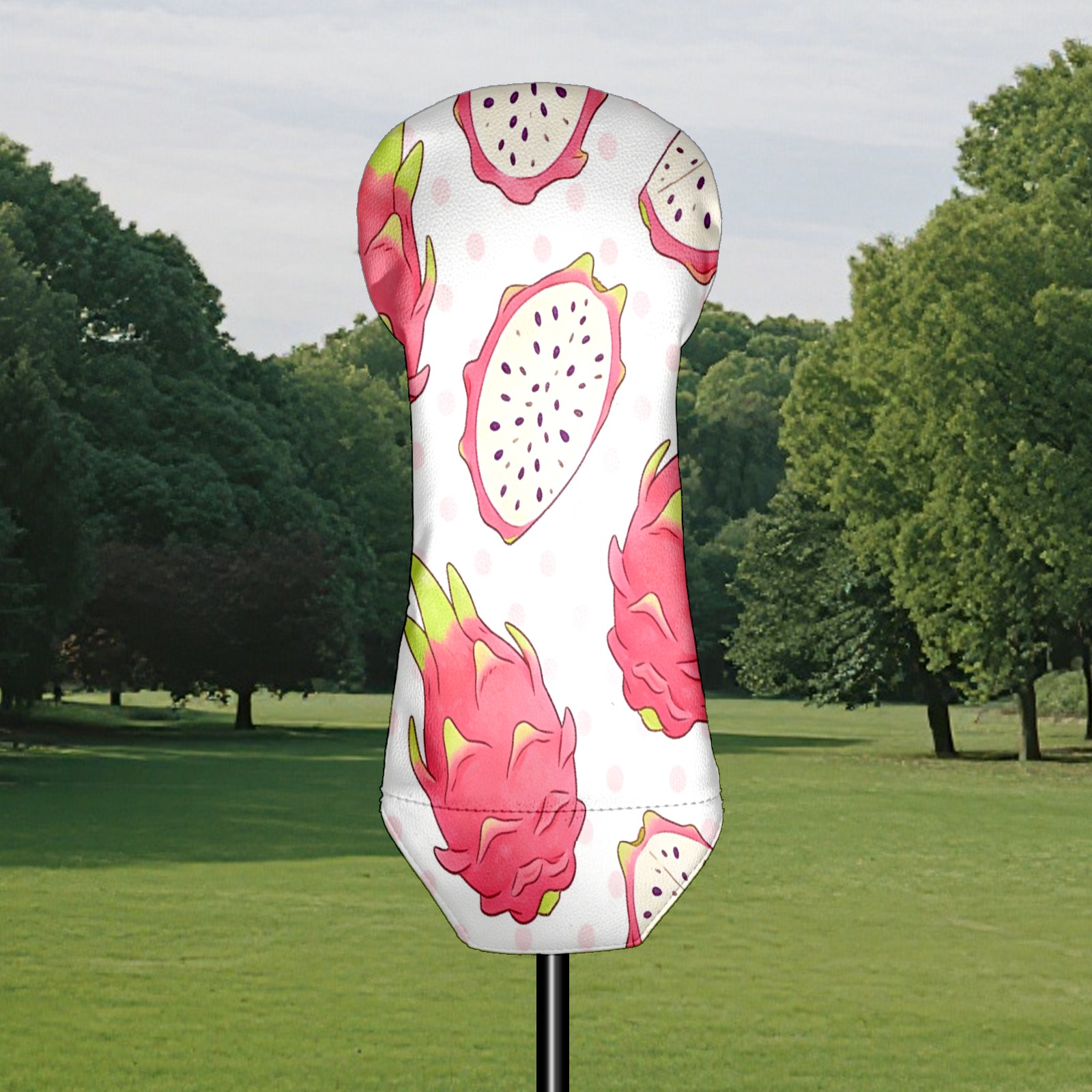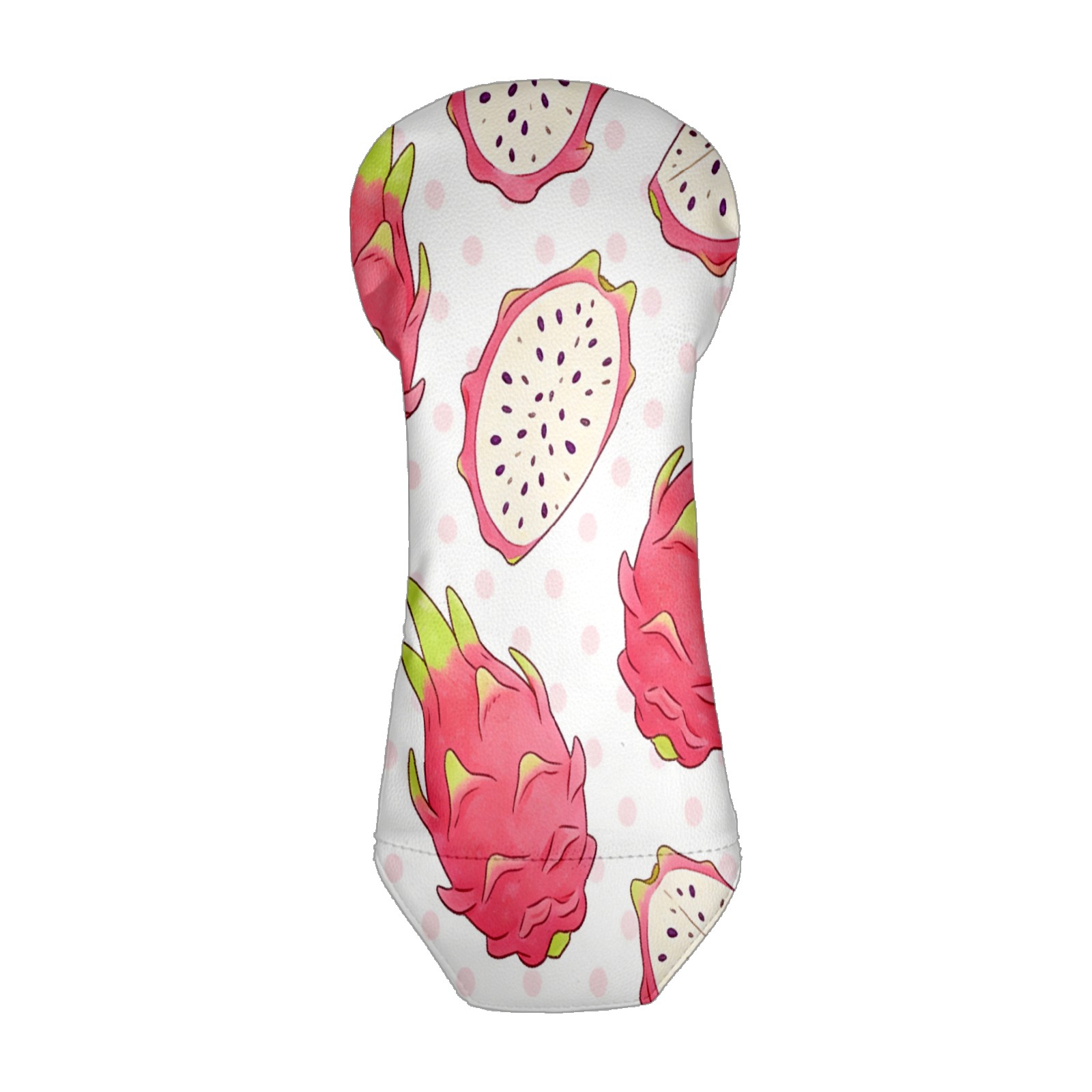 Golf Club Covers for Woods and Driver Hybrid Velvet Cover Leather Golf Headcover for Most Brand Club Men Women Dragon Fruit Pattern