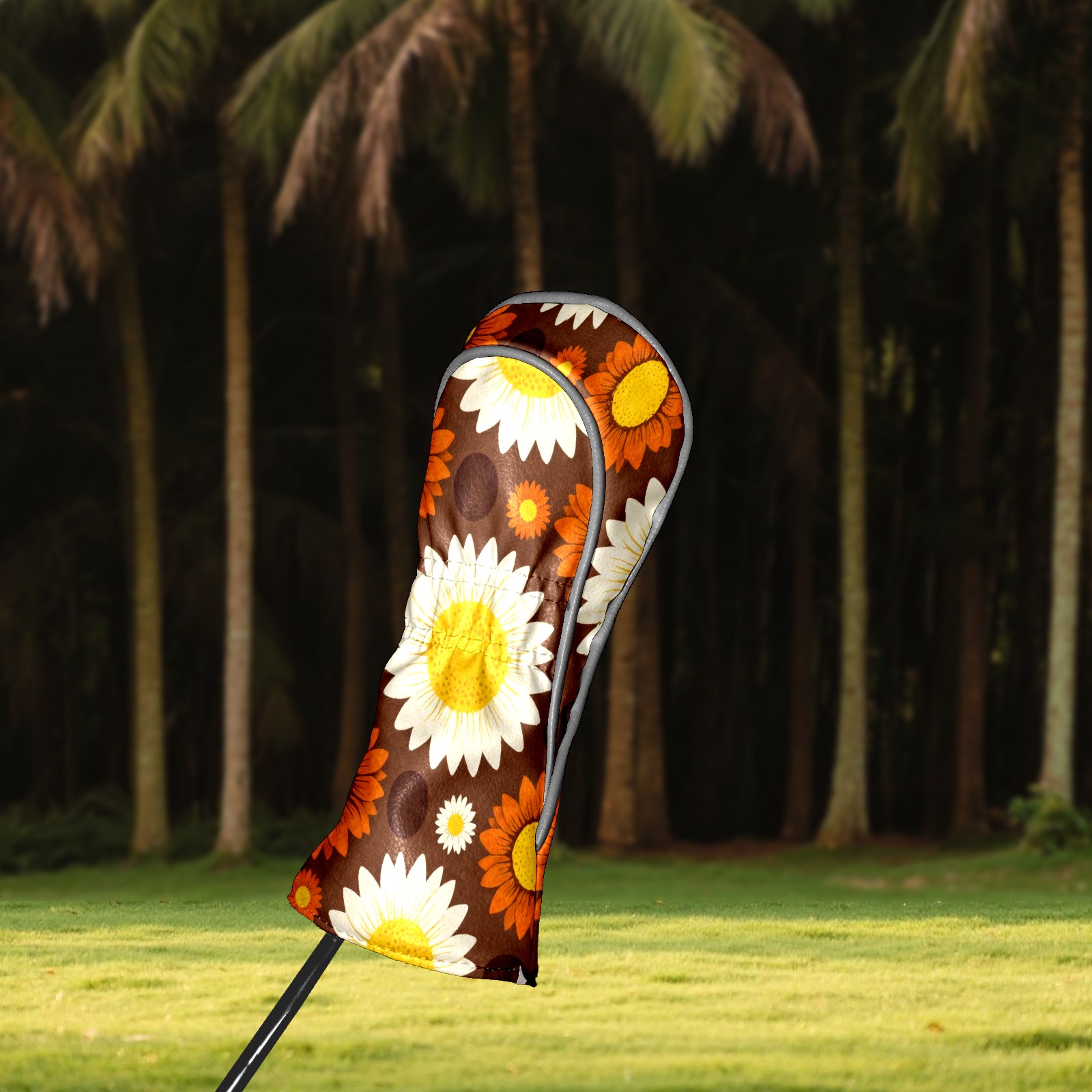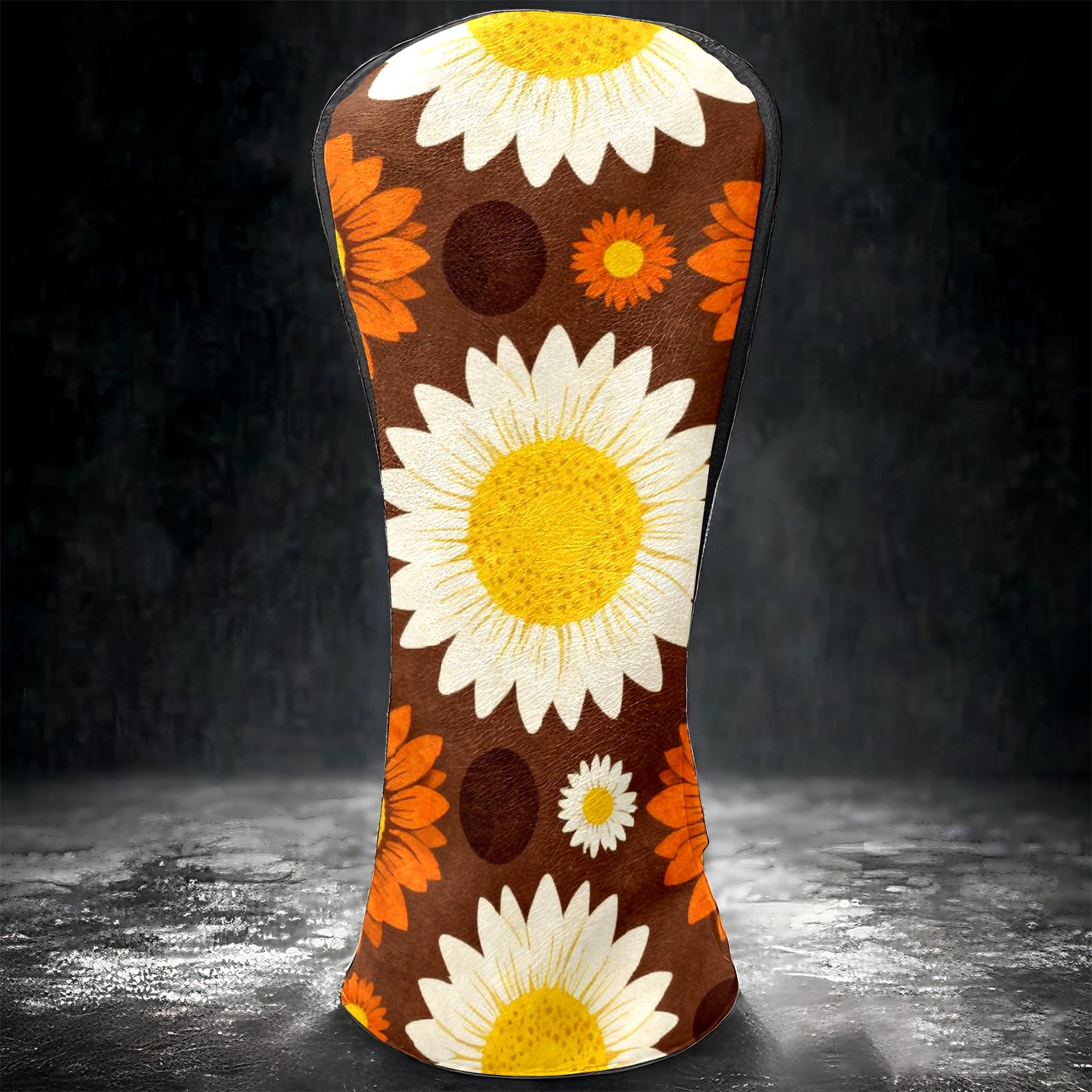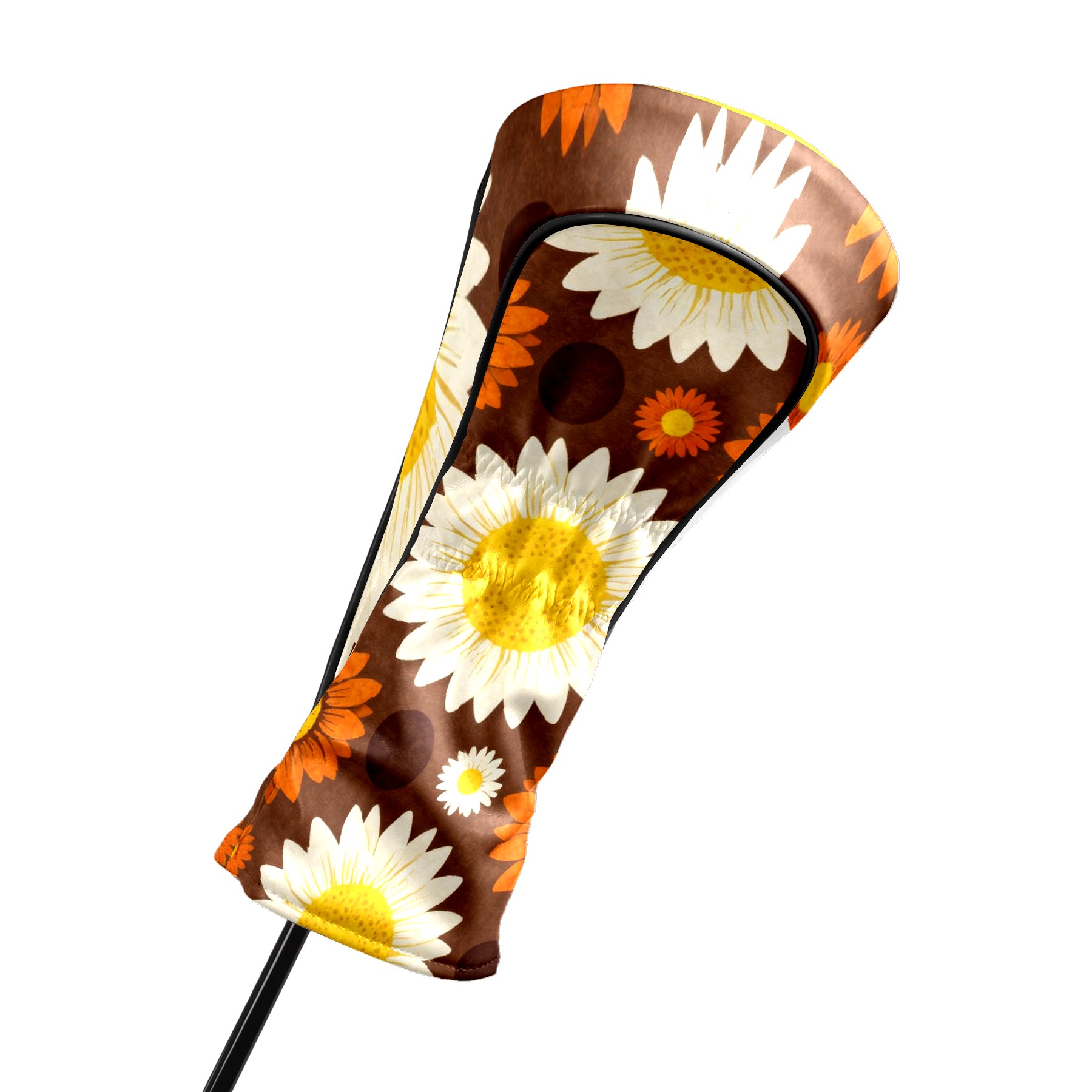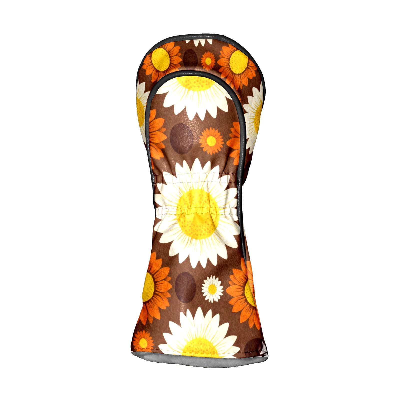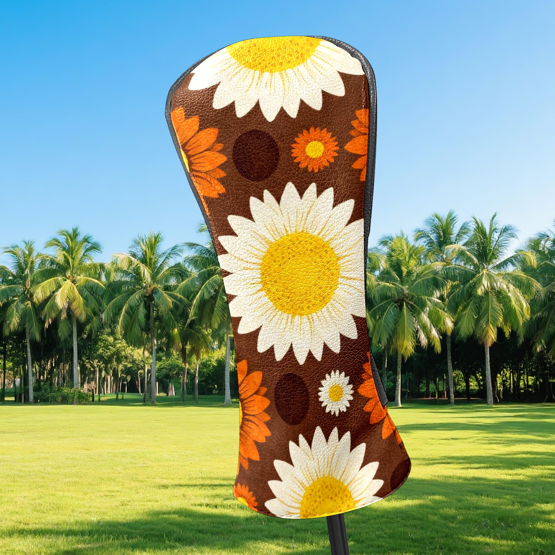 Golf Driver Head Covers Fairway Wood Headcovers, Premium Leather Golf Club Covers with Anti-Scratch Lining 1/3/5 Wood Cover for golf clubs for Women Men (Jimeng-2025-12-15-9141-70年代复古图案设计,深棕色背景上的无缝向日葵图案,大型白色花瓣黄色花心的向日葵...)