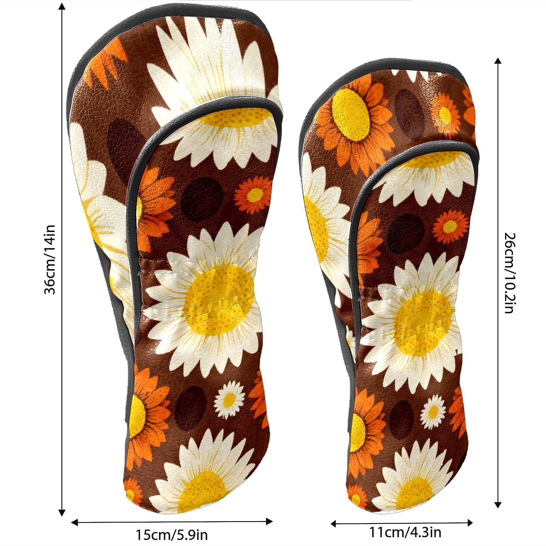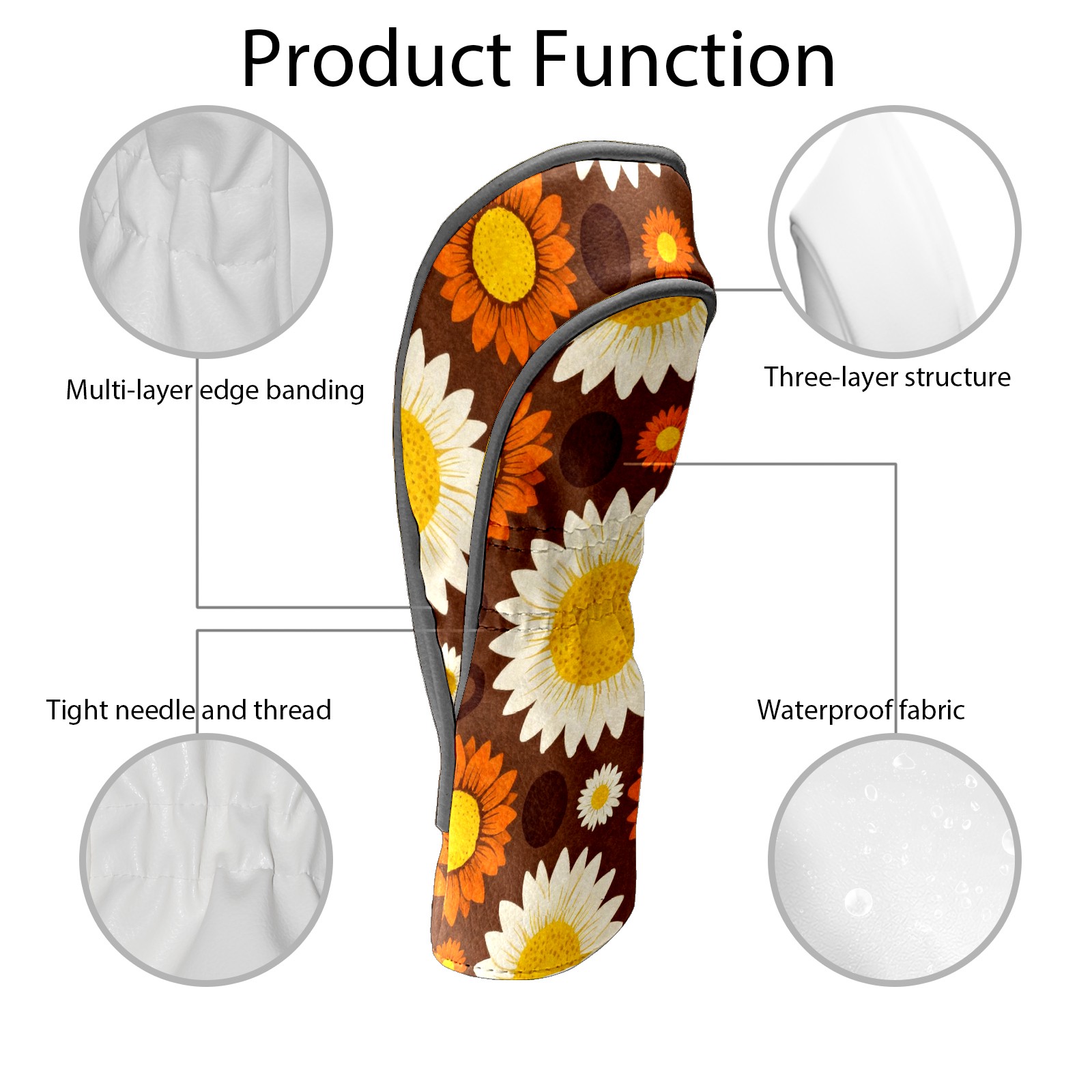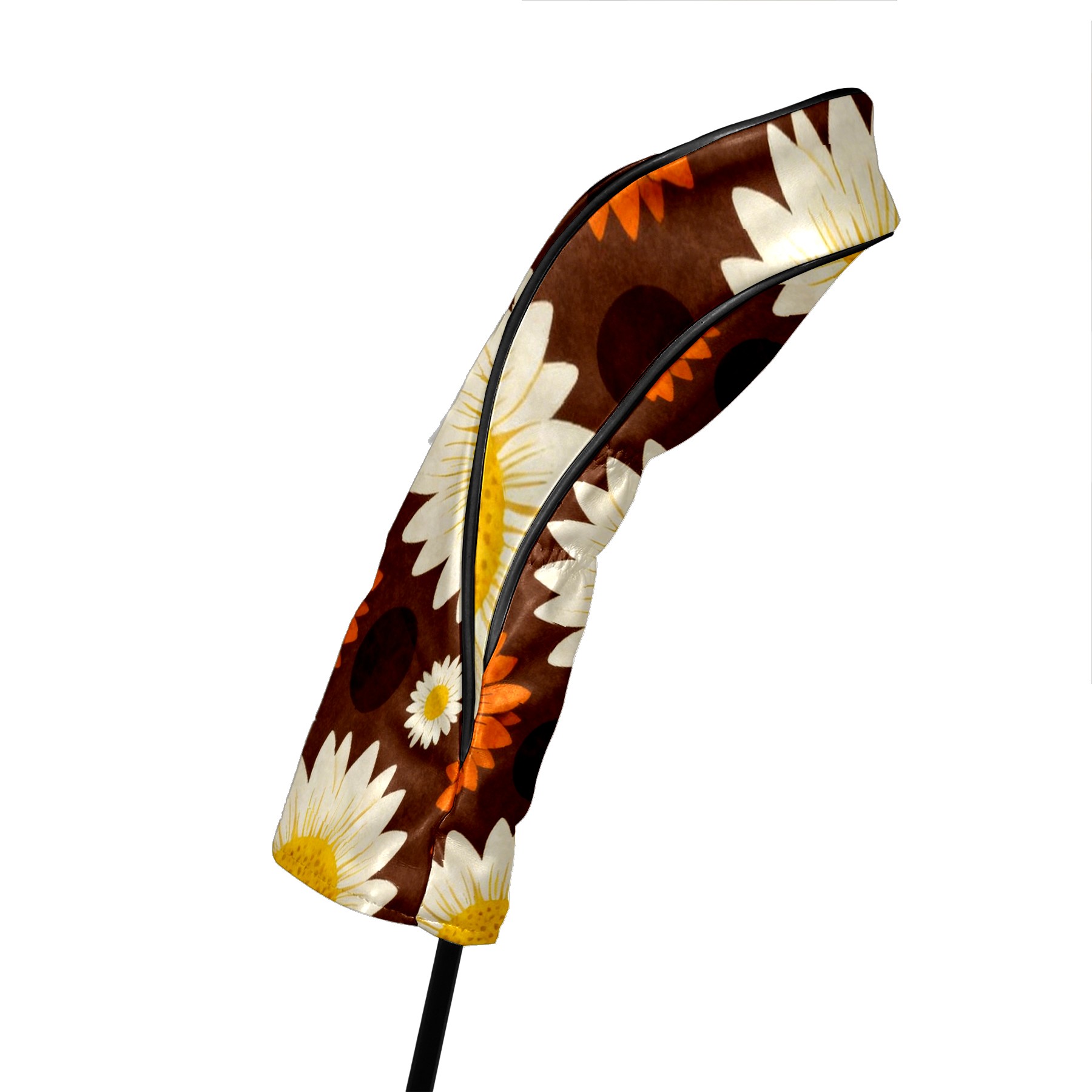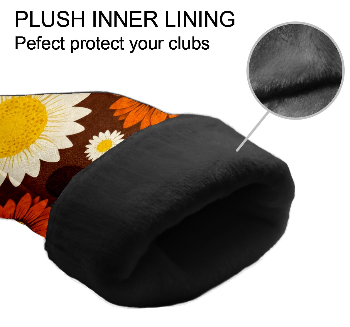 Golf Driver Head Covers Fairway Wood Headcovers, Premium Leather Golf Club Covers with Anti-Scratch Lining 1/3/5 Wood Cover for golf clubs for Women Men (Jimeng-2025-12-15-9141-70年代复古图案设计,深棕色背景上的无缝向日葵图案,大型白色花瓣黄色花心的向日葵...)