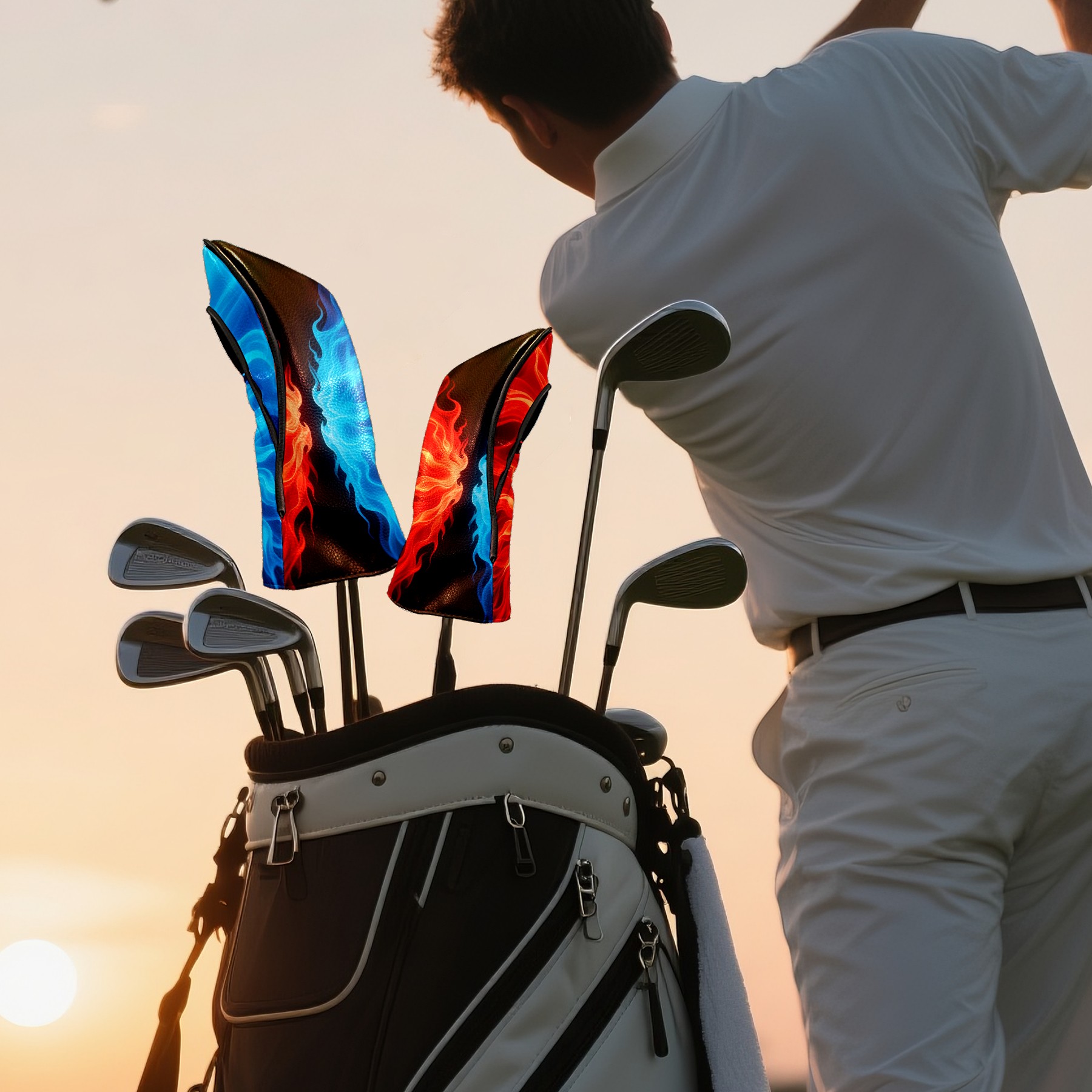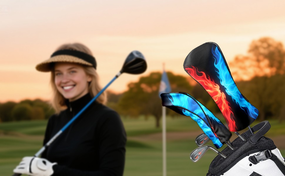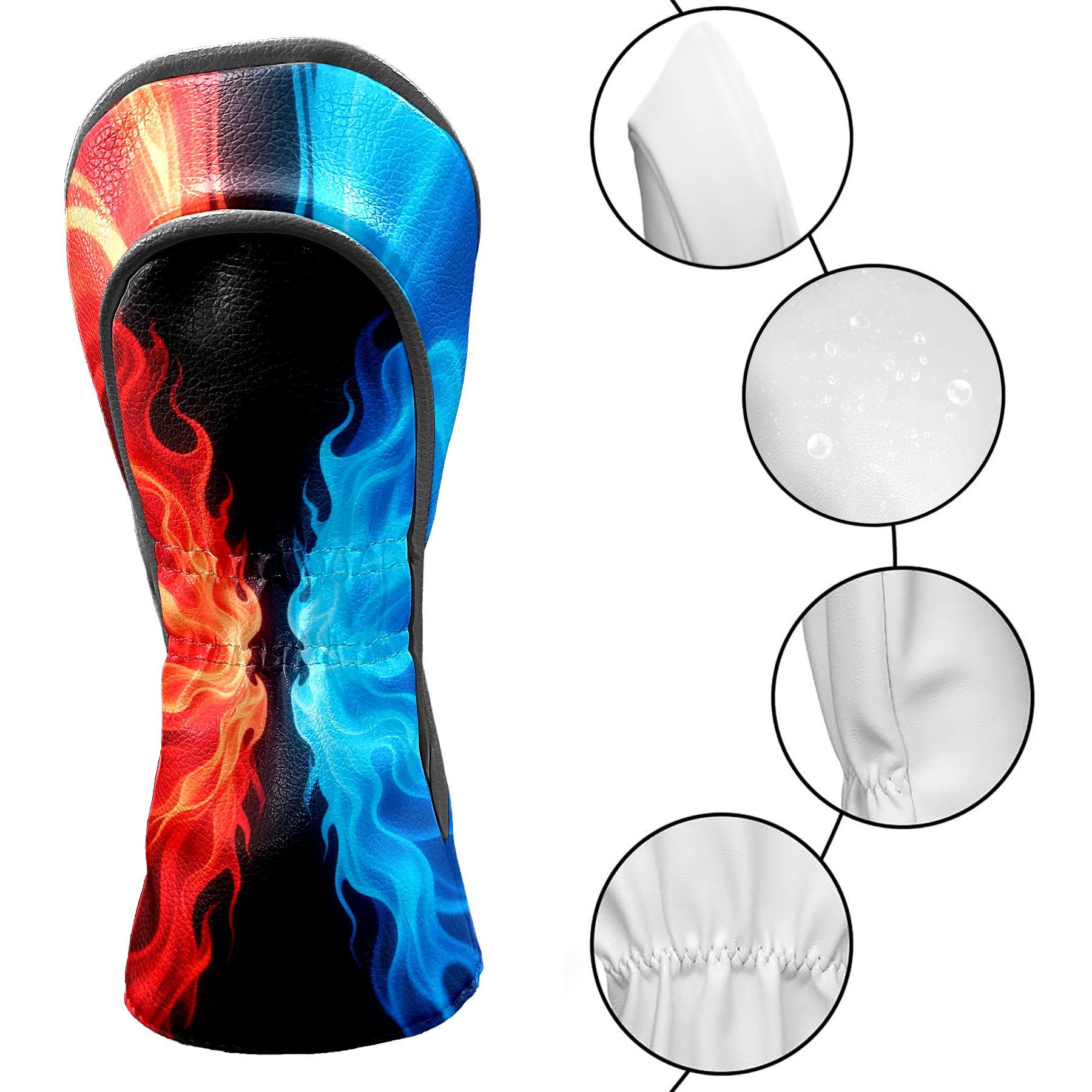 Golf Driver Head Covers Fairway Wood Headcovers, Premium Leather Golf Club Covers with Anti-Scratch Lining 1/3/5 Wood Cover for golf clubs for Women Men (Fire(001))