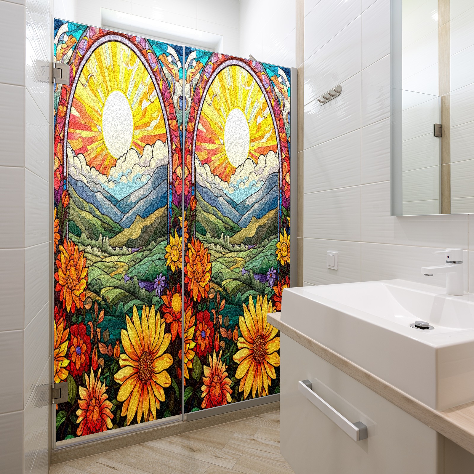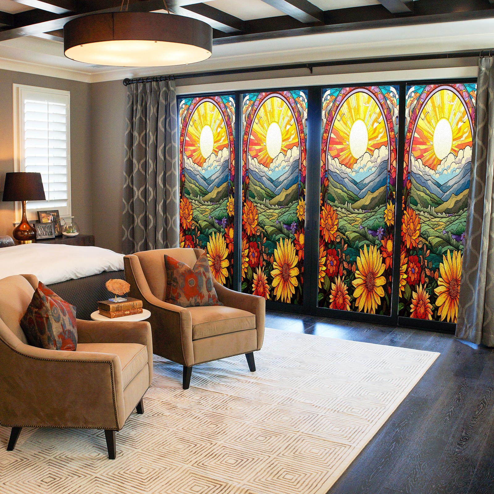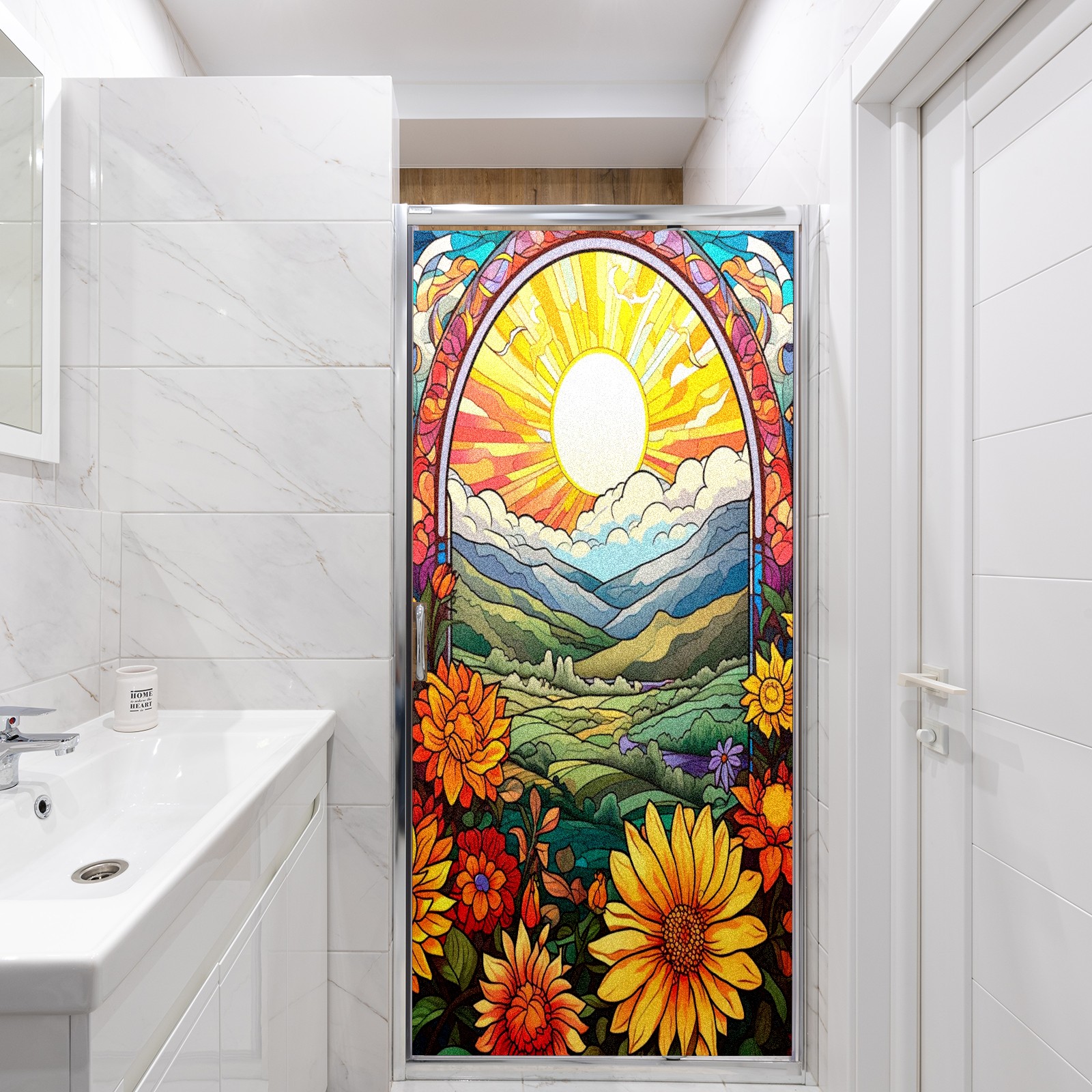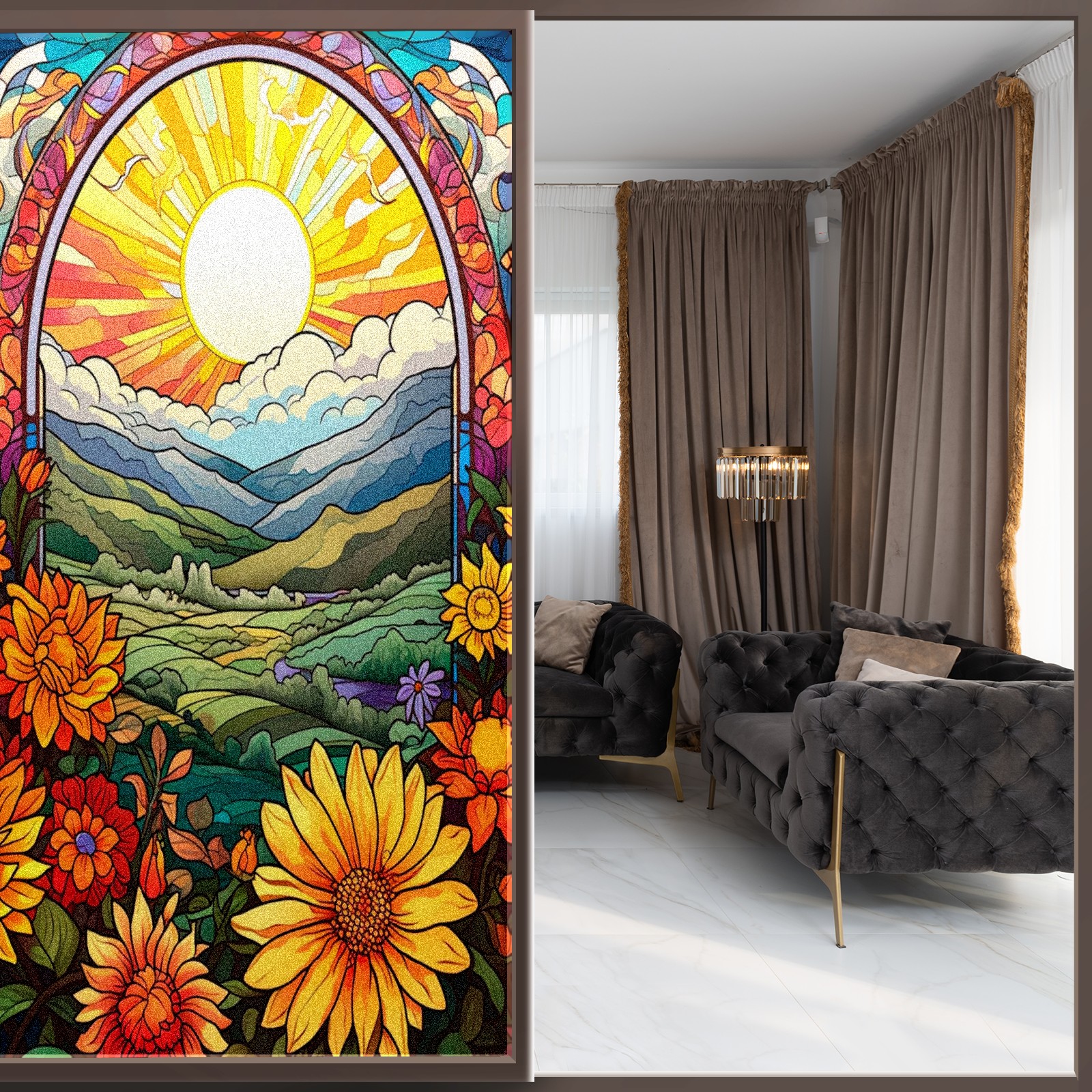 Window Privacy Film Frosted Stained Glass Film Decorative Static Cling for Bathroom Home Office Peel and Stick Window Film Yellow Flower Sunset(17.7x23.6in)