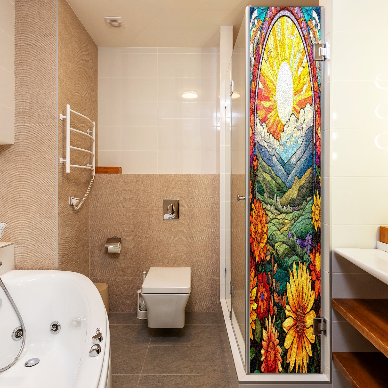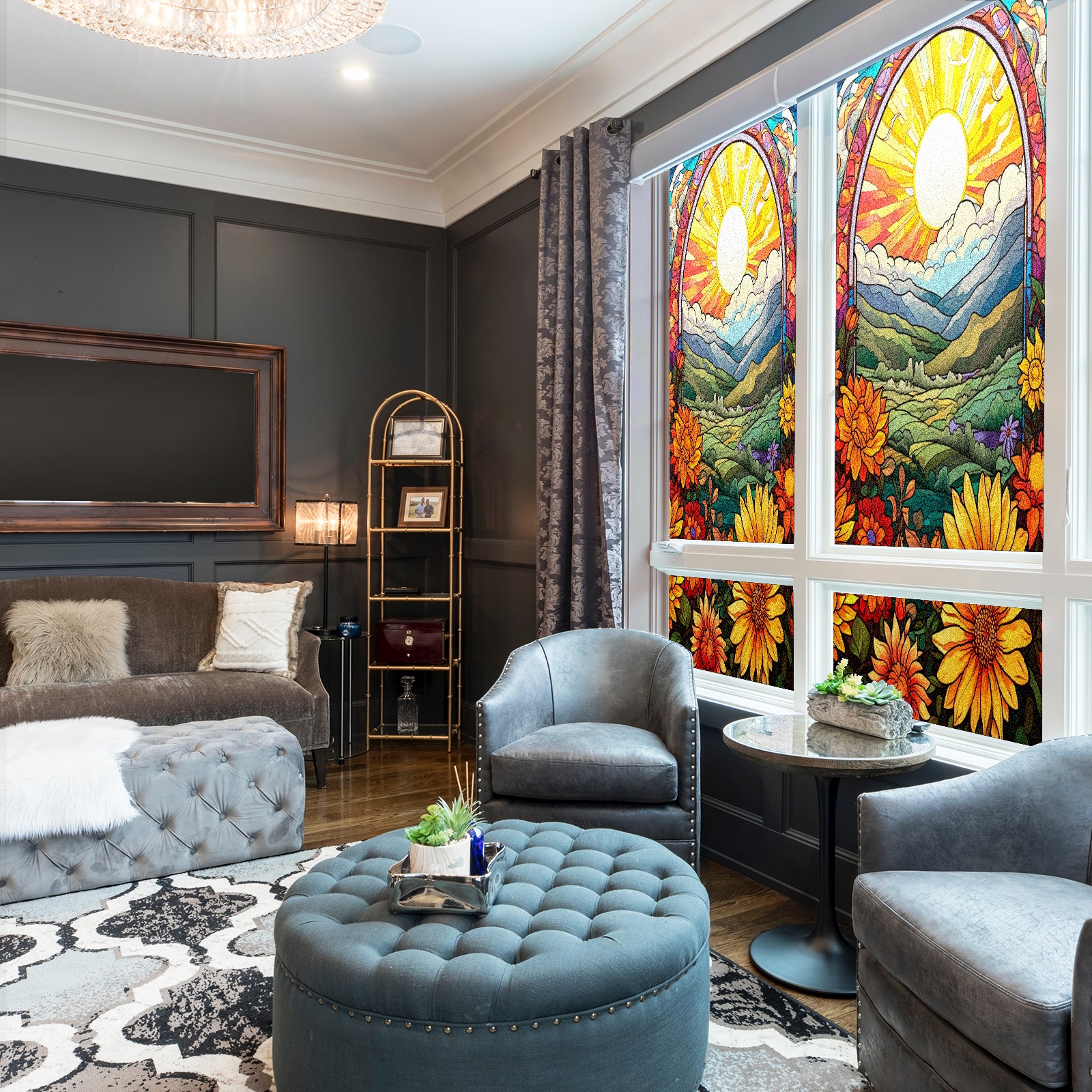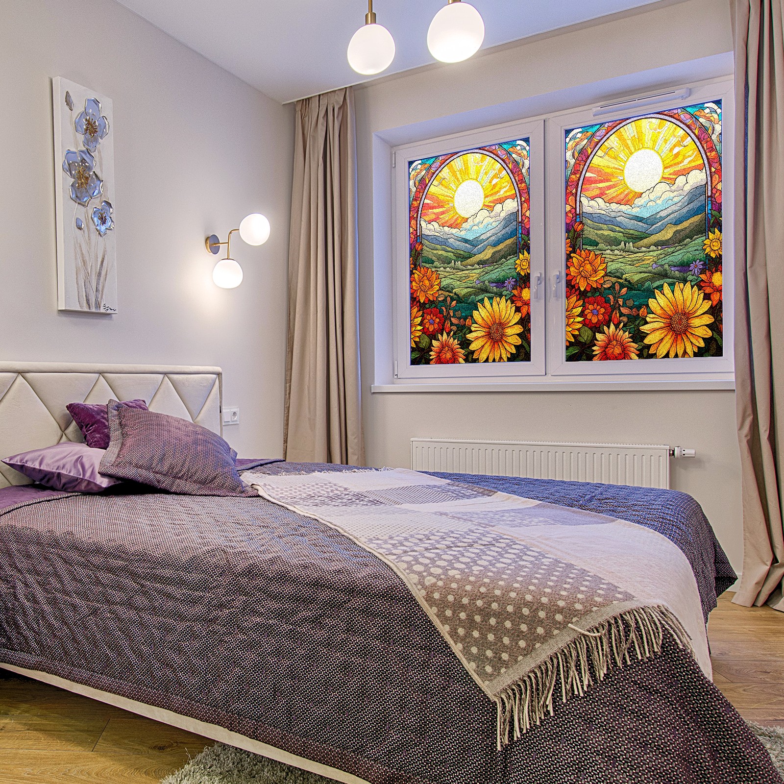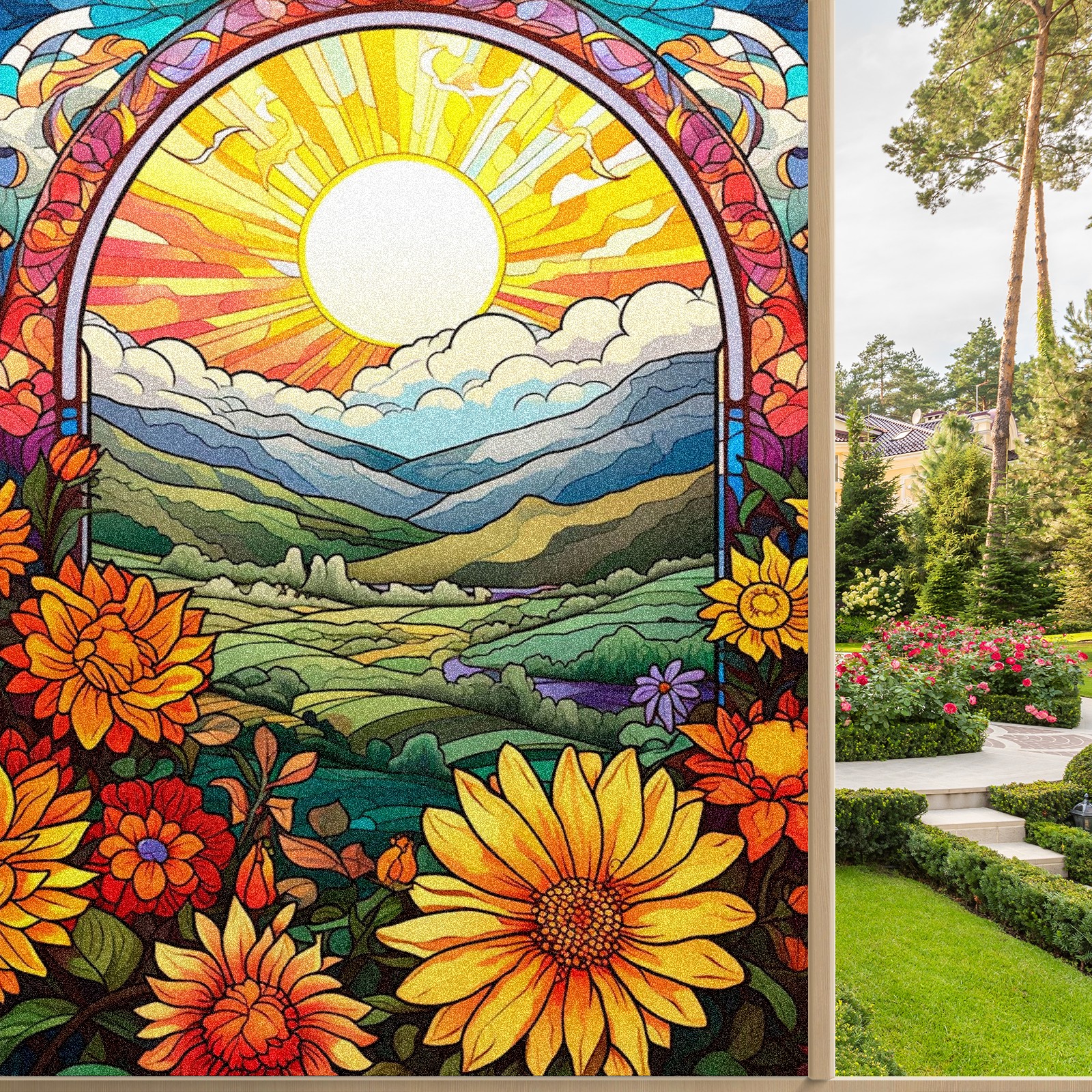 Window Privacy Film Frosted Stained Glass Film Decorative Static Cling for Bathroom Home Office Peel and Stick Window Film Yellow Flower Sunset(17.7x23.6in)
