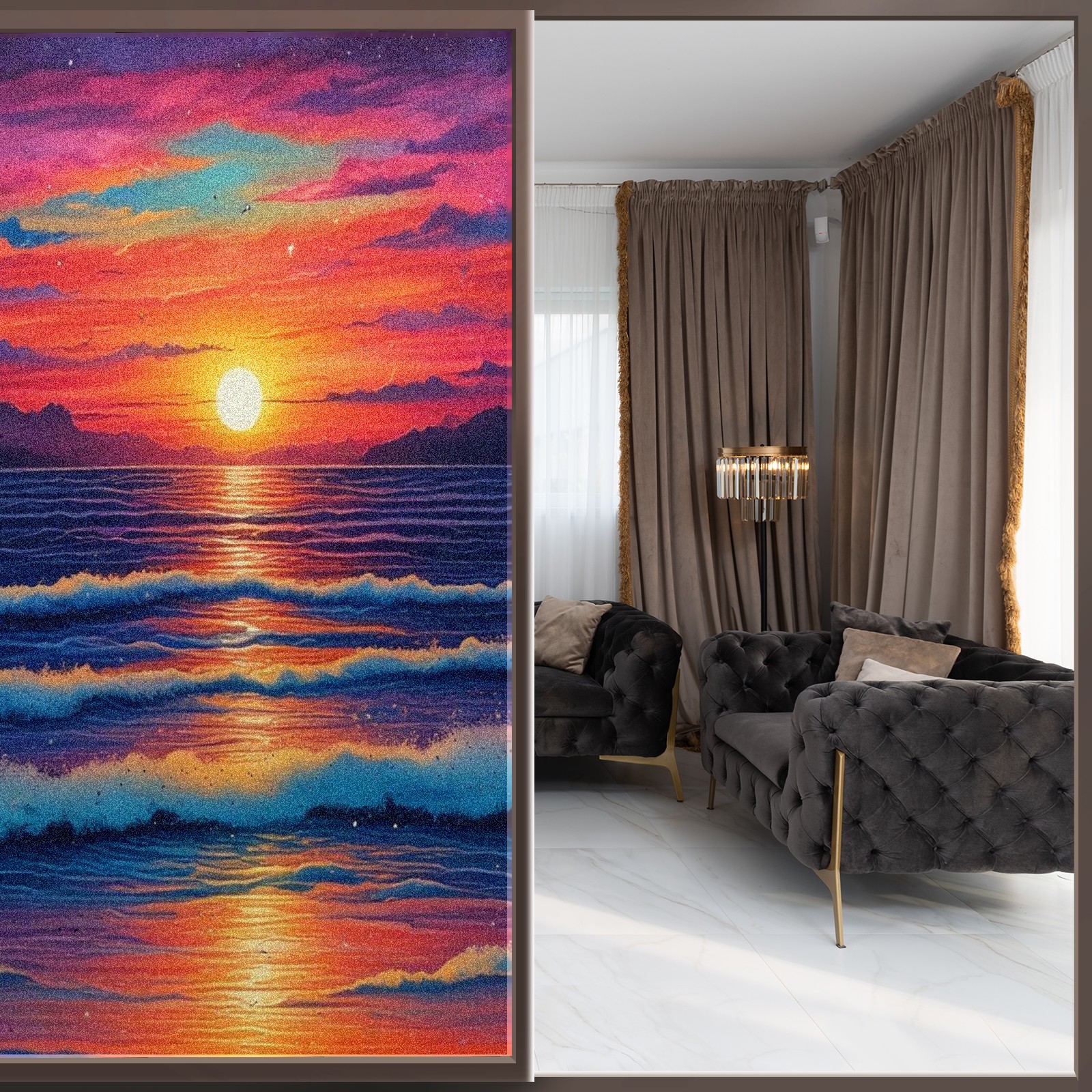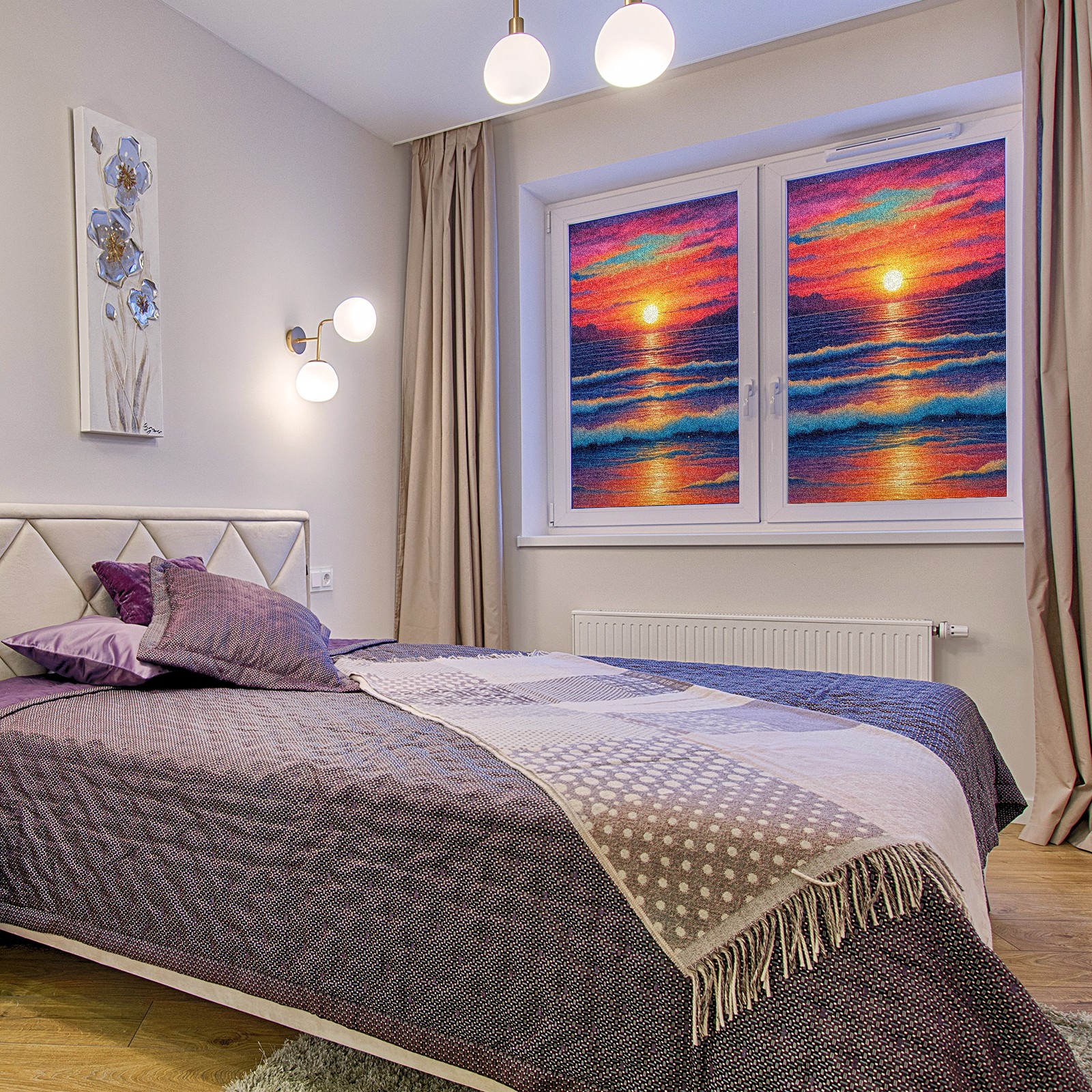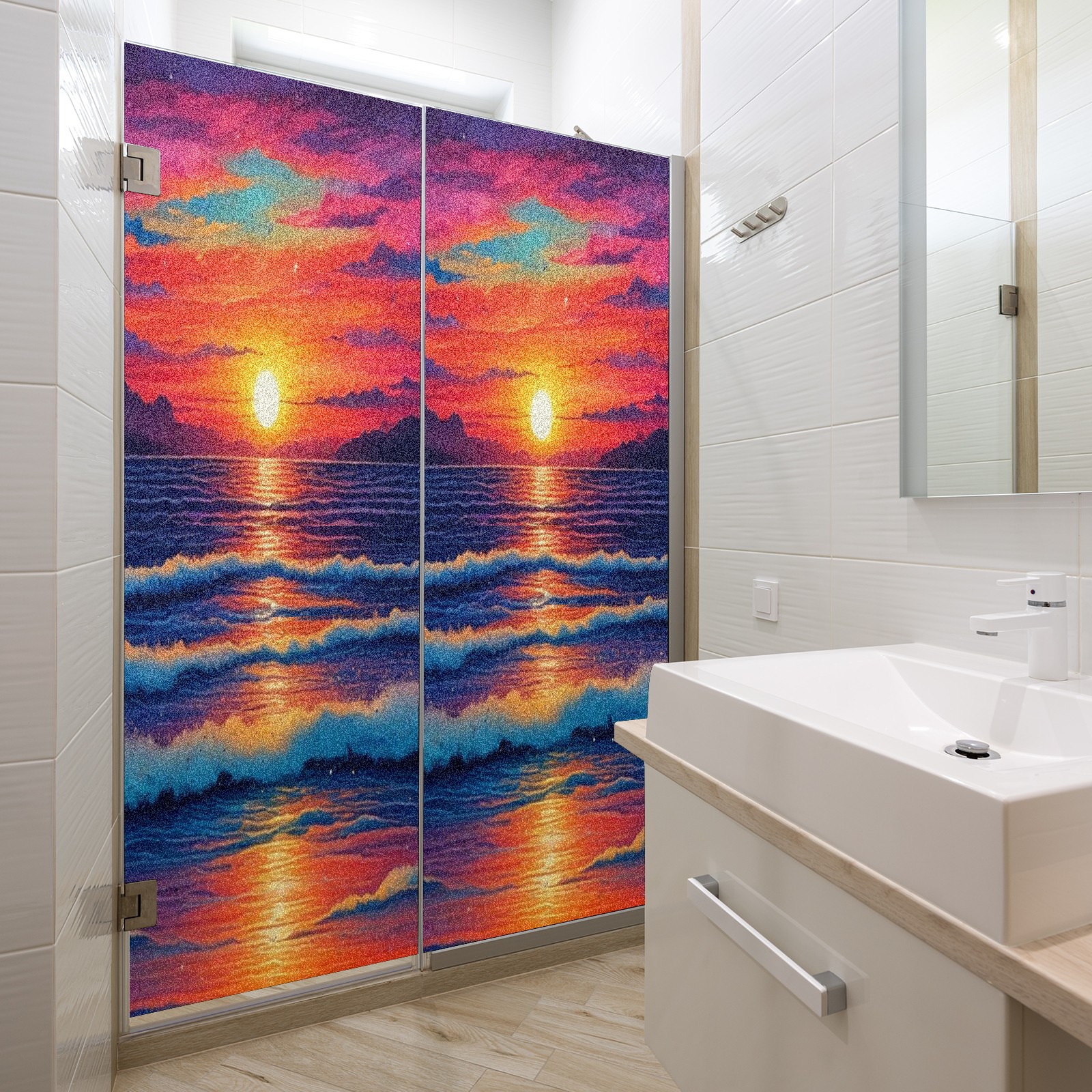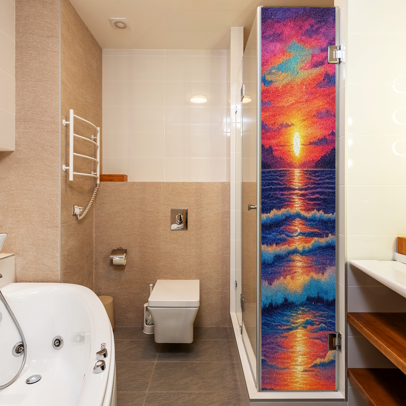 Window Privacy Film Frosted Stained Glass Film Decorative Static Cling for Bathroom Home Office Peel and Stick Window Film Red Sunset Beach(17.7x23.6in)