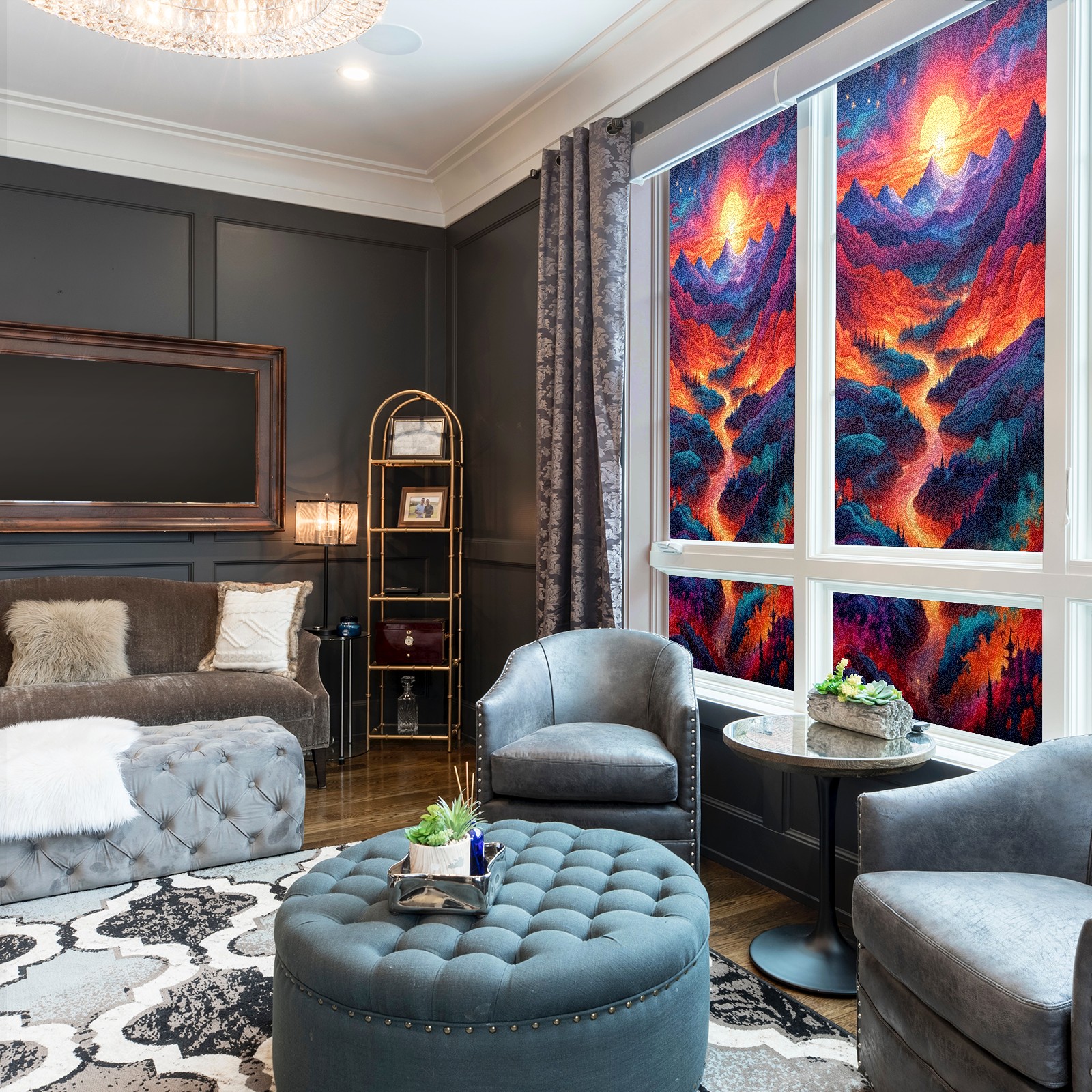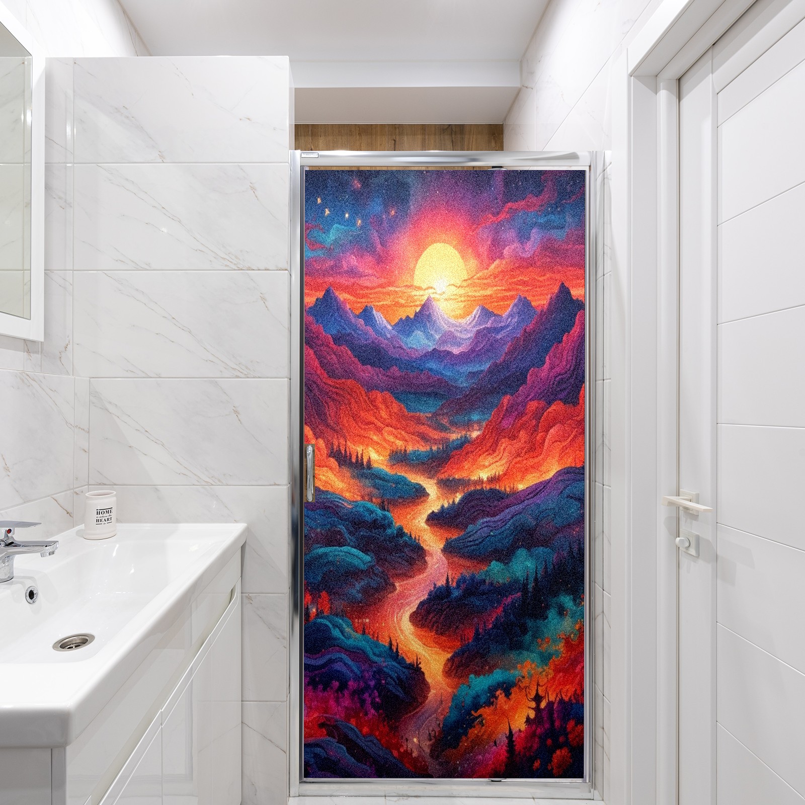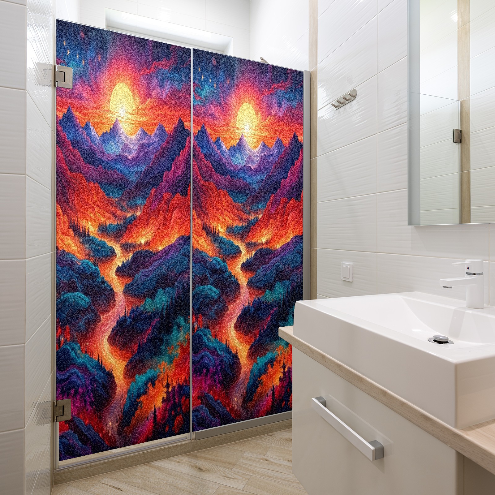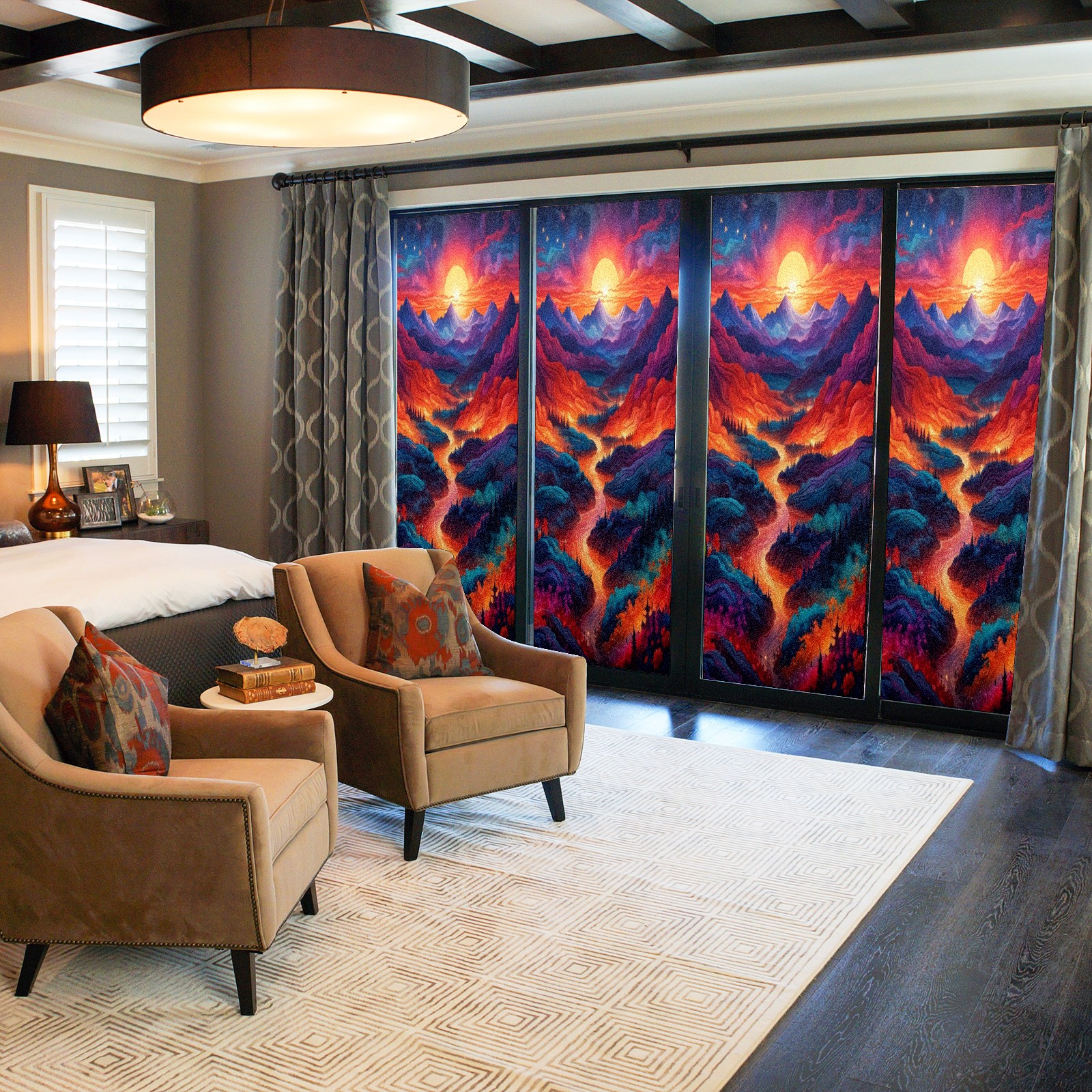 Window Privacy Film Frosted Stained Glass Film Decorative Static Cling for Bathroom Home Office Peel and Stick Window Film Red Sun Mountain(17.7x23.6in)