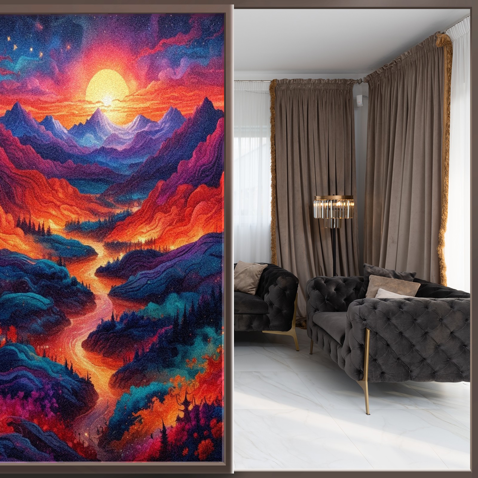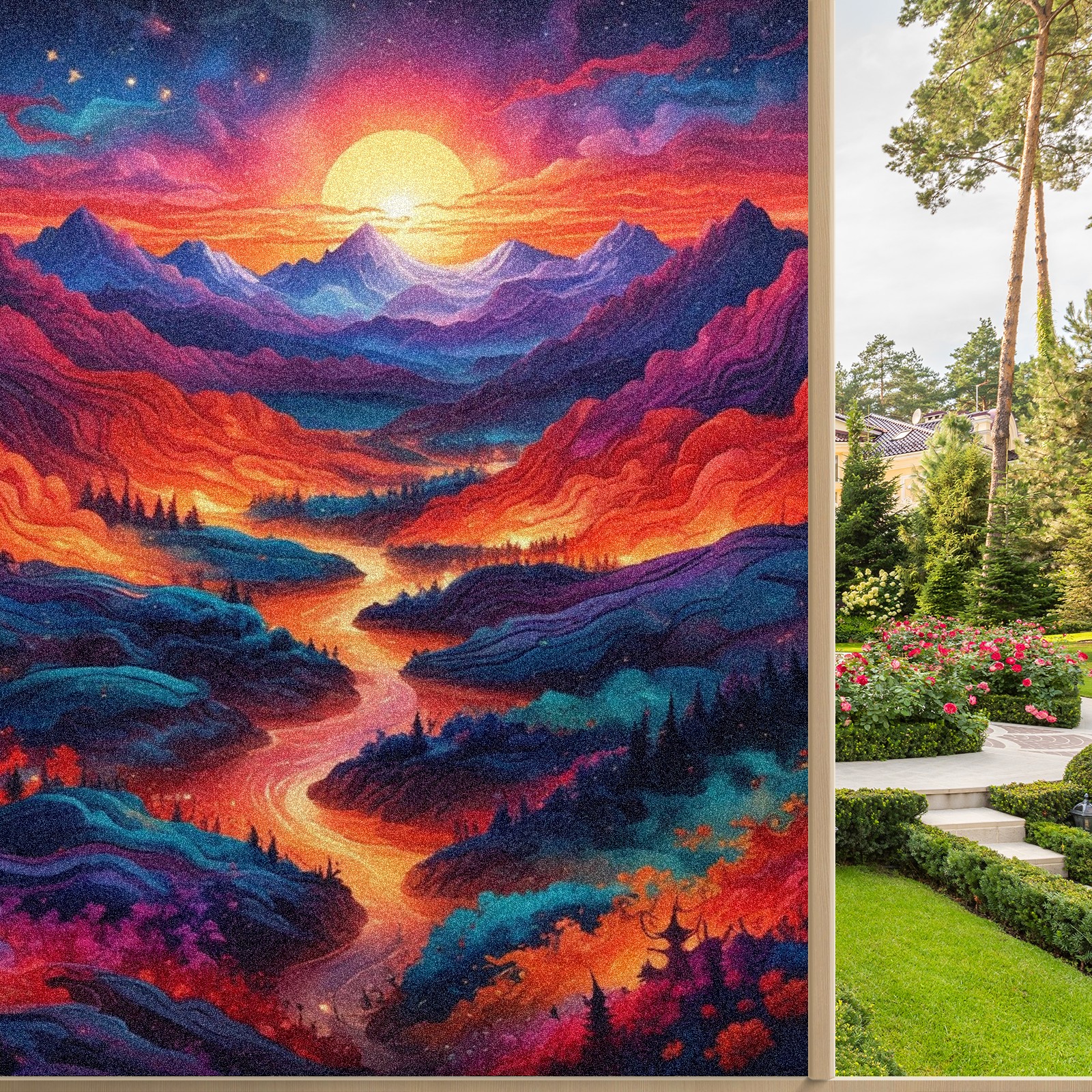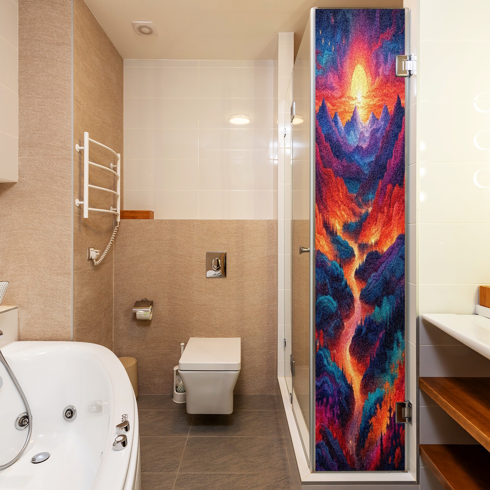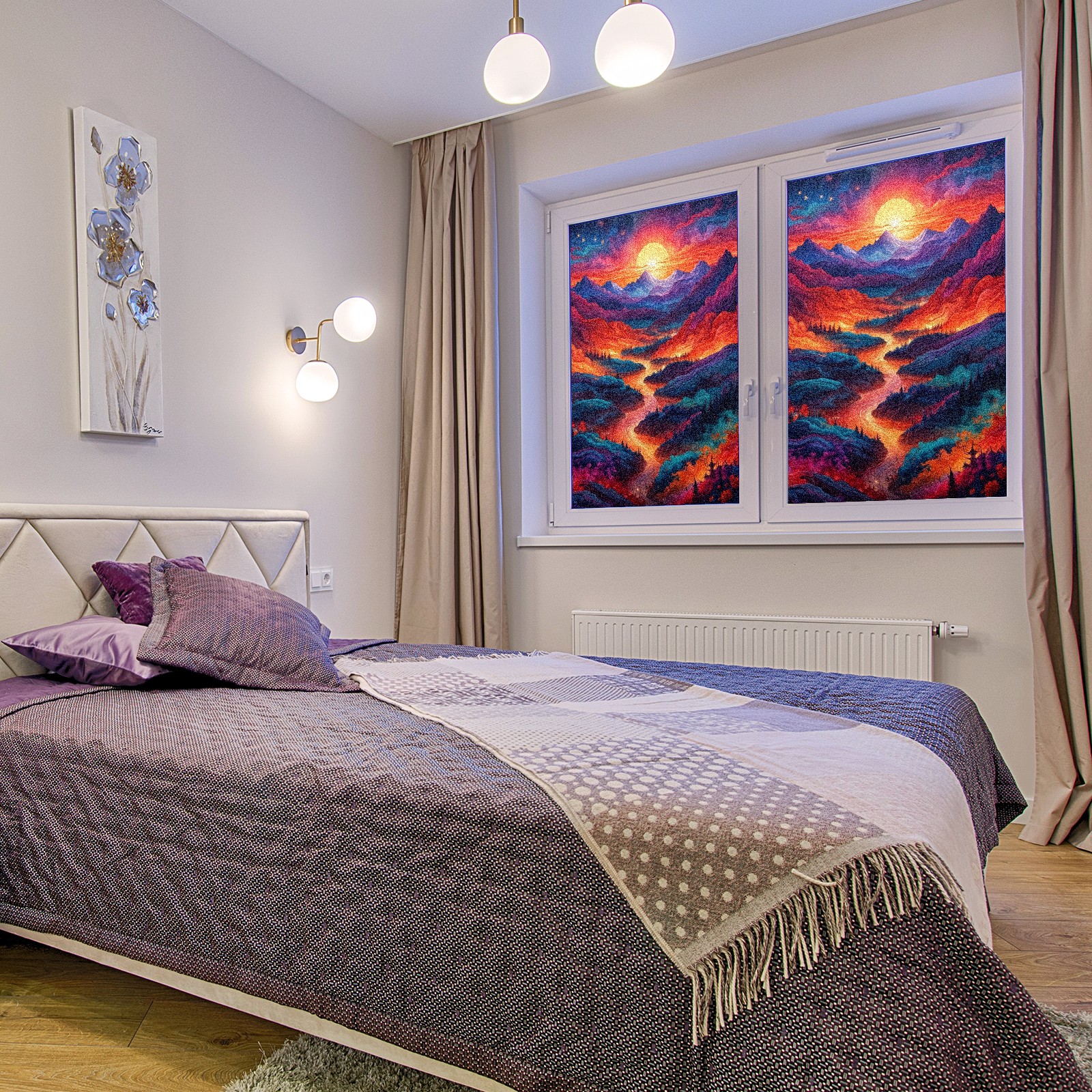 Window Privacy Film Frosted Stained Glass Film Decorative Static Cling for Bathroom Home Office Peel and Stick Window Film Red Sun Mountain(17.7x23.6in)