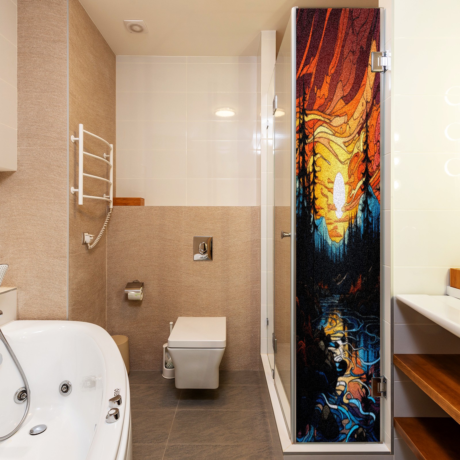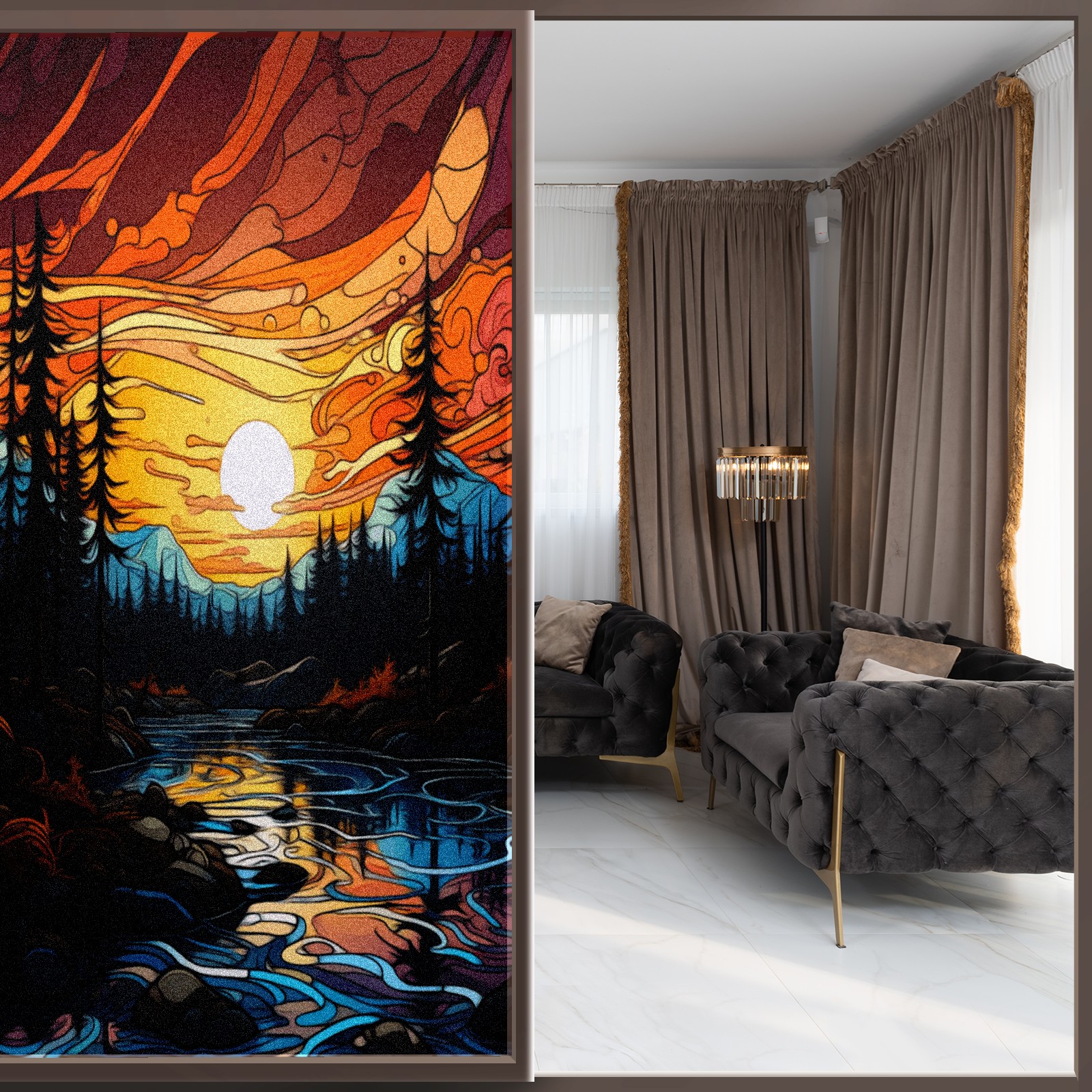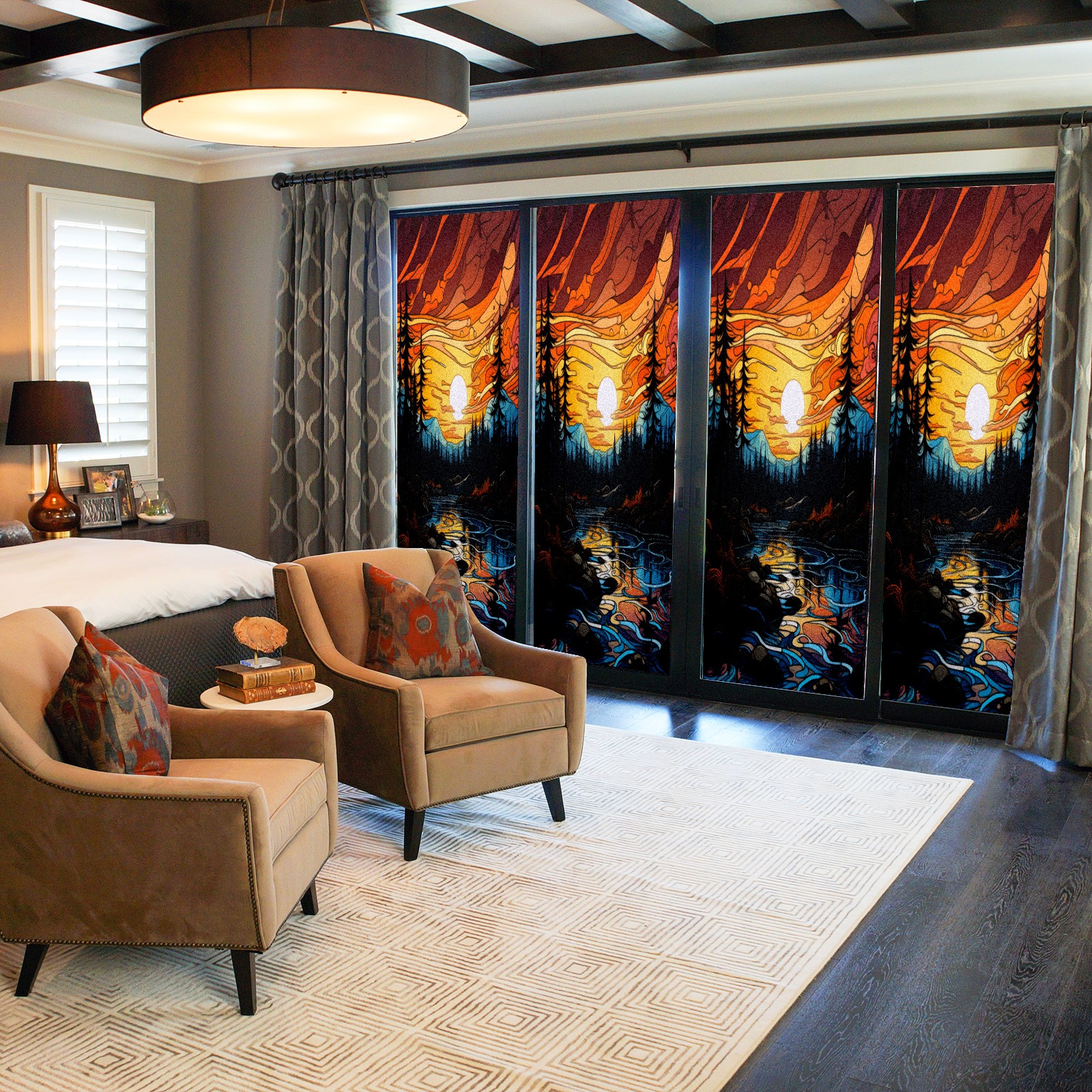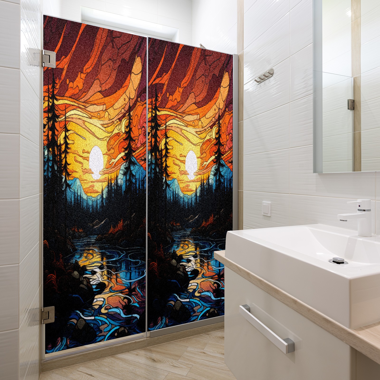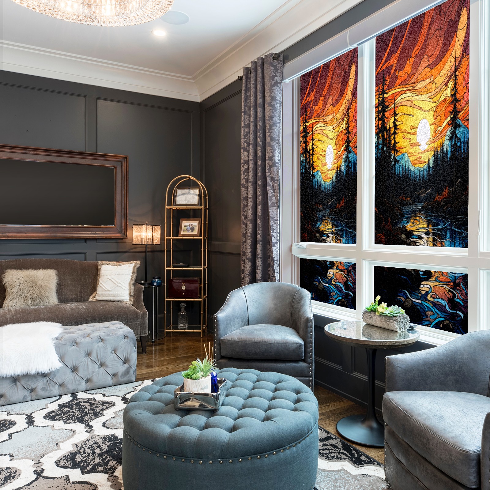 Window Privacy Film Frosted Stained Glass Film Decorative Static Cling for Bathroom Home Office Peel and Stick Window Film Moon Forest(17.7x23.6in)